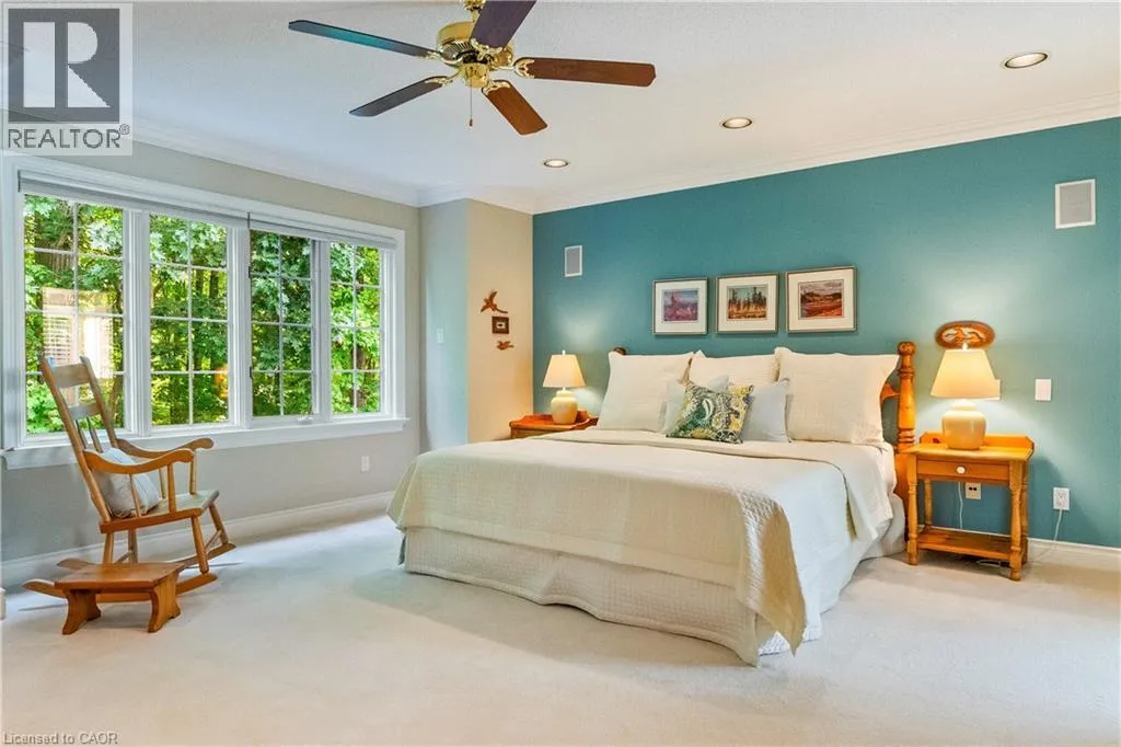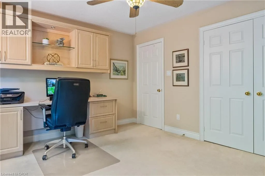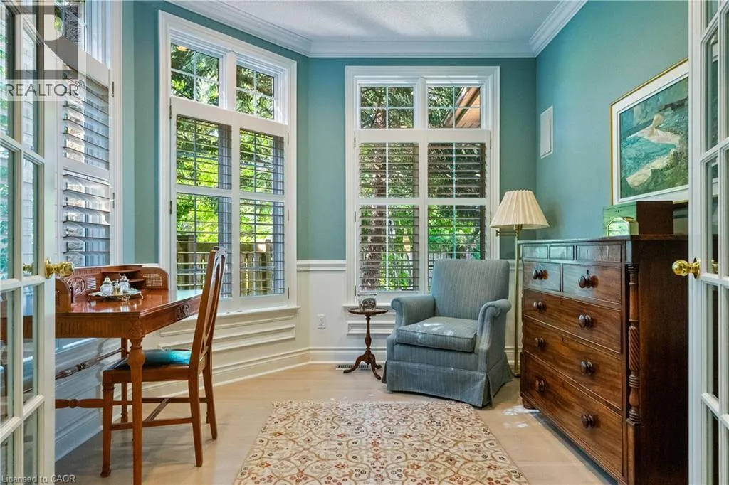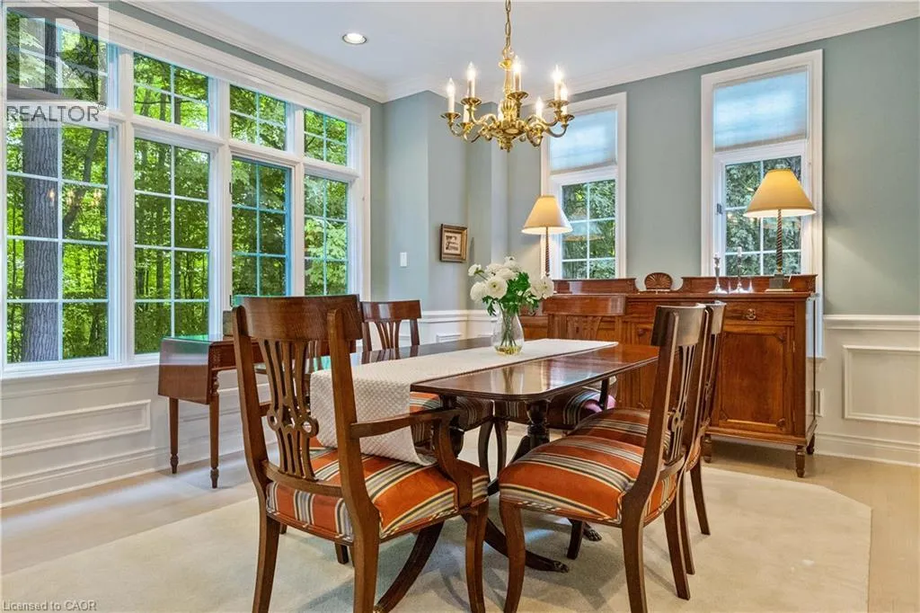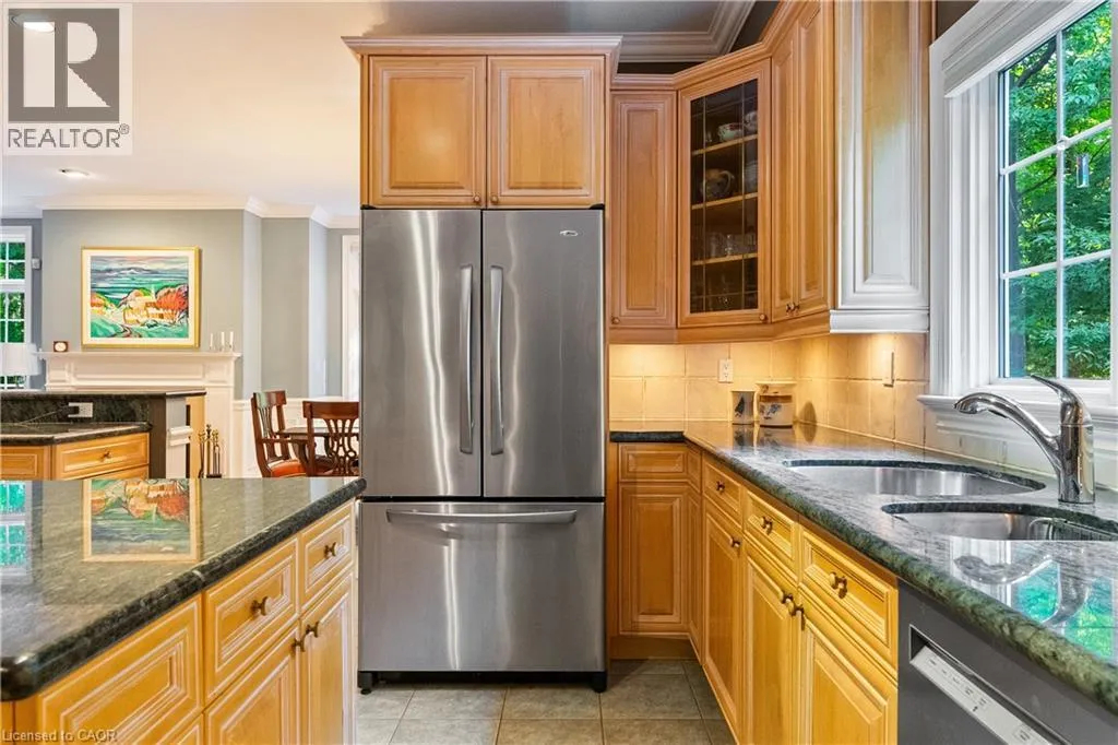 WESTOAK TR/ RIDGE LNDG/ SHELTRD OAK Discover this rare gem in the exclusive West Oak Trails community, where only twenty-one fortunate homeowners get to call this secluded oasis home. This executive end unit townhome offers a perfect blend of privacy and sophistication, backing directly onto the trails of tranquil Sixteen Mile Creek. With four spacious bedrooms and four plus 1 bathrooms spread across a total of 3,716 square feet of thoughtfully designed living space, including a convenient elevator ensuring effortless access to all levels. This home welcomes you with nine-foot ceilings and an open concept main floor with serene treed views creating a peaceful backdrop throughout. Step onto the balcony off the living room and breathe in the serenity of your private backyard. Upstairs, the generous primary suite features a cozy gas fireplace, five-piece ensuite, and walk-in closet. Three additional bedrooms offer comfort and convenience, two with access to ensuite bathrooms. The fourth is set as an office with built-ins perfect for those who work from home. The walk-out basement leads to your personal outdoor haven, complete with a stone patio perfect for entertaining or quiet morning coffee moments. The two-car garage and additional driveway parking ensure practicality meets luxury. This lovingly maintained home is move-in ready or add your own personal touch to transform it into something truly extraordinary. With exceptional privacy, it's an opportunity that rarely presents itself in this sought-after community. Your chance to own a piece of tranquil luxury is here. (id:27476)