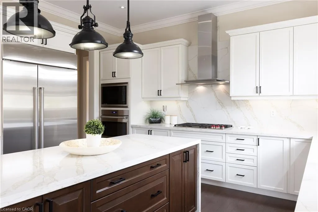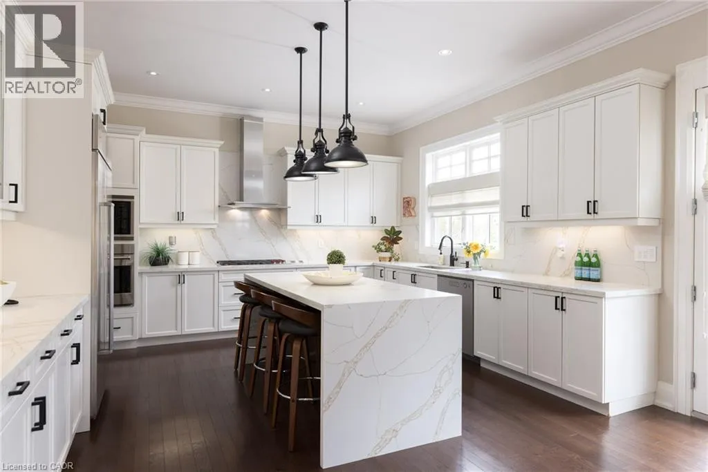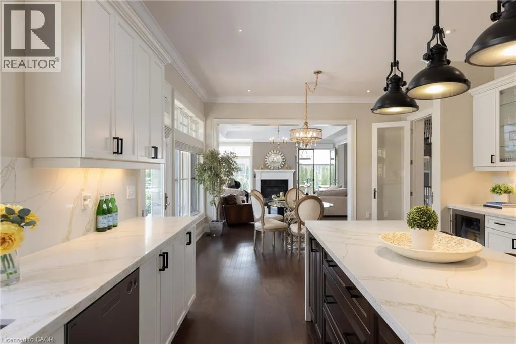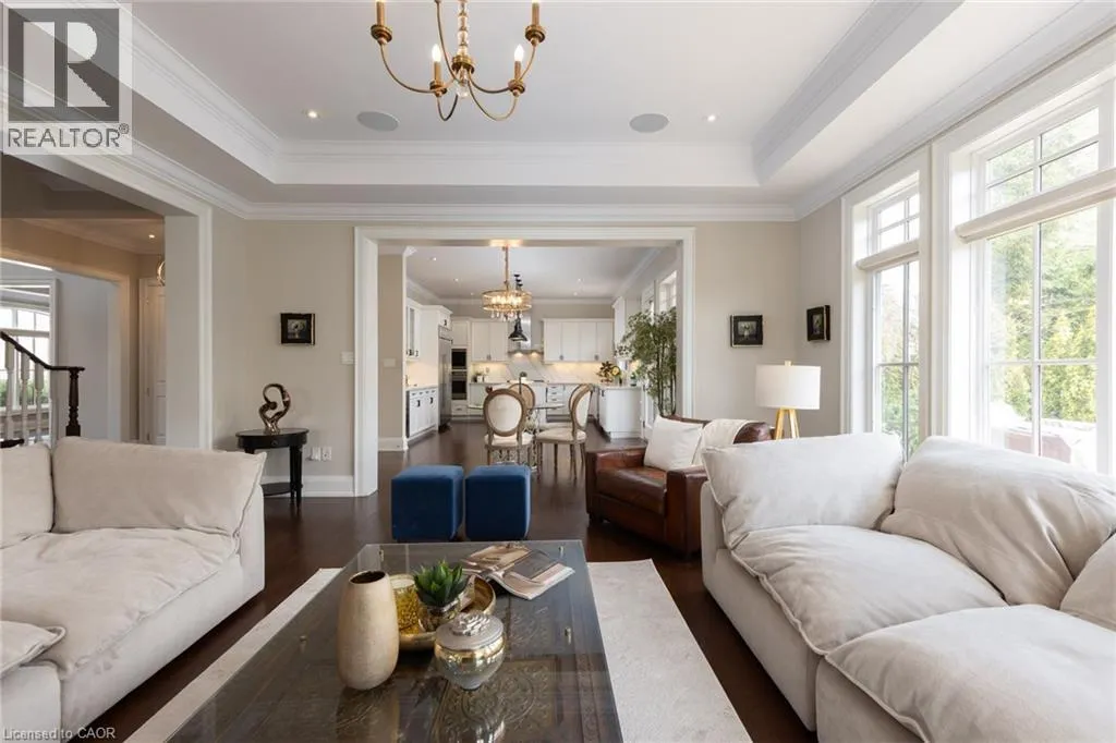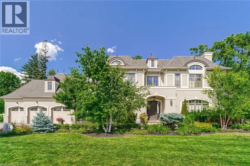 Lakeshore Road West & Lambert Common Elegant lakeside living in SW Oakville. Welcome to 21 Lambert Common! Tremendous opportunity to own a custom-built executive home by the water on a private road in the highly sought-after & exclusive community of Edgewater Estates. Just a stones throw away from the highly esteemed Appleby College. Enjoy the peace of mind that comes with an overnight neighbourhood security patrol. Discover over 6,700 sq.f t. of refined living space in this updated residence. Step into the grand foyer feat. 20' ceilings & heated porcelain floors that set the tone for this exceptional home. The formal LIV & DIN rooms showcase 10' tray ceilings, elegant wall paneling & moldings, while oversized windows bathe these spaces in natural light. The chef-inspired kitchen boasts premium Wolf B/I appliances & stovetop, complemented by a generous island and servery. Enjoy casual meals in the breakfast area w/ a W/O to a stone patio. The open, bright & spacious great room is surrounded by LRG windows, centers around a gas fireplace & flows seamlessly to an office w/ cathedral ceiling. Step down into the remarkable glassed-in sunroom - perfect for those special morning coffee moments w/ loved ones. Surround yourself in natures beauty & simply enjoy. A powder room, mudroom w/ separate entrance & laundry area (garage access) add convenience to the main floor plan. Upstairs, the primary impresses w/ 12 ceilings, a gas fireplace, LRG W/I closet & 5PC ensuite feat. a steam shower, soaker tub & heated floors. 3 additional bedrooms, each with W/I closets & private or shared ensuite privileges complete this floor. The lower level with W/O to rear yard offers a recreation area, fireplace feature wall, exercise room, games area w/wet bar, 2nd laundry, den, powder room, bathroom and 5th bedroom w/ ensuite.The backyard retreat includes an outdoor kitchenette, waterfall feature wall & decorative concrete fire bowl. Privacy, security, luxury, quality, beauty & comfort. This is 21 Lambert Common. Luxury Certified (id:27476)