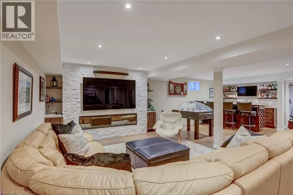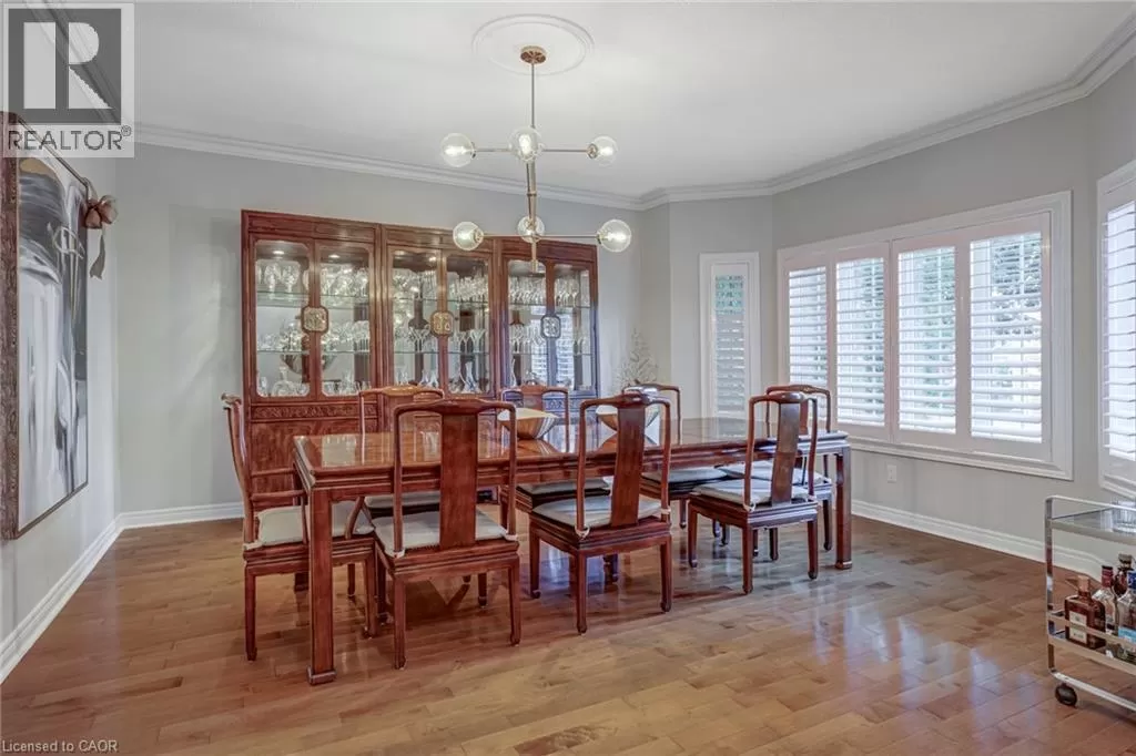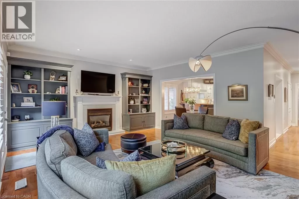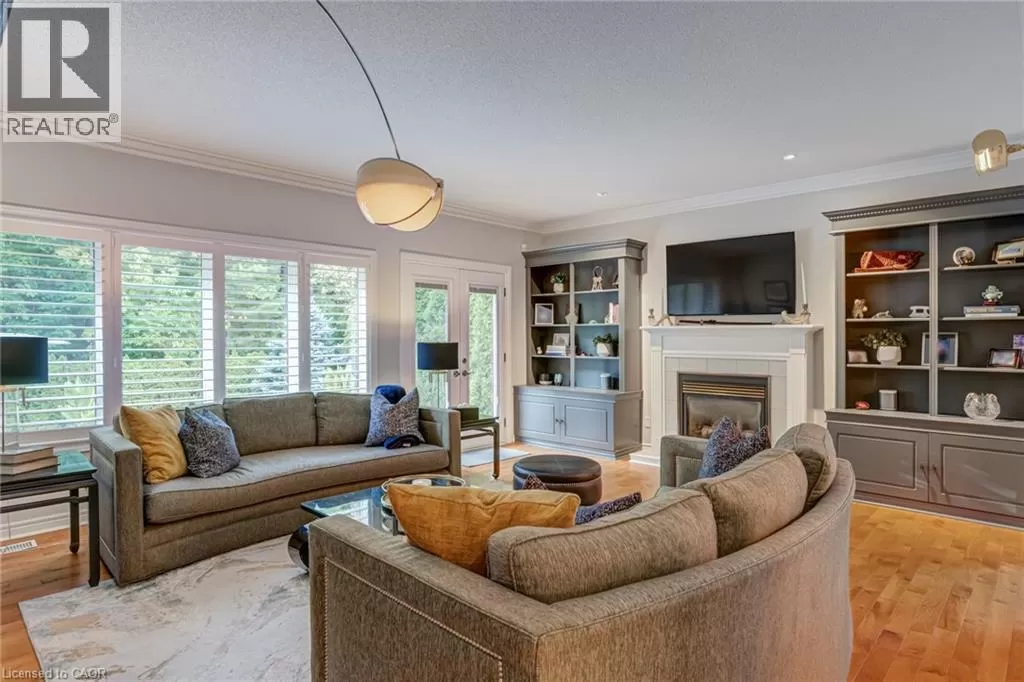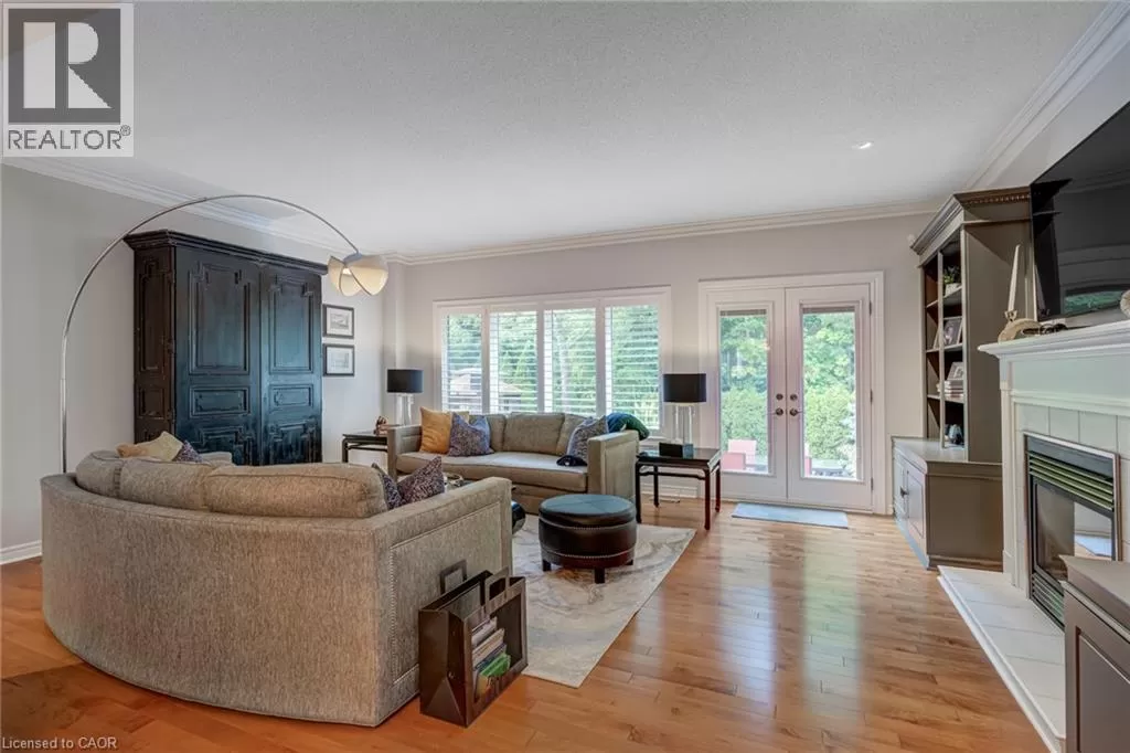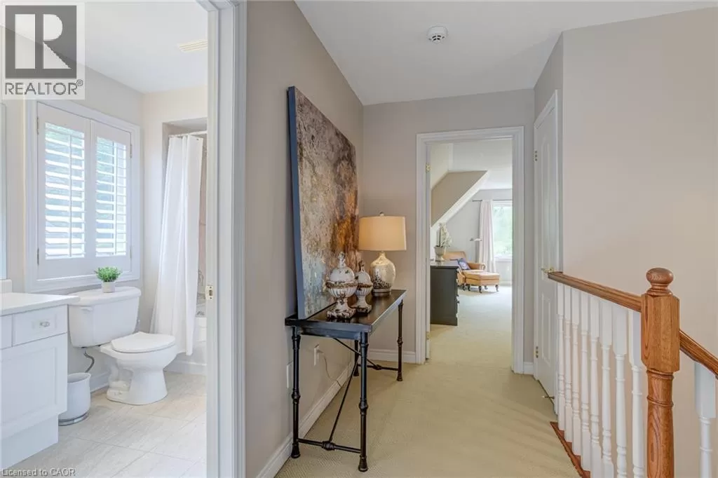 Reeves Gate to Shipwright Rd, Stationmaster Lane to Ravine Gate WELCOME TO THE RAVINES OF GLEN ABBEY! SITUATED ON A QUIET CUL-DE-SAC, THIS HOME BACKS ONTO A LUSH RAVINE WITH FORESTED TRAILS AND ALL THAT NATURE HAS TO OFFER. COME HOME TO THIS EXCLUSIVE ENCLAVE OF LUXURY PROPERTIES & ENJOY THE LIFESTYLE OF BUNGALOFT LIVING. THIS HOME OFFERS 2575 SQ FT OF LIVING SPACE WITH 9FT CEILINGS, OPEN CONCEPT KITCHEN, BREAKFAST AREA, A LARGE DINING ROOM FOR FAMILY GATHERINGS AND A GREAT ROOM WITH GARDEN DOORS OPENING TO A PRIVATE PATIO AND GREENERY. THE PRIMARY BEDROOM ON THE MAIN FLOOR INCLUDES A LUXURIOUS 5-PIECE BATH AND GENEROUS WALK-IN CLOSET. GLEAMING HARDWOODS, GRANITE COUNTER TOPS, CALIFORNIA SHUTTERS, CROWN MOULDING, AND TWO FIREPLACES ARE JUST A FEW OF THE FEATURES THAT ADD TO THE CHARM AND WARMTH OF THIS HOME. THE SECOND FLOOR PROVIDES TWO BEDROOMS AND A 4-PIECE BATH. THE ATTENTION TO DETAIL CONTINUES WITH THE METICULOUSLY DESIGNED BASEMENT WITH ENTERTAINMENT AND COMFORT IN MIND. ENJOY THE GORGEOUS BAR AREA WITH QUARTZ COUNTER TOPS, CABINETRY WITH AMPLE STORAGE AND A WINE CELLAR! A LARGE RECREATION AREA WITH A FIREPLACE IS A COZY SPOT TO CURL UP AND WATCH YOUR FAVOURITE PROGRAMS. A FOURTH BEDROOM & 3-PIECE ENSUITE OFFERS PRIVACY FOR GUESTS. AN EXERCISE ROOM AND WORKSHOP TOO! (id:27476)