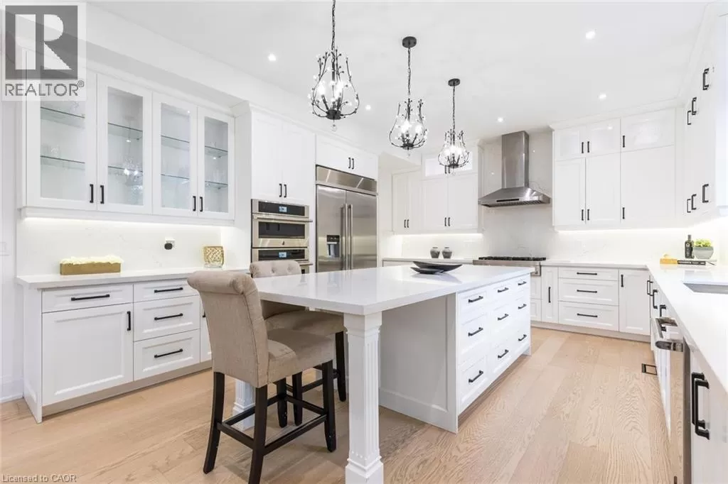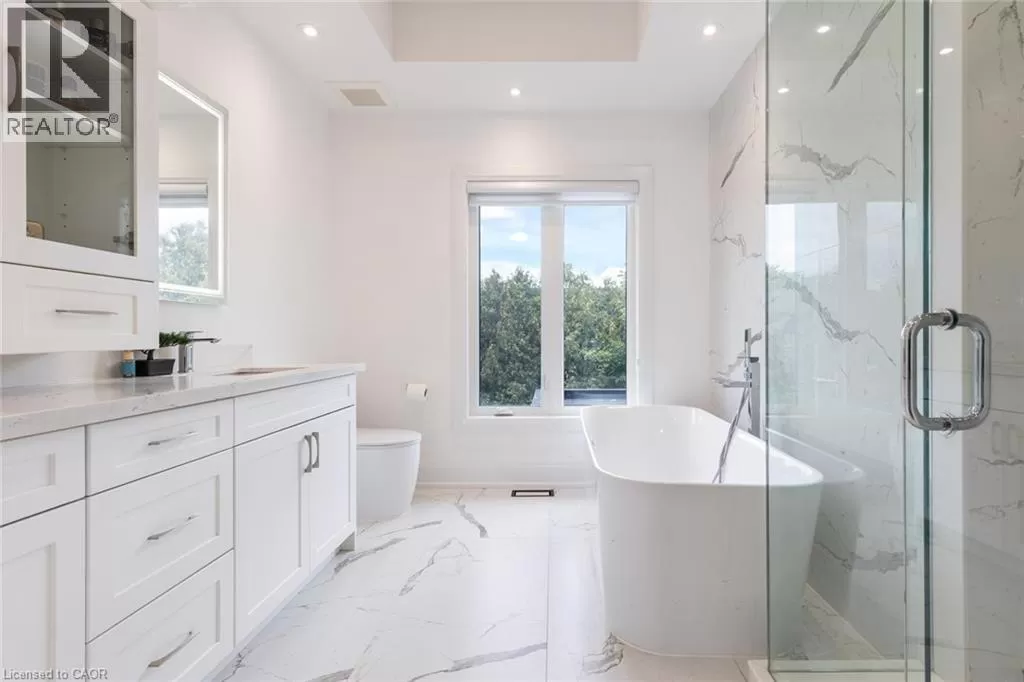 THIRD LINE AND REBECCA ST Stunning 1 year new, custom-built luxury home in desirable Southwest neighbourhood featuring beautifully designed living space with 4 bedrooms and 5 full bathrooms and 2 powder rooms. Showcasing a seamless blend of style and comfort, the home highlights expansive floor-to-ceiling windows, sleek pot lights throughout, an open oak staircase framed with glass, and a spacious great room complete with a gas fireplace. The designer kitchen is fitted with custom cabinetry, quartz surfaces and premium appliances. A professionally landscaped front yard adds to its distinguished curb appeal. Upstairs, youâll find 9-ft ceilings, skylight, ensuite bedrooms with built-in custom closets, and a convenient laundry room. The second floor is equipped with its own electrical panel for added efficiency. The finished lower level is ideal for entertaining, featuring a private in-law suite, walk-up access to the backyard, an office space to work from home, rough-in kitchen, custom wet bar and recreation space, Home theatre room, gym, rough-in sauna, provisions for a second laundry, and space for a wine cellar. Additional features include a BBQ gas line, sump pump, injector, oversized garage, and option for an exterior electric fireplace. With an owned A/C, furnace, and tankless water heater, plus a prime location near top schools, shopping, and major highways, this property delivers the ultimate combination of elegance, function, and convenience.(As Per Mpac above grade Square footage: 3,383) (id:27476)
