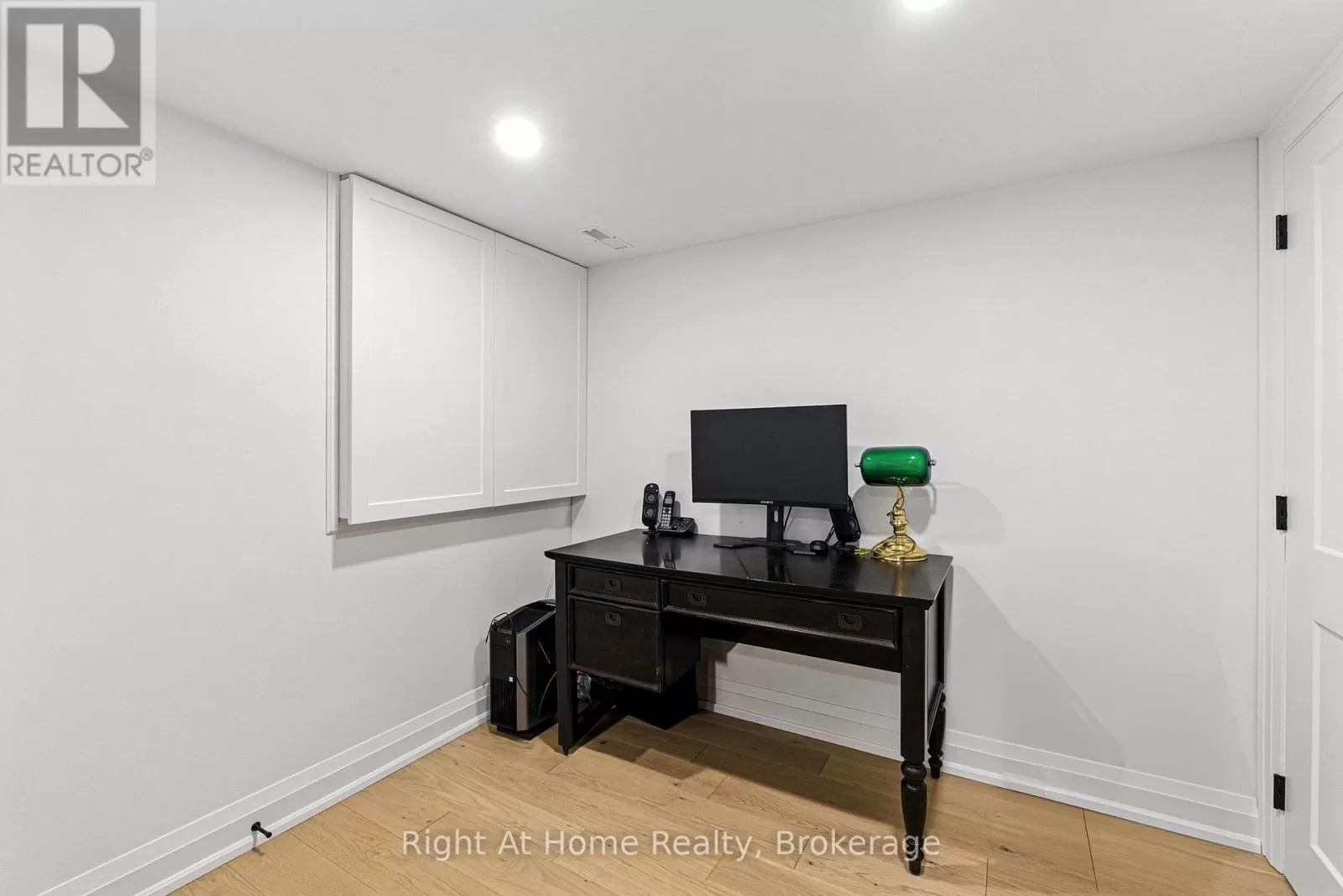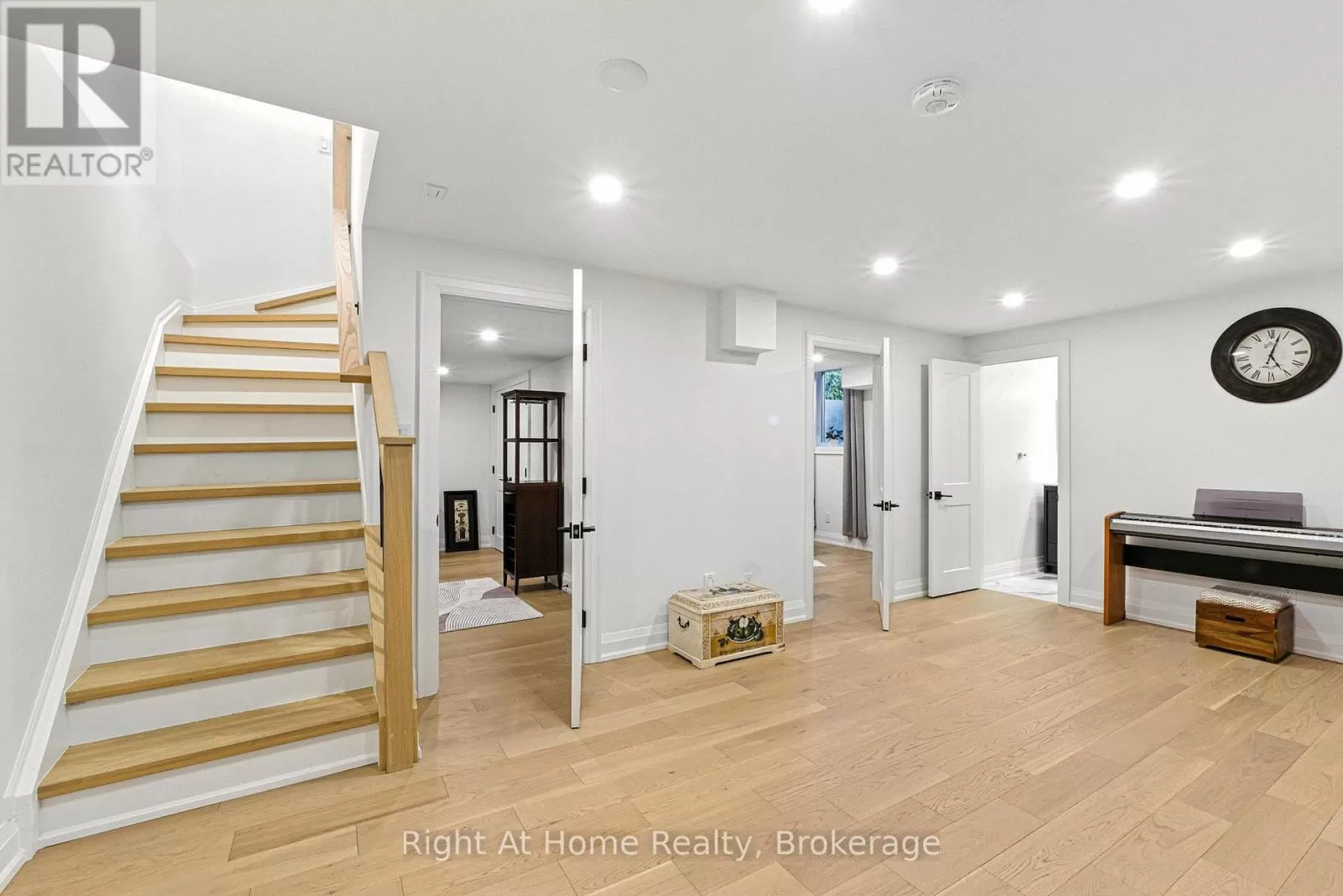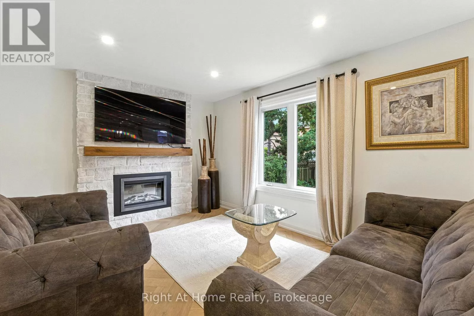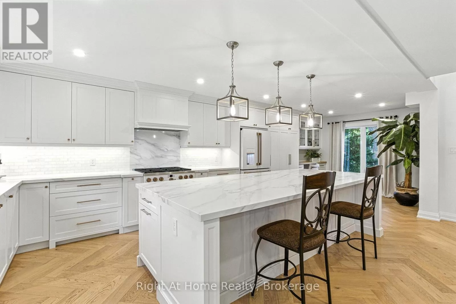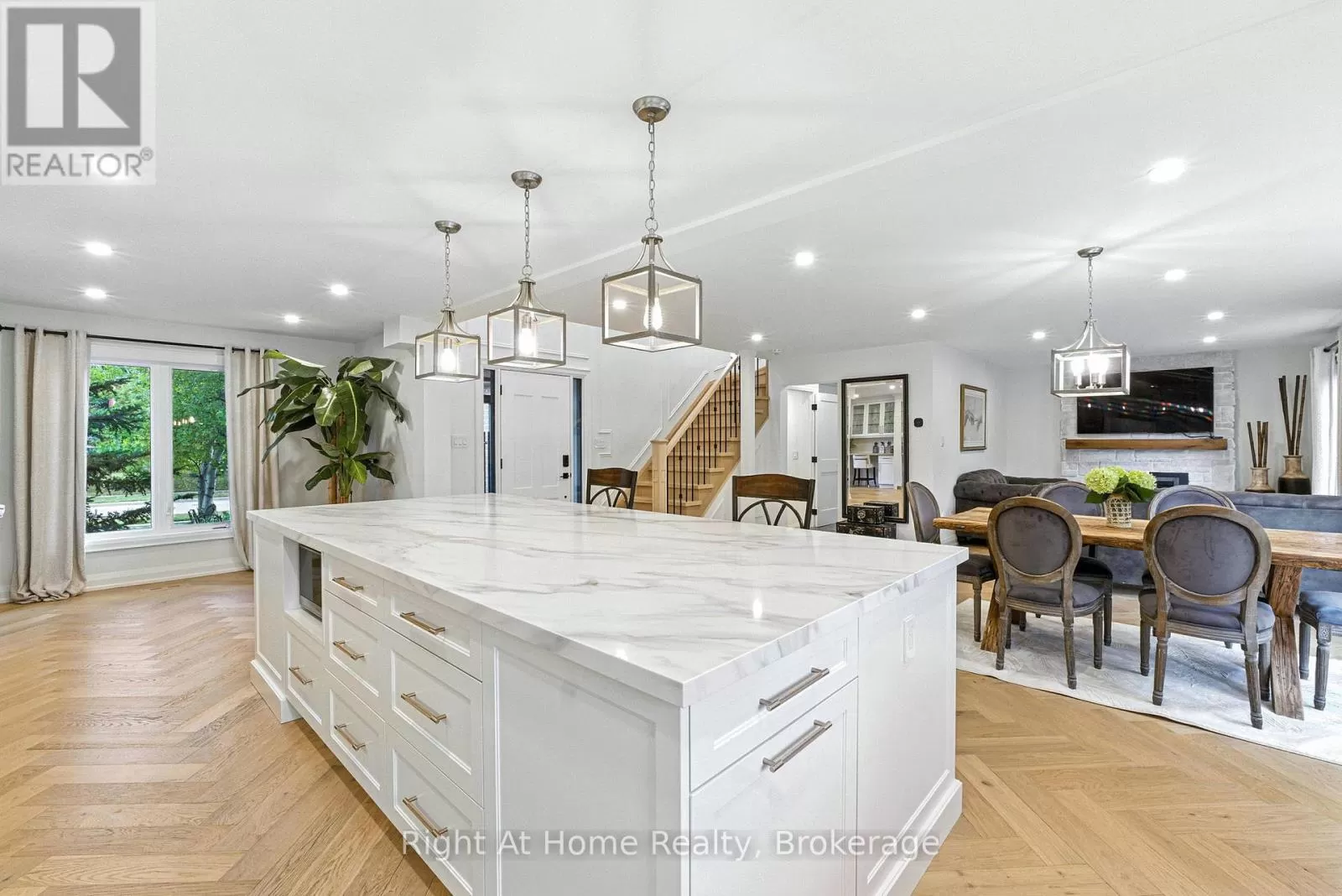 Cross Streets: Sixth Line/Poole Drive. ** Directions: Sixth Line to Munn's Ave. to Poole Drive. Beautiful home in one of the most sought-after communities in Oakville.Premium location on a quiet street in the heart of River Oaks.3+1 bedrooms+ den/office and 4 bathrooms.Once you step in the house you will see a beautifully designed open concept home with a lot of light from the large second floor windows.Elegant and sophisticated European white oak engineered hardwood floors throughout the entire house even in the basement. Main floor hardwood laid in herringbone pattern.Custom designed kitchen offers a clean,open-concept layout with high-end finishes.The large centre island with quartz countertops making it ideal for entertaining.Full-height backsplash create a modern, elegant look.Top-of-the-line Cafe collection white matte appliances, including a 6 burner gas range and French door refrigerator.A cozy built-in desk area with glass-front cabinets adds versatility.Dining room offers a perfect blend of warmth and sophistication, ideal for entertaining or intimate family meals.The space is bathed in natural light from expansive sliding glass doors that open to a lush, private backyard.Family room exudes warmth and sophistication, making it the perfect space for relaxation and entertaining.The focal point is a striking whitewashed stone fireplace,elegantly framed with a rustic wooden mantel.Well-appointed mudroom offers practical storage with custom built-in cabinetry,a wood bench & convenient drawers for organization.Custom white oak staircase with elegant moulding wall leads you to the second floor where you'll find 3 generously sized bedrooms, each with B/I closets.The spacious primary bedroom is a true retreat , complete with luxurious 5 piece ensuite bathroom with infloor heating. 7.5" Eng. White Oak Hardwood throughout the second floor. 2nd oak staircase leads you to the basement which flows into additional living spaces 1 bedroom, 3 pc. bathroom, office and spacious open concept area ideal for relaxation. (id:27476)