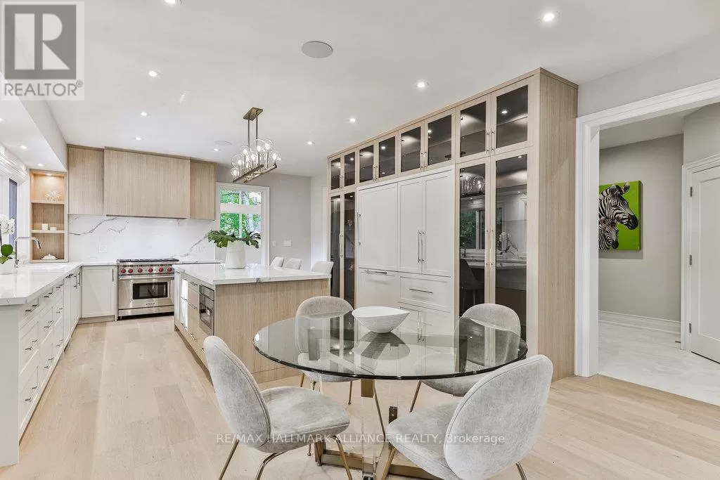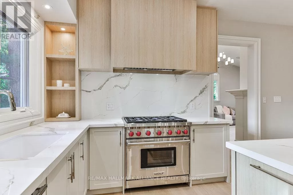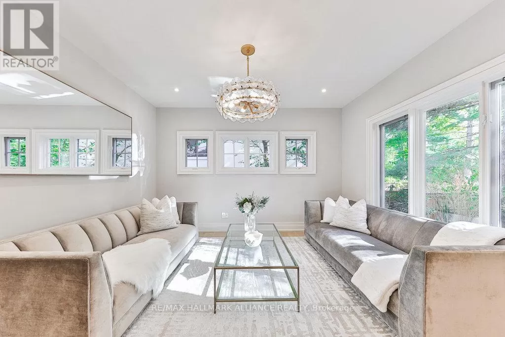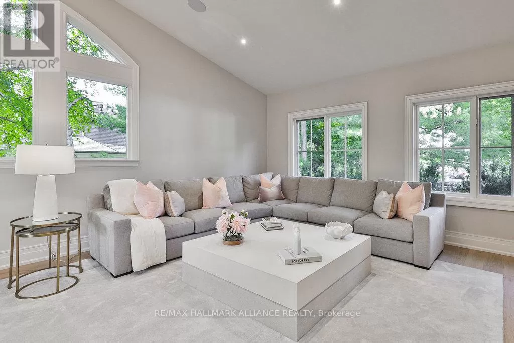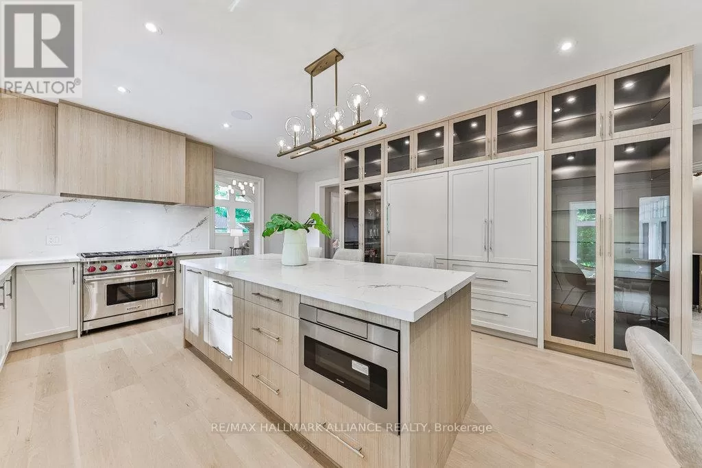 Cross Streets: Drummond/Duncan. ** Directions: Duncan Rd & Drummond Rd. This spectacular residence has been completely renovated to the studs with high-end finishes and a thoughtfully reimagined floor plan, blending timeless elegance with modern functionality. Situated on a premium 75x150 south-facing rectangular premium lot, this home is just a short walk to Oakville's top-rated schools.The exterior showcases new stucco with natural stone accents, oversized windows, and stunning curb appeal. Inside, the open-concept design features a grand living/dining room with soaring 13-ft ceilings and wood-burning fireplace, seamlessly flowing into a brand-new custom kitchen and family room. The chefs kitchen offers a massive center island, custom hardwood cabinetry, top-of-the-line appliances including a Wolf stove and Fisher & Paykel fridge, and walkout to a sun-filled cedar deck. A beautiful sunroom with full HVAC brings the outdoors in, overlooking landscaped gardens, mature trees, ponds, and stone pathways. The upper level features double primary suites with spa-inspired ensuites, heated floors, and walk-in closets, providing exceptional comfort and flexibility for families. Designer details throughout include custom millwork, accent lighting, hardware, California shutters, and premium hardwood flooring. The fully finished lower level offers a nanny/in-law suite with in-floor heating, recreation space, and plenty of storage. Recent upgrades include new spray foam insulation, new electrical panel, sump pump, tankless hot water system, pot lights, built-in speakers, and luxury designer tiles in all bathrooms. This one-of-a-kind home is the perfect blend of modern luxury, refined craftsmanship, and family-friendly living, a rare offering in one of Oakville's most prestigious neighbourhoods. (id:27476)