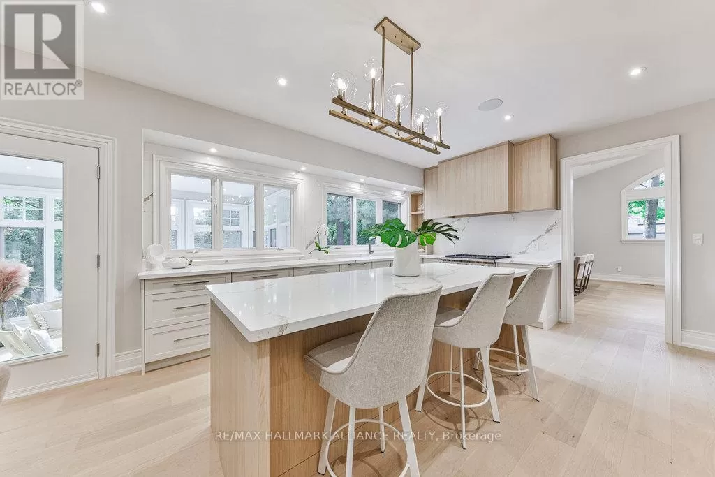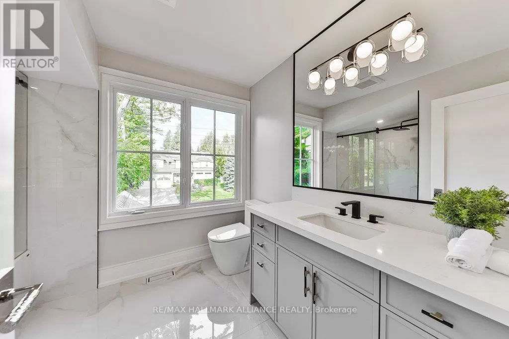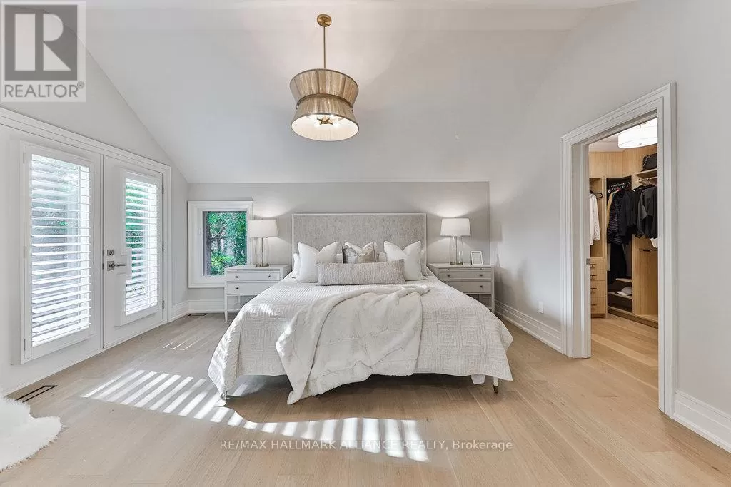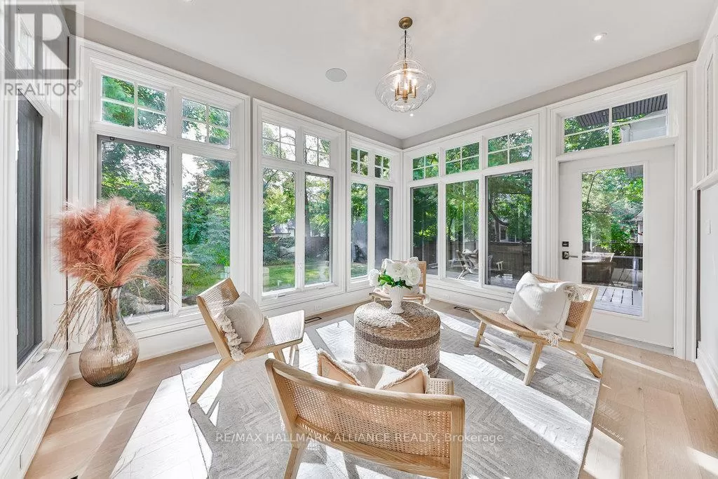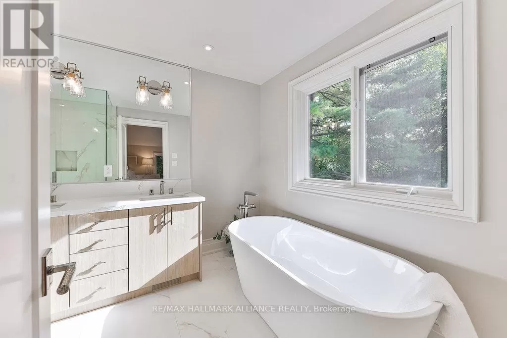 Cross Streets: Drummond/Duncan. ** Directions: Duncan Rd & Drummond Rd. This spectacular residence has been completely renovated to the studs with high-end finishes and a thoughtfully reimagined floor plan, blending timeless elegance with modern functionality. Situated on a premium 75x150 south-facing rectangular premium lot, this home is just a short walk to Oakville's top-rated schools.The exterior showcases new stucco with natural stone accents, oversized windows, and stunning curb appeal. Inside, the open-concept design features a grand living/dining room with soaring 13-ft ceilings and wood-burning fireplace, seamlessly flowing into a brand-new custom kitchen and family room. The chefs kitchen offers a massive center island, custom hardwood cabinetry, top-of-the-line appliances including a Wolf stove and Fisher & Paykel fridge, and walkout to a sun-filled cedar deck. A beautiful sunroom with full HVAC brings the outdoors in, overlooking landscaped gardens, mature trees, ponds, and stone pathways. The upper level features double primary suites with spa-inspired ensuites, heated floors, and walk-in closets, providing exceptional comfort and flexibility for families. Designer details throughout include custom millwork, accent lighting, hardware, California shutters, and premium hardwood flooring. The fully finished lower level offers a nanny/in-law suite with in-floor heating, recreation space, and plenty of storage. Recent upgrades include new spray foam insulation, new electrical panel, sump pump, tankless hot water system, pot lights, built-in speakers, and luxury designer tiles in all bathrooms. This one-of-a-kind home is the perfect blend of modern luxury, refined craftsmanship, and family-friendly living, a rare offering in one of Oakville's most prestigious neighbourhoods. (id:27476)