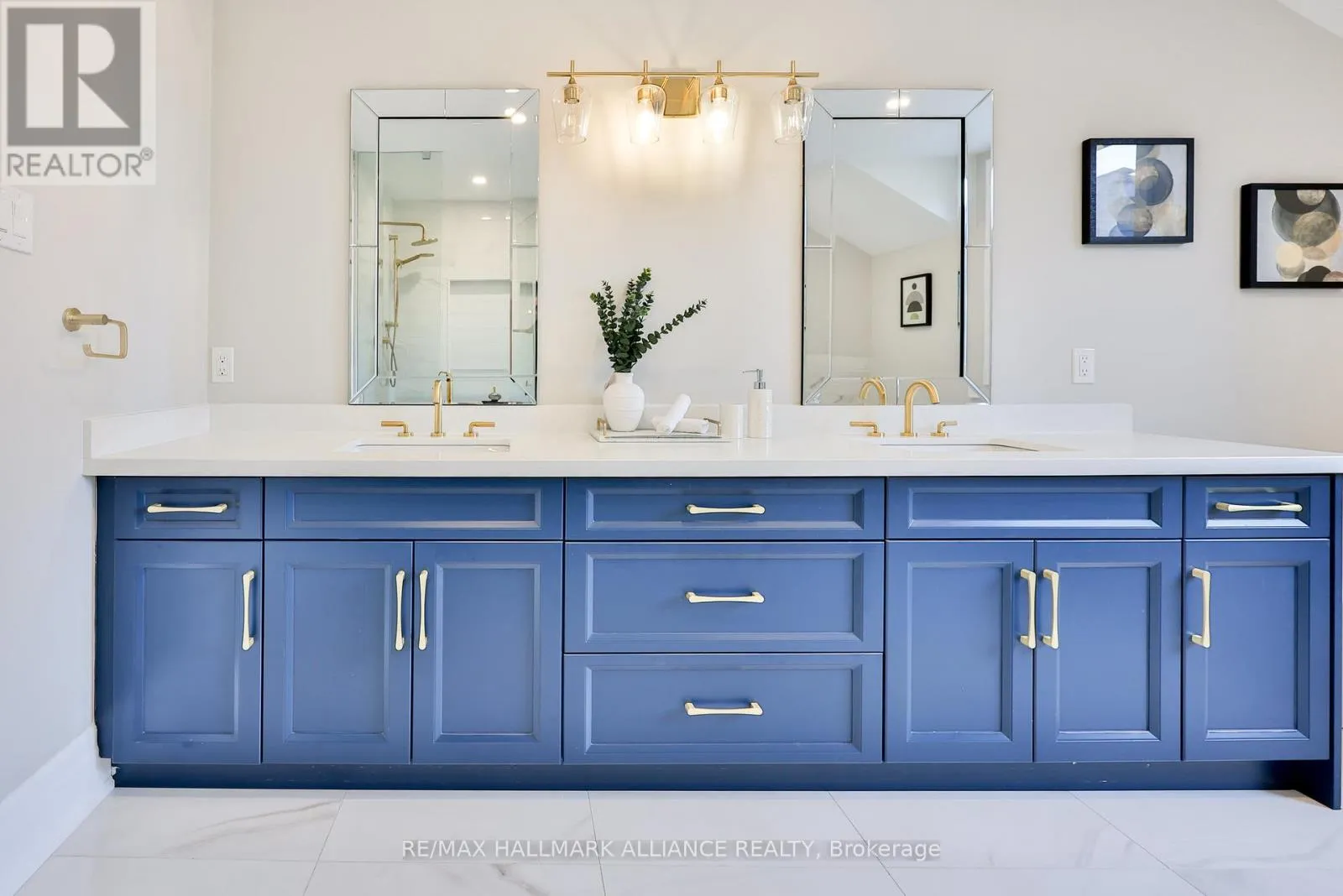 Cross Streets: Ford Drive/Dunedin Rd. ** Directions: Dunedin Rd & Ford Dr. Exquisite Luxury Living in Southeast OakvilleStunning top-to-bottom renovation on a rare -acre estate lot in one of Oakvilles most prestigious neighborhoods. This 4+1 bed, 5.5 bath executive home offers nearly 5,000 sq. ft. of impeccably finished living space (3,618 sqft above grade), showcasing high-end design, superior craftsmanship, and exceptional attention to detail.Step into a grand two-storey foyer with soaring ceilings and elegant sight lines throughout the spacious principal rooms. The gourmet kitchen is equipped with premium Thermador appliances, including a 36 gas stove, and flows effortlessly into the open-concept living and family areasfeaturing a wood-burning fireplace in the dining room and electric fireplace in the family room.Upstairs, each of the four bedrooms features a private ensuite, plus a stylish second-floor laundry and bonus library/home office. The finished lower level offers a custom kitchenette/bar, 5th bedroom, designer 3-piece bath, large rec/media room, and ample storageperfect for entertaining or guest accommodations.Extensive upgrades include: new plumbing, electrical, pot lights, landscaping, deck, pool liner, exterior lighting, and fresh paint throughout. Oversized driveway with parking for 10+ vehicles.Located within top-tier school catchments: Oakville Trafalgar HS, Maple Grove PS, St. Vincent, Linbrook, SMLS.A truly turnkey luxury home offering space, style, and sophistication in an unbeatable location. (id:27476)
