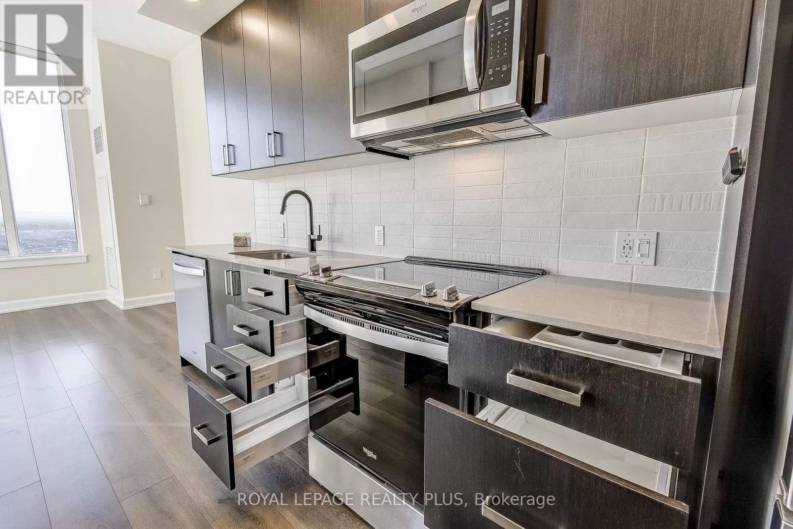 Trafalgar/Dundas Welcome to the highly sought-after Upper West Side Condos in North Oakville. This stunning penthouse suite offers 2 spacious bedrooms and 2 full bathrooms, designed with modern living in mind. Enjoy the convenience of 1 parking space and 1 locker, along with keyless entry, smart home technology, and concierge security service for peace of mind. Being a penthouse, this suite boasts 9ft ceilings and larger doors, creating a sense of openness and sophistication throughout. Step inside and be impressed by over $23,000 in upgrades including sleek quartz countertops, upgraded cabinetry, stylish laminate flooring, pot lights in the kitchen, custom backsplash, an upgraded sink, and top-of-the-line stainless steel appliances. Internet is also included for your convenience. The open-concept layout flows seamlessly, filled with natural light, and opens to breathtaking penthouse views of acres of lush greenspace. This luxury building is equipped with outstanding amenities to enhance your lifestyle: a fully outfitted fitness centre, elegant party rooms, inviting lounges, a rooftop patio with BBQs, and even a convenient pet wash room. Whether entertaining or relaxing, every detail has been thoughtfully designed. The location is second to none nestled in a vibrant community with close proximity to top-rated schools, shopping, restaurants, and quick access to Highways 403 and 407, making commuting effortless. This is a rare opportunity to own a beautifully upgraded penthouse in one of Oakville's most desirable developments. Perfect for professionals, downsizers, or anyone seeking a modern, maintenance-free lifestyle without compromise. (id:27476)