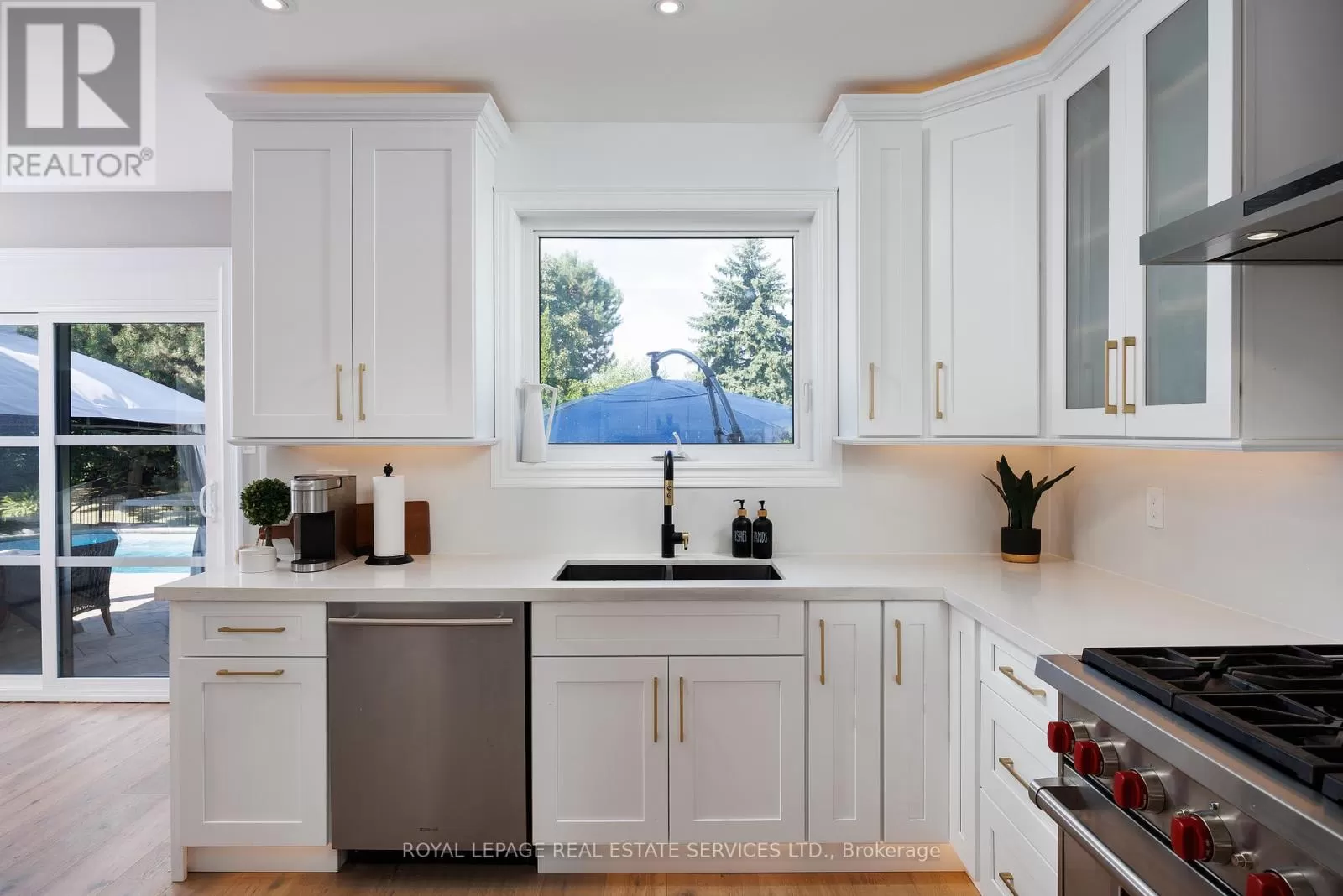 Cross Streets: The Links & Golfview. ** Directions: Dorval- Fairway Hills- The Links. Experience the ultimate in luxury living, style, & location in this extensively renovated 4+1-bedroom, 4.5-bathroom executive home in the prestigious Fairway Hills community, bordering the world-renowned Glen Abbey Golf Course. The backyard is a private resort-style haven, featuring an inground pool, relaxing hot tub, & expansive stamped concrete patios perfect for summer entertaining & outdoor living. Inside, the main & upper levels underwent a complete designer transformation in August 2024, with walls removed to create a sophisticated, open layout. Every detail exudes elegance with new bathrooms, white oak hardwood floors, crown mouldings, a custom staircase, designer lighting, smooth ceilings, baseboards, trim, interior & exterior doors, windows, & a show-stopping chefs kitchen. The roof, pool liner, & cover were also newly replaced for peace of mind. Enjoy effortless entertaining in the spacious living room with an inviting fireplace, the formal dining room with custom built-ins, & the oversized family room with a fireplace. The stunning custom kitchen boasts sleek cabinetry with accent lighting, quartz countertops, a large island with a breakfast bar, high-end appliances, including a 6-burner Wolf gas range, & a walkout to your backyard retreat. Upstairs, discover 4 bright bedrooms & 3 spa-inspired bathrooms, including a serene primary suite with custom cabinetry & a luxurious 5-piece ensuite featuring a sculpted soaker tub & oversized glass shower. The fully finished lower level offers endless possibilities with a sprawling recreation room, fireplace, wet bar, games area, a private guest suite & a luxurious full bath. Start your dream life in Glen Abbey, a highly coveted Oakville community celebrated for its scenic trails, top-rated schools, & unbeatable proximity to restaurants, shopping, hospital & major highways. Fairway Hills Association fee $1000/year (id:27476)
