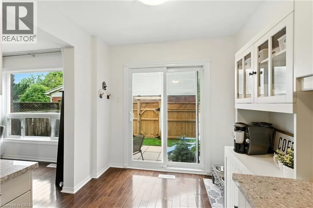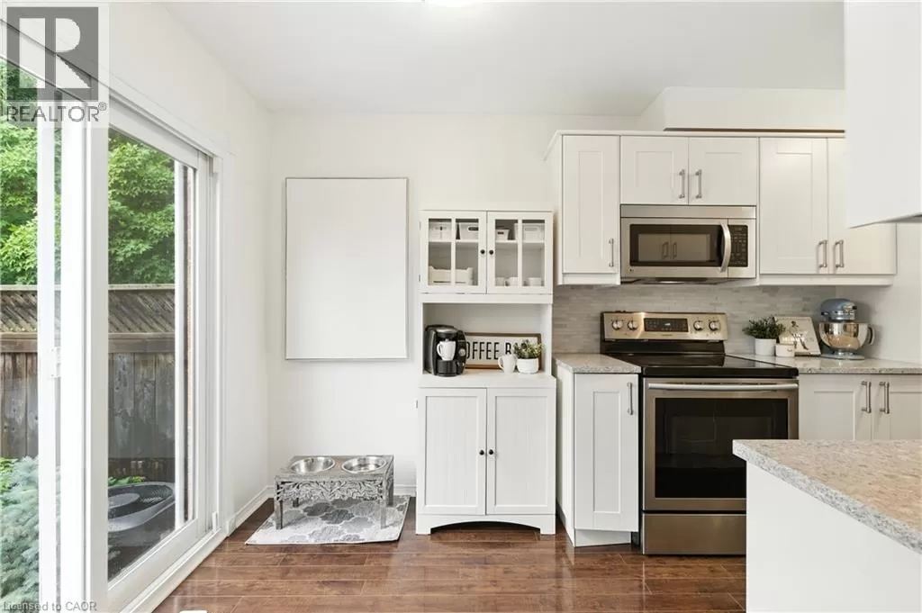 Unit is not inside the complex, but on the east side of the complex on Mowat Ave. Pass the complex entrance and turn left at the stop sign onto Mowat Ave. the property is the end unit next to the bike path. Welcome to this beautiful, move-in-ready, 3 bedroom, 3 bathroom end-unit townhome offering comfort, style, and a prime location. Nestled in the desirable River Oaks community, this spacious 2-storey home features a freshly painted interior and brand-new carpeting upstairs, giving the home a clean and modern feel. The bright and functional layout is enhanced by large windows that flood the space with natural light, while the end-unit positioning offers added privacy and only one shared wall. Upstairs, you'll find three generously sized bedrooms, including an oversized primary suite with walk-in closet and plenty of room to add a future ensuite bathroom, offering incredible potential for customization and increased value. Enjoy a fully finished basement, ideal for kids hanging space/ rec room, home office or additional living space. Take advantage of your private backyard oasis, perfect for relaxing or entertaining. Located just steps from scenic walking and biking trails, this home is a nature lover's dream while still being close to top-rated schools, shopping, and major commuter routes. Whether you're upsizing, downsizing, or looking for your first family home, this property checks all the boxes! (id:27476)