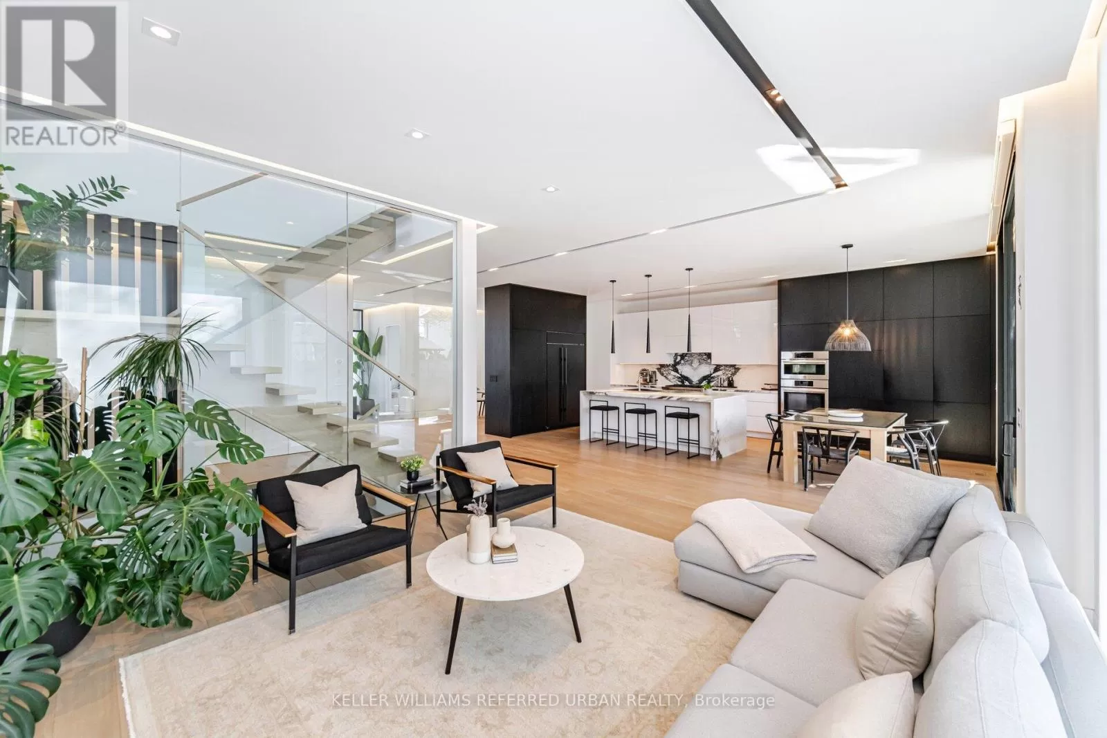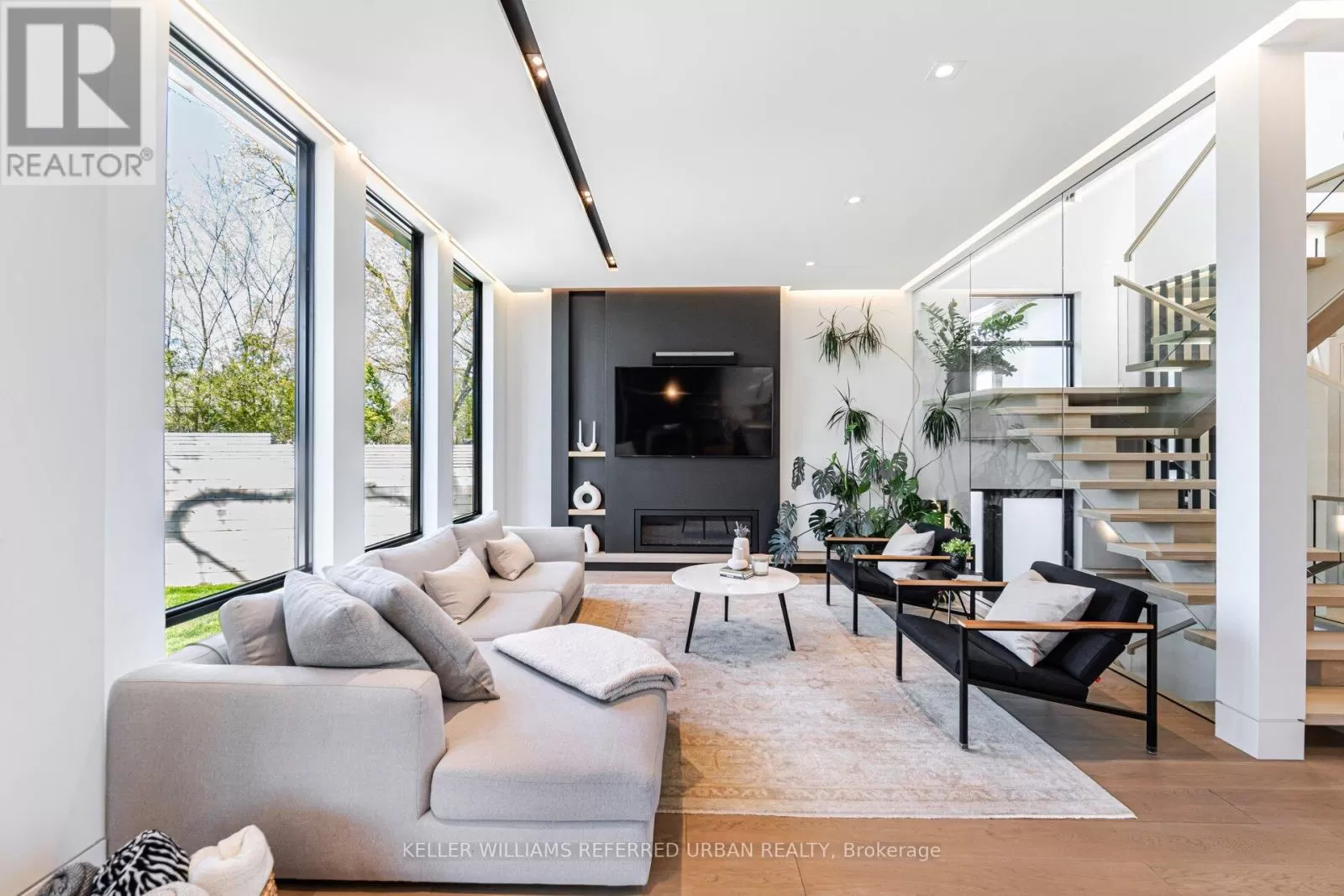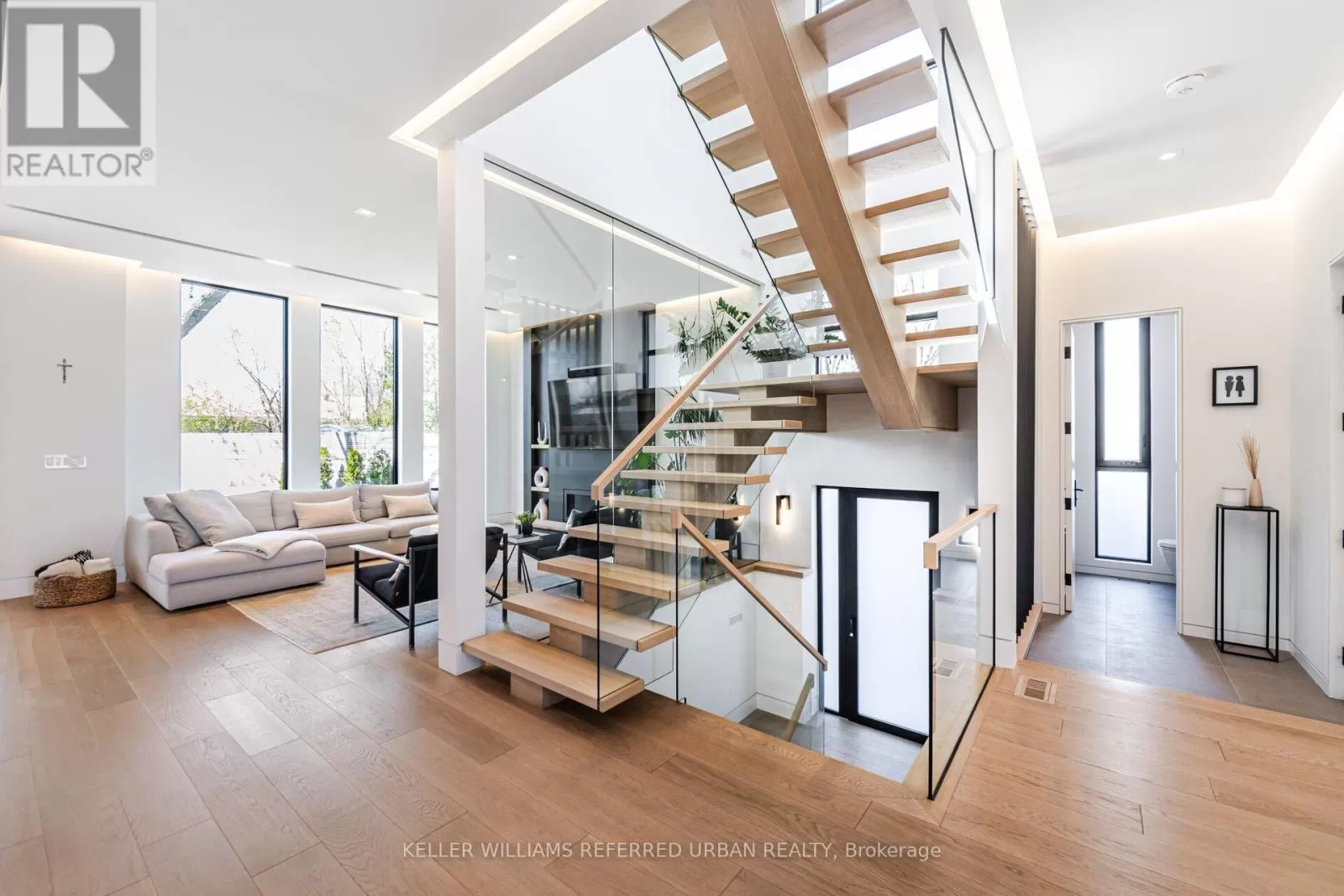 Rebecca/Third Line Step into the pinnacle of modern elegance with this stunning custom-built executive home, completed in 2020 and nestled in the highly sought-after heart of Southeast Oakville. This architectural gem is a true testament to luxury, offering a seamless blend of sophisticated design, premium finishes, and an abundance of natural light. From the moment you enter, you'll be captivated by the open and intelligently configured interior layout, soaring 10' floating ceilings with cove lighting, and floor-to-ceiling windows that fill the space with sunlight. Every detail has been meticulously crafted, from the European white oak engineered hardwood floors to the 8' solid core doors, flush trim, and hidden anchored glass railings that exude contemporary sophistication. The heart of the home is the designer kitchen, featuring an oversized island, 10' cabinetry, and top-of-the-line appliances, perfect for entertaining or enjoying quiet family moments. The main floor flows effortlessly into a spacious living area, complete with a gas fireplace, built-in surround sound, and motorized blinds for ultimate convenience. Upstairs, natural light continues to shine through skylights and oversized windows, illuminating four generously sized bedrooms, each with its own ensuite bathroom and custom-built walk-in closets. The bespoke laundry room, with floor-to-ceiling cabinetry, adds a touch of practicality and style. The finished basement offers additional living space, ideal for a home theatre, gym, or playroom, while the mono-stringer staircase and glass railings create a striking visual statement from top to bottom. This home is more than just a residence, it's a lifestyle. With its unparalleled craftsmanship, high-end finishes, and prime location in one of Oakville's most desirable neighbourhoods, this property is truly Luxury at Its Finest. Don't miss the opportunity to experience the intricate quality and modern elegance of this exceptional home. (id:27476)