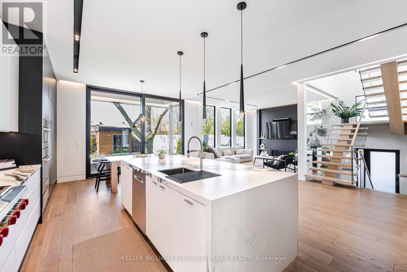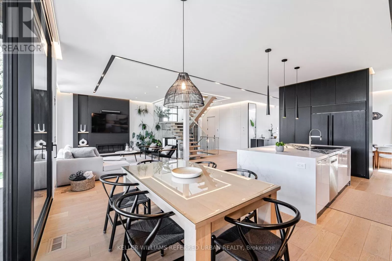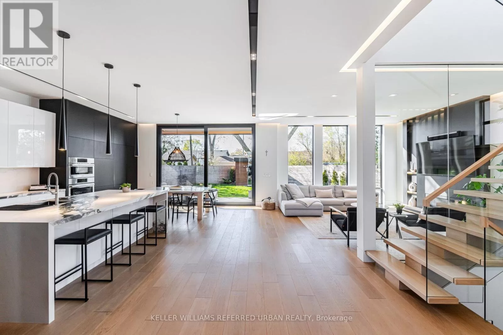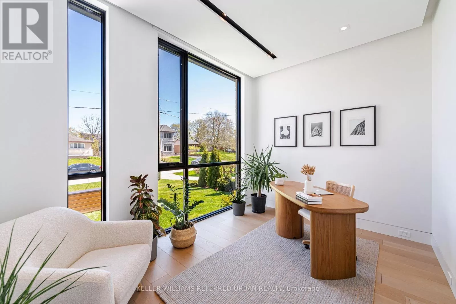 Rebecca/Third Line Step into the pinnacle of modern elegance with this stunning custom-built executive home, completed in 2020 and nestled in the highly sought-after heart of Southeast Oakville. This architectural gem is a true testament to luxury, offering a seamless blend of sophisticated design, premium finishes, and an abundance of natural light. From the moment you enter, you'll be captivated by the open and intelligently configured interior layout, soaring 10' floating ceilings with cove lighting, and floor-to-ceiling windows that fill the space with sunlight. Every detail has been meticulously crafted, from the European white oak engineered hardwood floors to the 8' solid core doors, flush trim, and hidden anchored glass railings that exude contemporary sophistication. The heart of the home is the designer kitchen, featuring an oversized island, 10' cabinetry, and top-of-the-line appliances, perfect for entertaining or enjoying quiet family moments. The main floor flows effortlessly into a spacious living area, complete with a gas fireplace, built-in surround sound, and motorized blinds for ultimate convenience. Upstairs, natural light continues to shine through skylights and oversized windows, illuminating four generously sized bedrooms, each with its own ensuite bathroom and custom-built walk-in closets. The bespoke laundry room, with floor-to-ceiling cabinetry, adds a touch of practicality and style. The finished basement offers additional living space, ideal for a home theatre, gym, or playroom, while the mono-stringer staircase and glass railings create a striking visual statement from top to bottom. This home is more than just a residence, it's a lifestyle. With its unparalleled craftsmanship, high-end finishes, and prime location in one of Oakville's most desirable neighbourhoods, this property is truly Luxury at Its Finest. Don't miss the opportunity to experience the intricate quality and modern elegance of this exceptional home. (id:27476)