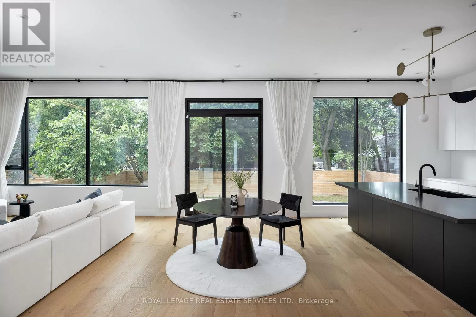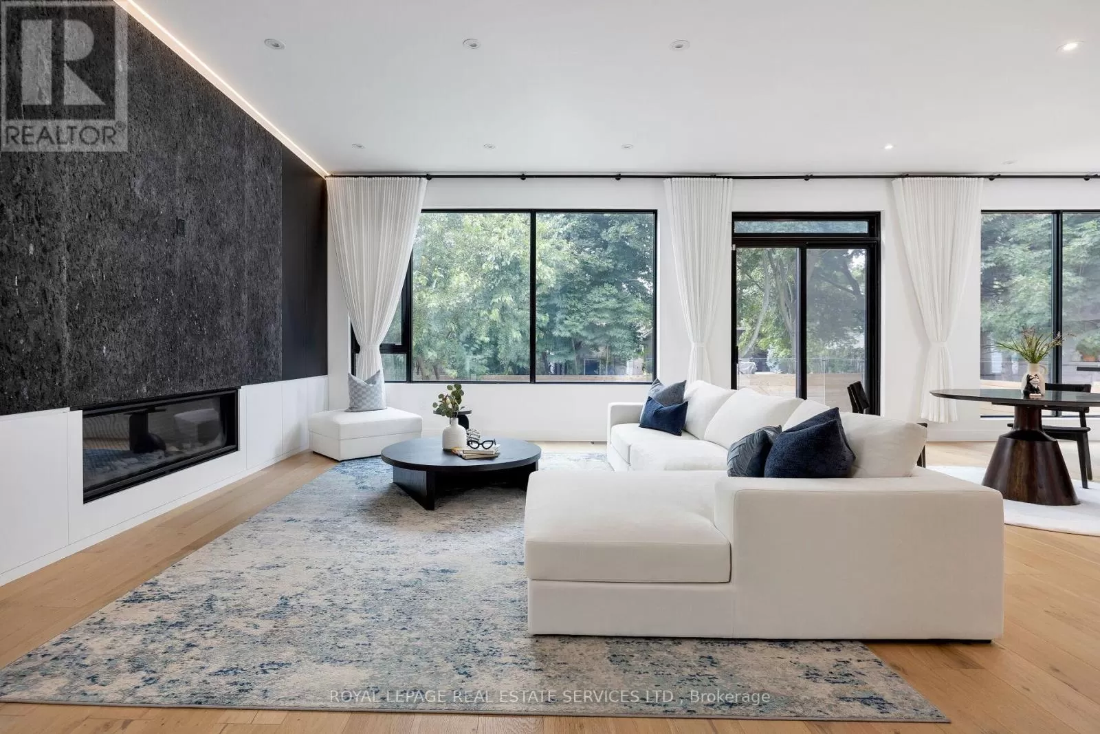 Wedgewood/Acton Exquisite modern house with blends of form, light, and emotion. This architectural marvel is designed by Atelier Sun, published on Archello & Toronto Interiors. Completed in 2023, with over 5,300 sqft of total living space, offering luxury living at its finest. The open concept main level is anchored by custom wood wall paneling that creates inviting atmosphere upon entering. Expansive window openings acting as picture frames, and flooded with natural lights throughout the house. Soaring 10ft ceilings on the main and upper levels, highlighted by floating staircase & custom metal railing that elevate the modern elegance. The chef's kitchen features Miele appliances, Caesar stone countertops and sleek cabinetry. Flows seamlessly into the family room with a stunning granite slab surrounds the gas fireplace. Custom designed lighting is for both relaxation and entertainment. This home boasts four bedrooms on the upper level, each with its own ensuite and heated floors. The finished basement offers recreation room, wet bar, gym, studio, guest bedroom with ensuite. Walkout to your backyard oasis, a saltwater pool, two tiered deck, concrete patio stairs is the perfect spot for outdoor movie nights. Located in one of Oakville's most desirable neighbourhood and steps from top-rated schools. Combines with thoughtful design and smart technology, this artwork offers you an unparalleled living experience. (id:27476)