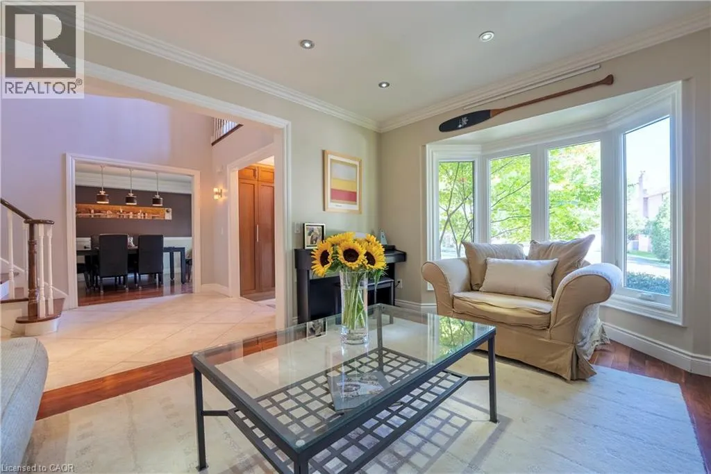 Upper Middle Road, Left on Sixth Line, Right on River Oaks Blvd East Welcome to 11 Morrison Creek Crescent. This four-bedroom elegant home is located on one of the most sought-after streets in the family-friendly River Oaks neighborhood. It features an oversized, pie-shaped lot backing onto a lush ravine, which is perfect for a pool. The property also includes a charming courtyard patio with tumbled stone, offering a completely private outdoor space, and a large double-car garage with new doors. The house in total has 4048 square feet and offers four spacious bedrooms and a fully finished basement, providing ample living area. It boasts attractive crown moldings throughout and is equipped with new appliances in the kitchen. Situated on a quiet crescent, the home provides a peaceful environment. The thoughtfully designed interior includes a kitchen overlooking a sunken family room, perfect for entertaining, and a convenient main floor den/library separate dining room and separate Living room both overlook the front yard. It features a large master retreat with ample closets and a walk-out to a rooftop balcony. The residence follows a classic center hall plan and benefits from its proximity to good schools. Additionally, the home is well-lit with plenty of pot lights, enhancing its bright and inviting atmosphere. This is the perfect family home in a beautiful ravine setting, on an amazing street, within a great neighborhood. Close to the Hwy 403 and 407. (id:27476)