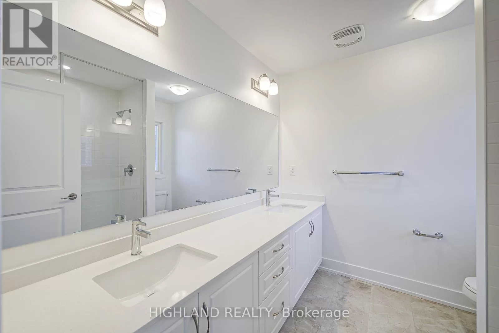 Dundas & John Mckay Blvd ** Facing a Beautiful Pond View & End Unit Townhouse Like A Semi-Detached Home ** Welcome to this brand new and luxury end-unit townhouse, offering the feel of a semi-detached home, ideally located in the most sought-after neighborhood of Joshua Meadows, Oakville. South-facing with serene pond views, this elegant residence offers 5 bedrooms and 4.5 bathrooms, designed with both style and functionality in mind. The ground floor features an extra room with a 4-piece ensuite, perfect as a 5th bedroom, guest suite, or private home office. The home boasts an open-concept layout with hardwood floors throughout, creating a seamless flow across the living spaces. The modern kitchen is equipped with a large island and connects directly to a formal dining room with walkout to a spacious deck, ideal for entertaining. The great room, enhanced by expansive windows, welcomes abundant natural light and showcases beautiful pond views. The primary bedroom suite includes a 4-piece ensuite and a spacious walk-in closet. A second primary bedroom also features a 4-piece ensuite and large closet. Two additional bedrooms, both facing the pond with oversized windows, share a full 4-piece bathroom. Enjoy easy access to Highways 403, 407, and QEW, steps to the pond and walking trails, and closeness to Trafalgar/Dundas commercial area, schools, restaurants, public transit, and parks. (id:27476)