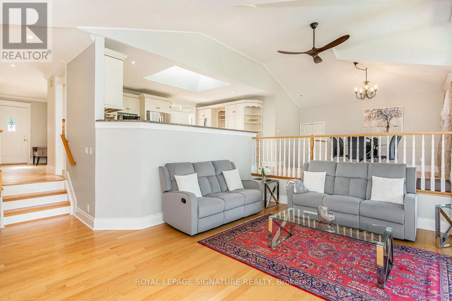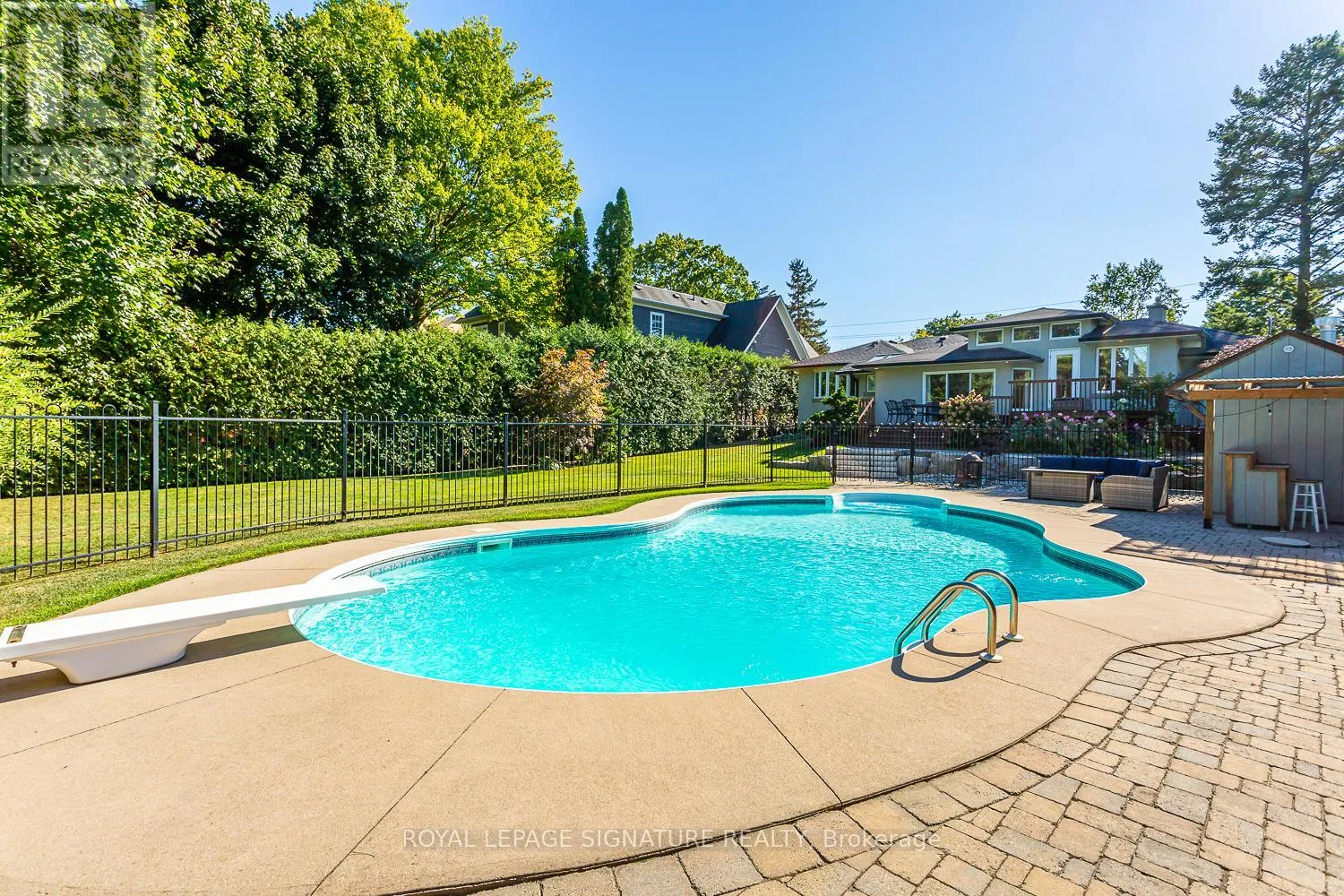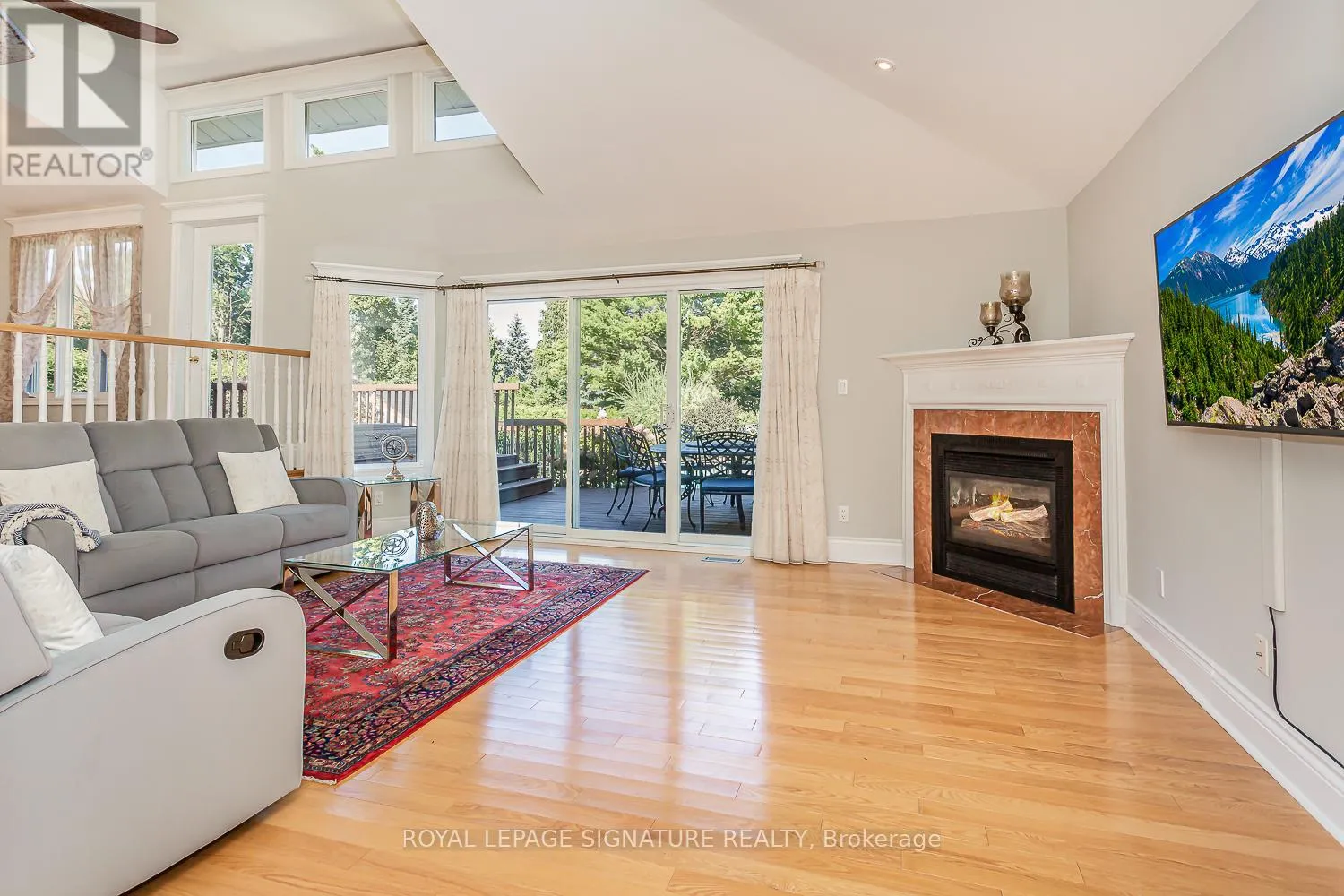 4th Line & Rebecca Welcome to 383 Maplehurst Avenue A Beautiful Bungalow on a Spacious 75' x 272' Lot! This stunning bungalow offers a comfortable living space perfect for families or professionals. Step into a bright and airy living room featuring large windows, blonde hardwood floors, a cozy gas fireplace, and elegant crown moulding. The open-concept kitchen flows seamlessly into the dining and family rooms and is equipped with modern S/S appliances (2020), granite countertops, ample cabinet space, pot lights, a skylight, and ceramic tile flooring. The expansive family room is a true highlight, with high ceilings, hardwood flooring, pot lights, and a second gas fireplace. A walkout leads to a private deck, ideal for outdoor living and entertaining. The spacious primary bedroom offers laminate flooring, a walk-in closet, and a luxurious 4-piece ensuite. Two additional generously sized bedrooms and a 2-piece bath complete the main level. The fully finished basement provides a large recreation room, an additional bedroom, a 3-piece bathroom, a laundry room, and plenty of storage space. The backyard is an entertainers paradise, featuring a two-tiered deck, a fenced pool area with an Inground pool, a pool shed, and an outdoor bar. The expansive lawn is surrounded by mature trees and includes a garden shed for extra storage. Don't miss the chance to live in this wonderful home schedule a viewing today! $6000 including all utilities. Short-term lease. (id:27476)