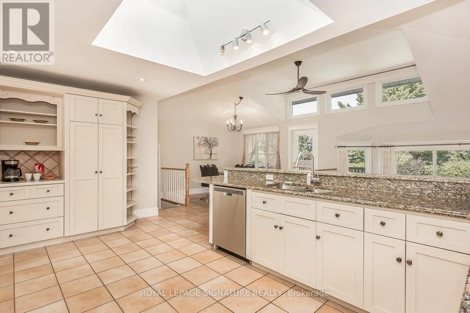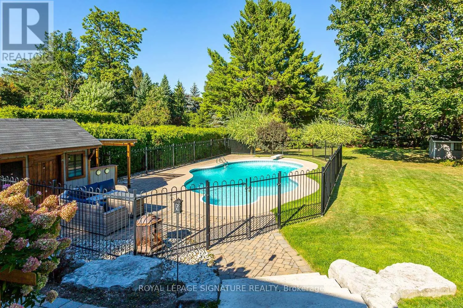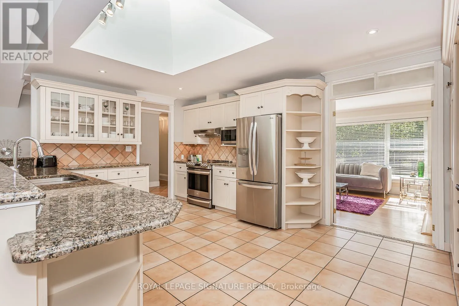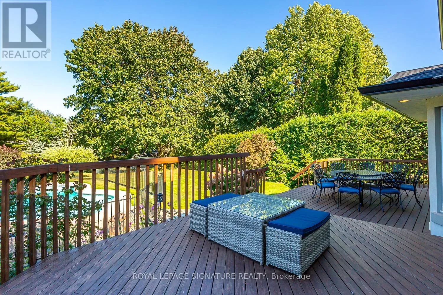 4th Line & Rebecca Welcome to 383 Maplehurst Avenue A Beautiful Bungalow on a Spacious 75' x 272' Lot! This stunning bungalow offers a comfortable living space perfect for families or professionals. Step into a bright and airy living room featuring large windows, blonde hardwood floors, a cozy gas fireplace, and elegant crown moulding. The open-concept kitchen flows seamlessly into the dining and family rooms and is equipped with modern S/S appliances (2020), granite countertops, ample cabinet space, pot lights, a skylight, and ceramic tile flooring. The expansive family room is a true highlight, with high ceilings, hardwood flooring, pot lights, and a second gas fireplace. A walkout leads to a private deck, ideal for outdoor living and entertaining. The spacious primary bedroom offers laminate flooring, a walk-in closet, and a luxurious 4-piece ensuite. Two additional generously sized bedrooms and a 2-piece bath complete the main level. The fully finished basement provides a large recreation room, an additional bedroom, a 3-piece bathroom, a laundry room, and plenty of storage space. The backyard is an entertainers paradise, featuring a two-tiered deck, a fenced pool area with an Inground pool, a pool shed, and an outdoor bar. The expansive lawn is surrounded by mature trees and includes a garden shed for extra storage. Don't miss the chance to live in this wonderful home schedule a viewing today! $6000 including all utilities. Short-term lease. (id:27476)