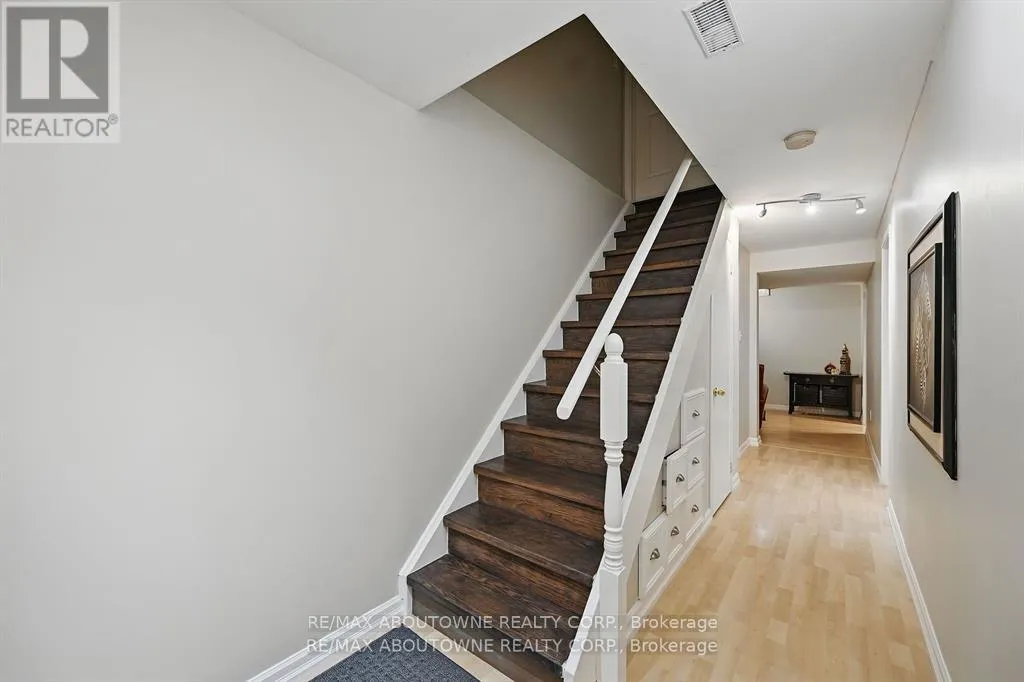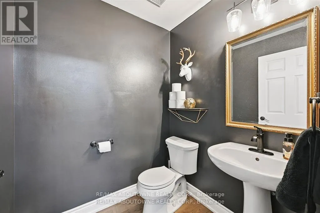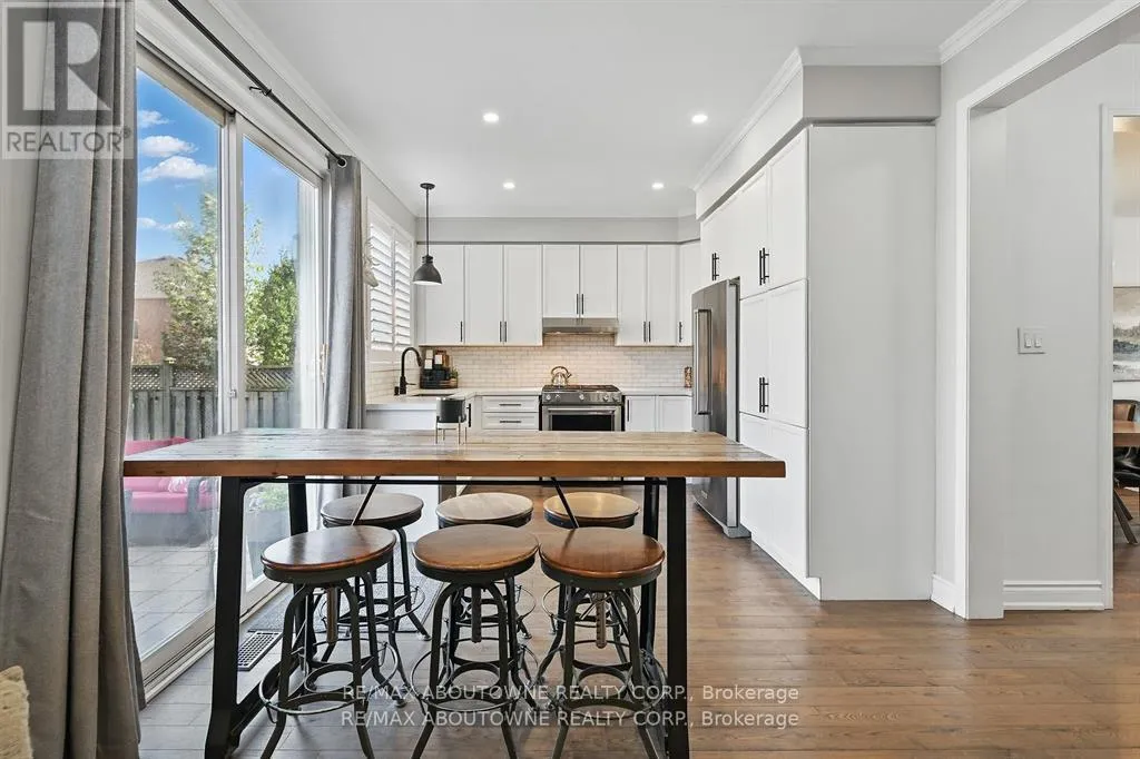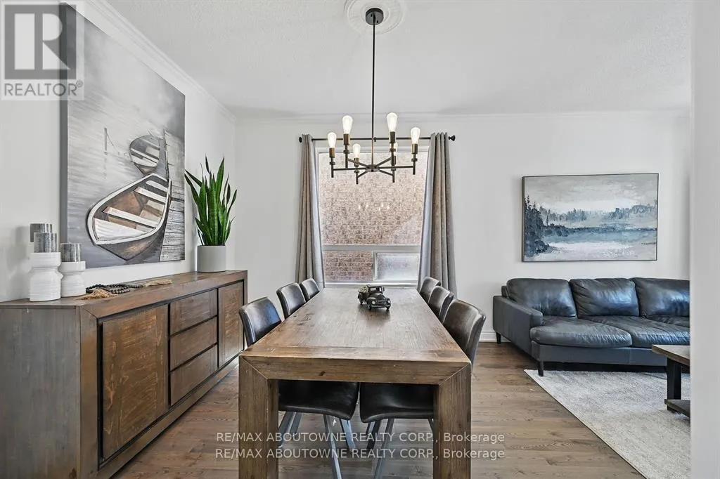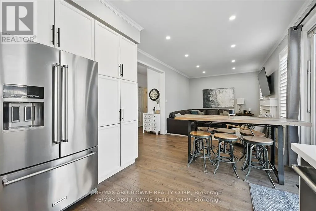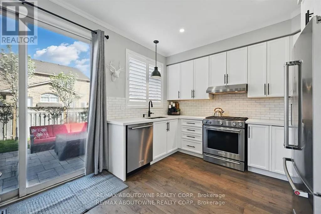 Bronte/Upper Middle Gorgeous upgraded 4+1 bedroom detached home on a quiet street, with more than 2500 sf of total living space. Featuring a welcoming front porch, 9-foot ceilings, an elegant upgraded staircase, and abundant natural light, this home is designed with family living in mind. The renovated kitchen will impress with its quartz countertops, marble backsplash, stainless steel KitchenAid appliances, and generous pantry space, ideal for busy family meals. California shutters, crown mouldings, pot lights, and rich hardwood flooring add warmth and charm throughout the main living area. Upstairs, the primary suite offers a peaceful retreat with a walk-in closet and ensuite bathroom complete with a soaker tub and walk-in shower. Three additional spacious bedrooms and a full main bath provide plenty of room for growing families. The finished basement extends your living space with a fifth bedroom, a full bathroom with in-floor heating, and a comfortable recreation area perfect for teens, in-laws, or a home office setup. Parking for three vehicles with an attached single-car garage and two driveway spaces. Other key updates include: furnace (2021), A/C (2018), and roof (2018). Walk to school, parks, trails, and all the family-friendly amenities Oakville is known for. Don't miss it! (id:27476)