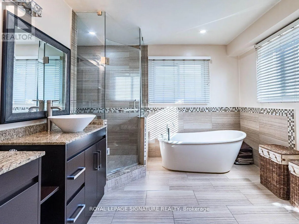 Glenashton/Grand Exceptional & Rare Offering in Prestigious Oakville. Welcome to one of the largest & most distinguished homes in the area, offering over 5,000 sq ft of luxurious living space across three expansive above-ground levels & a beautifully finished basement. Set on a professionally landscaped 48.34' x 109.91' lot in one of Oakville's most sought-after neighborhoods, this 7-bedroom, 5-bathroom architectural gem seamlessly blends elegance, comfort, and functionality. A dramatic 25-ft high foyer welcomes you into the home, setting a tone of grandeur from the moment you enter. The main floor features sleek porcelain tile, hardwood floors, and a bright, open-concept layout ideal for modern living and entertaining. The formal living room is adorned with oversized windows, while the inviting family room is anchored by a striking stone fireplace both finished with rich hard wood flooring. At the heart of the home is a gourmet kitchen with an island, built-in appl., & a sunlit b/fast area that overlooks the serene backyard. A formal dining room adds a touch of timeless sophistication. The second level features four generously sized bedrooms, including a luxurious primary suite with a private sitting area & a spa-like 5-piece ensuite. The third-floor loft retreat offers exceptional flexibility, with two additional bedrooms, a spacious living area, & a full 4-piece bathroom perfect for teens, guests, or multi-generational living. The professionally finished basement expands the living space with engineered hardwood flooring throughout, featuring a large recreation room, an additional bedroom, a full bathroom, a dedicated exercise/office area, & ample storage. Step outside to enjoy the deck, that provide year-round greenery and privacy. Ideally located just steps from scenic parks, nature trails, top-rated schools, and shopping, with convenient access to major highways for effortless commuting. (id:27476)