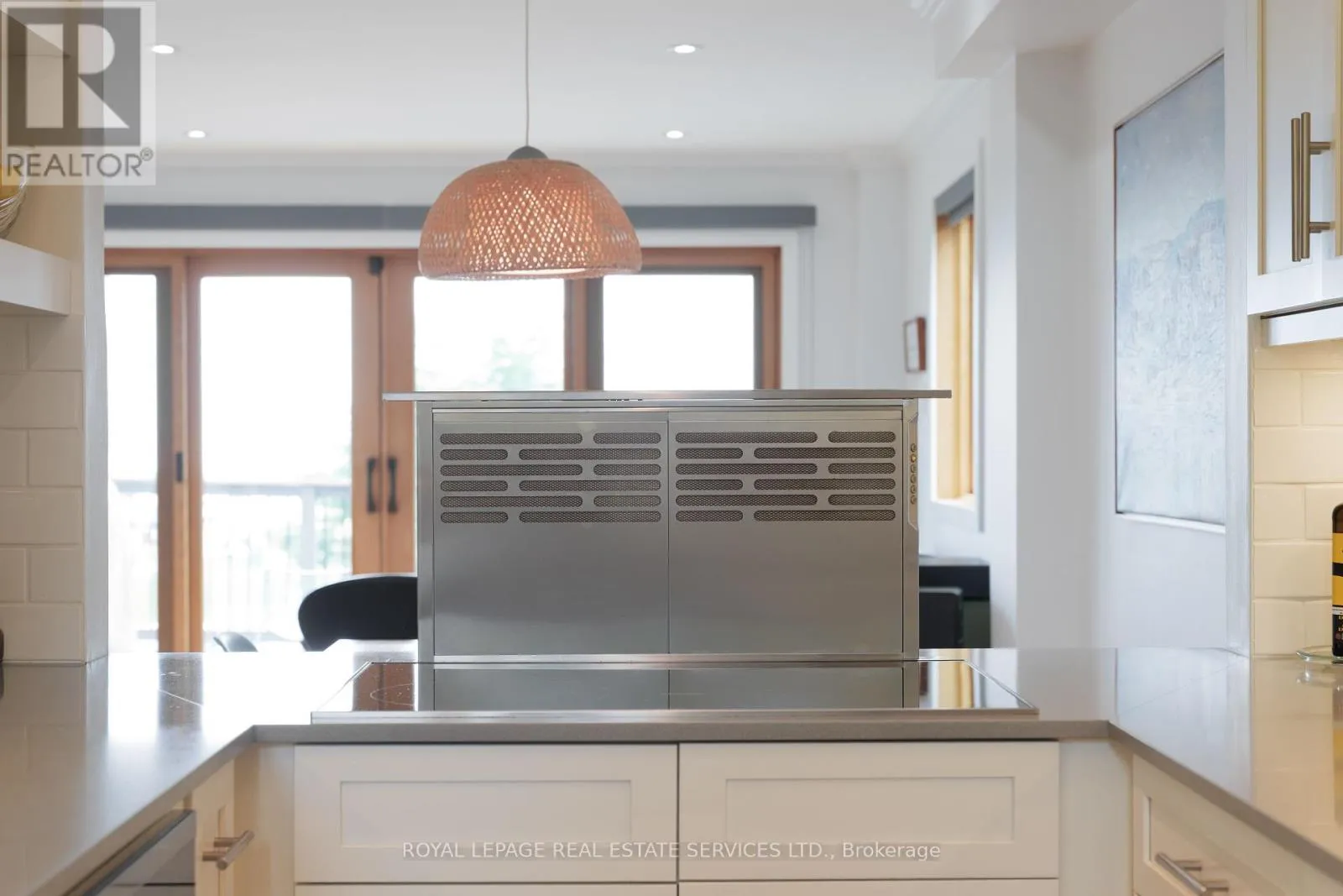 Lakeshore Rd W / Bronte Rd Water Lover's Delight. Experience lakeside living at its finest in this charming home located in the heart of Bronte Village, across from the Harbor Marina and Park with a beach. Panoramic, unobstructed views of Lake Ontario from the living room, master bedroom, and loft. Direct access from the ground level to a huge terrace provides a one-of-a-kind experience that feels like a beach house in the city. This home has been treated with passion and renovated from top to bottom. Designed with European touch throughout, offering both functionality and luxury with many unique features. The expansive living room with a gas fireplace opens to the modern kitchen loaded with Miele appliances. Convenient laundry space is tucked on one side. Floor-to-ceiling windows with sliding doors lead to the terrace and BBQ area, equipped with a gas hookup making the main part of the house perfect for everyday family living, relaxation, and social gatherings. The upper level presents a master bedroom with an ensuite spa-like bathroom including a large shower with a glass door and a Japanese toilet, finished with cork flooring. Two additional bedrooms along with an extra full bathroom complete the quiet area. For anyone in search of a soothing getaway, a productive sanctuary home office or an art studio, the loft area offers a stunning escape. It features a soaring cathedral ceiling, a grand Palladian window, and more breathtaking views of the water. The cozy main-level family room provides seamless access to your own private backyard, which invites relaxation, while the saltwater hot tub adds an extra touch of luxury. This prime spot is surrounded by walking trails, trendy restaurants, boutique shops, and more to discover. It offers the perfect balance of lakeside serenity and urban convenience. (id:27476)
