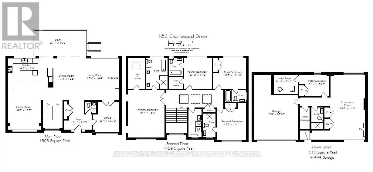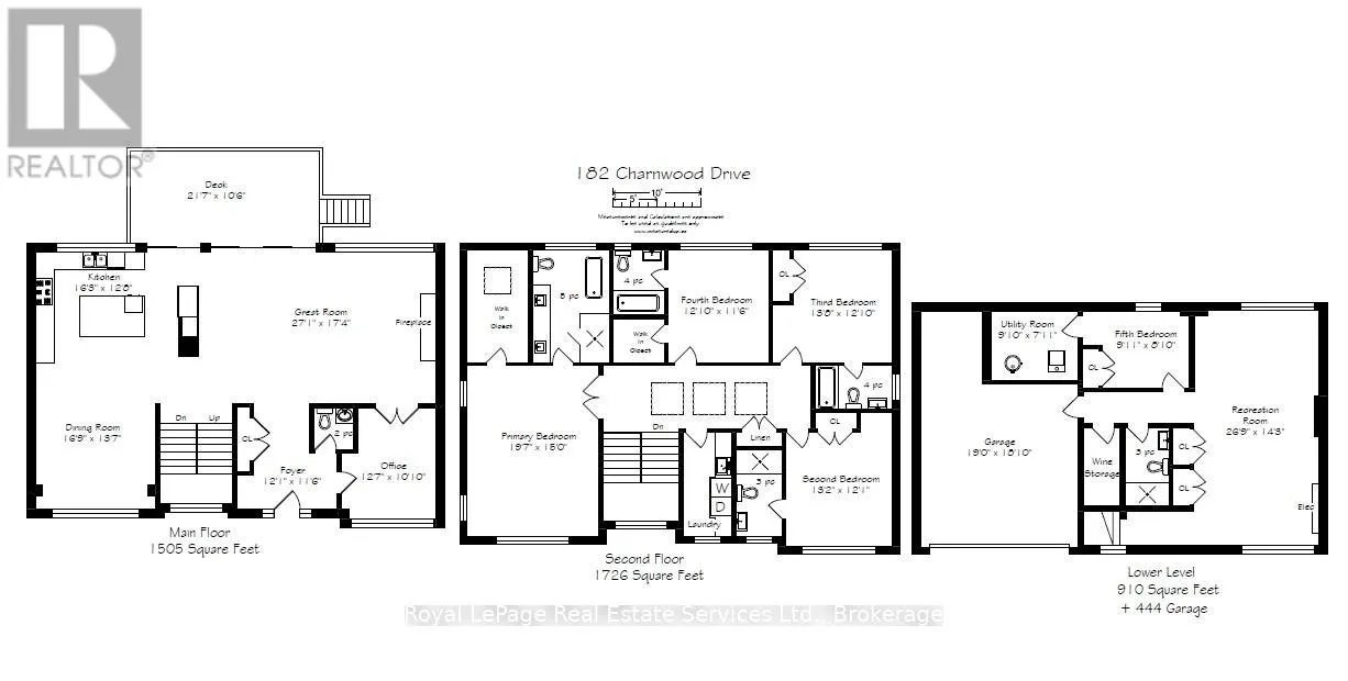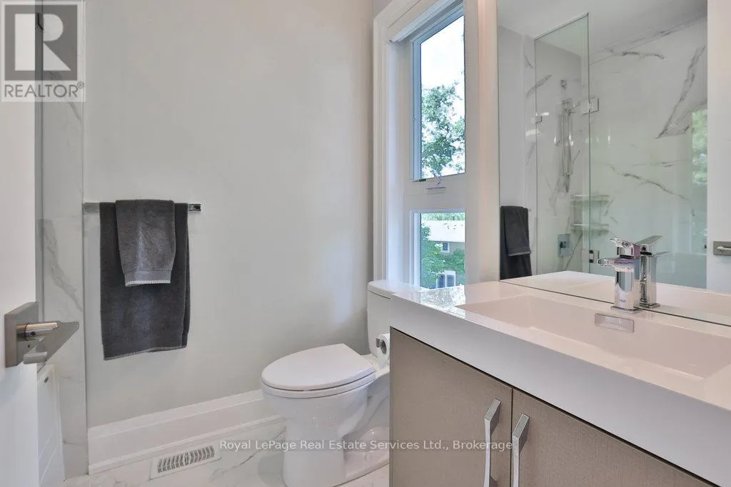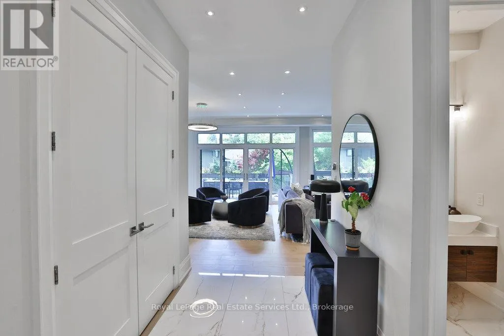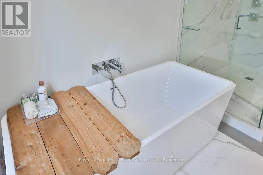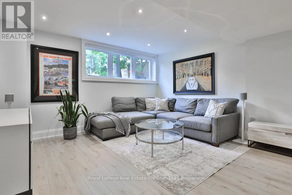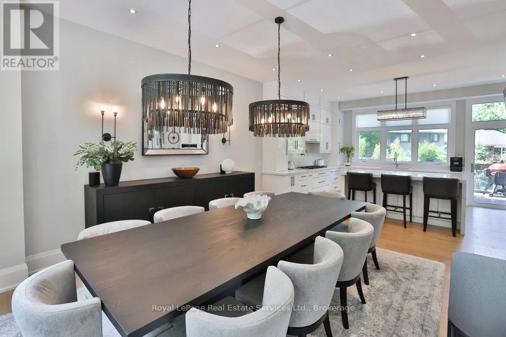 Lakeshore / Charnwood Stunning contemporary designed custom 4+1 bedroom, 5 bathroom home in prestigious Southeast Oakville, directly facing Charnwood Park. With over 4,000 sq ft of luxurious living space across three levels, this home features 10ft ceilings on the main floor and 9ft on the second. The main level offers a formal living and dining room, spacious family room, private office, and powder room. Wall-to-wall windows flood the space with natural light. The modern kitchen includes a large island, quartz countertops, high-end cabinetry, and top-tier appliances and walk-out to composite deck. Premium finishes throughout include floating stairs, solid core doors, designer lighting, coffered ceilings, heated floors, a convenient upper-level laundry room, and custom motorized blinds in the main and primary bedrooms. All 4 upper-level bedrooms feature their own private ensuite. The fully finished basement includes a large recreation room, oversized windows, additional bedroom, and full bath, ideal as an in-law/teenage suite. Additionally there are multiple storage closets and inside entry to double car garage with epoxy floors. Outside, enjoy a stunning fully fenced backyard nestled among mature trees, perfect for entertaining. Features include a large deck, outdoor kitchen with gas BBQ and Fontana Forni pizza oven, 8-person Beachcomber hot tub, natural gas firebowl, beautiful gardens, a custom pergola with full electrical and pivoting TV mount, two custom sheds, and an irrigation system. Additional upgrades include an EV charger, home security cameras, and custom closets. Located in Oakville's top school district (Maple Grove PS, EJ James, St. Vincents and Oakville Trafalgar HS) and just a short walk to the lake, parks, and scenic trails. Truly one of a kind. (id:27476)