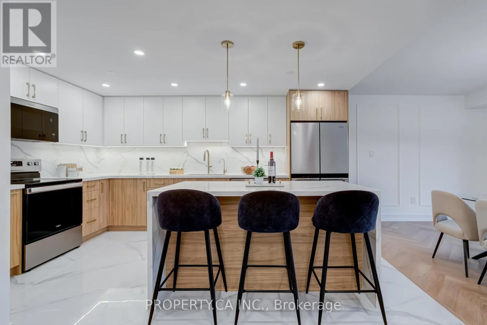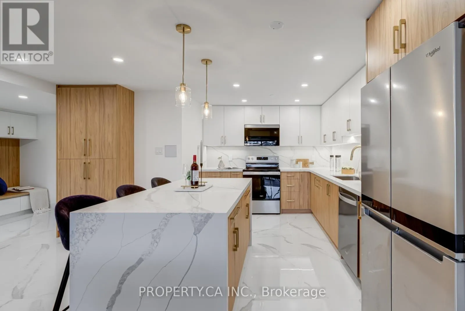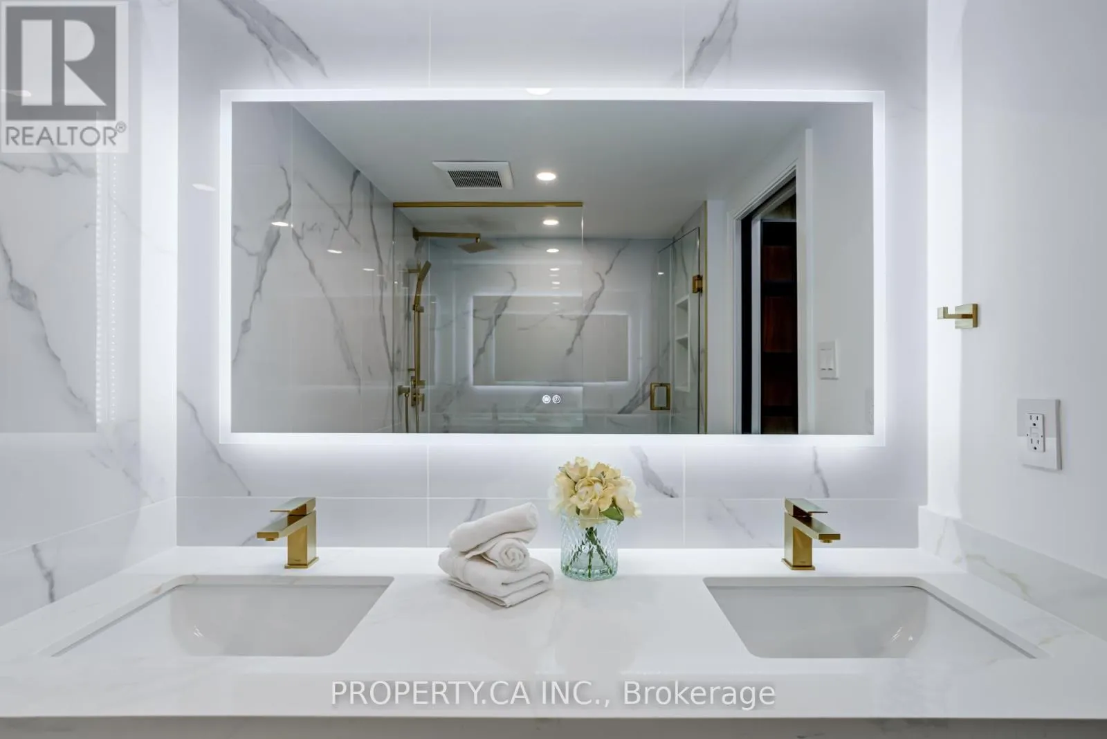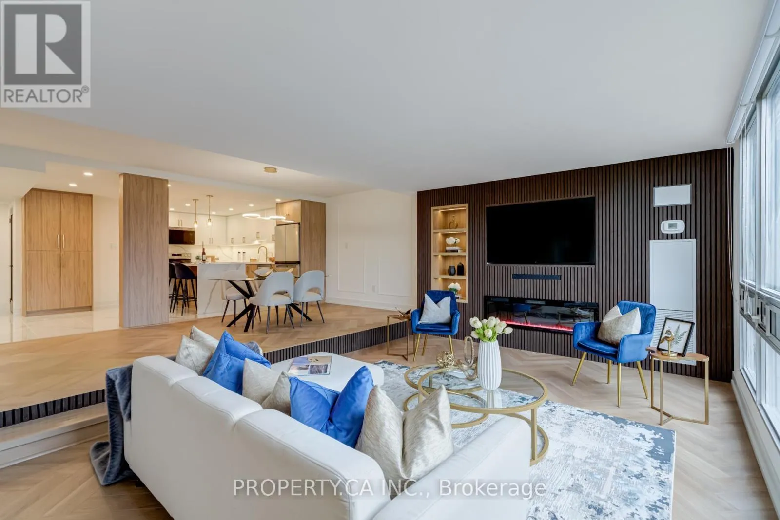 Lakeshore Road West / East Street / Marine Drive Welcome to the prestigious Ennisclare on the Lake! This *never-lived-in* luxury suite offers over 1,350 square feet of thoughtfully designed space with 2 bedrooms, 2 bathrooms, and premium finishes throughout. Featuring *herringbone hardwood flooring* and a stunning *TV fireplace accent wall* (with a new TV, soundbar, and fireplace included), the living room is both stylish and inviting. The chef-inspired kitchen boasts a *waterfall island*, *quartz countertops and backsplash*, ample cabinetry, and brand-new *stainless steel appliances* with warranties. The primary suite includes a custom walk-in closet, a 4-piece ensuite, and balcony access, while the second bedroom features a custom closet perfect for guests or a home office. Enjoy the convenience of in-suite laundry and a storage room. The building offers an attentive management team, lush landscaping, and resort-style amenities, including a pool, sauna, workshop, party room, and more, with ample parking for residents and guests. Just minutes from the lake and Waterfront Trail, and close to Bronte Harbour, cafes, dining, and boutique shopping, this prestigious neighborhood offers the perfect blend of luxury and lifestyle. Don't miss this rare opportunity! (id:27476)