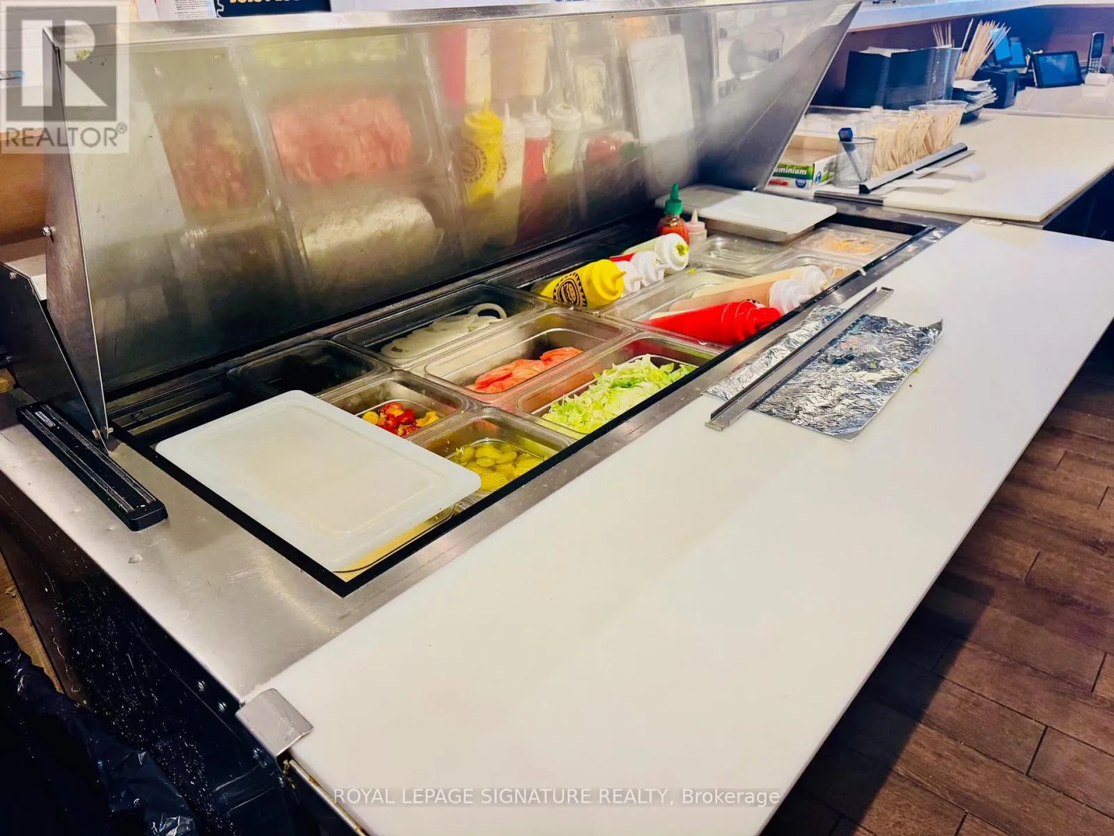 Maple Grove Dr & Cornwall Rd FRANCHISE BUSINESS FOR SALE! QSR Burger Restaurant. Halal Menu! Lots of Equipment! LEASE Until: November 30, 2027 with 5Yr Renewal Option. Rent: Approx. $6,848.25/Mth. Superb build-out. Lots of Foot Traffic! Located at Oakville's MAPLE GROVE plaza. Join the Tenant mix of: Sobeys Grocery, Tim Hortons, Home Hardware, Rexall Pharmacy, Pet Valu, Dollarama, Cards N Such, Oxford Learning, Stretch Lab, Chiropractor, CIBC Bank, Dental, Papa Johns Pizza, Ramen Houzz, Connect Hearing, Quesada, Sinaola Mexican, First Ontario Credit Union, Nail Salon, Little Kitchen Academy, Hair Salon, Hand & Stone, Eye Clinic, Florist, Marble Slab, Skill Samurai, Tanning, Cluck Clucks Chicken, Chatime, Barber, Music Lessons, & more. Close to Residential, Shopping/Retail, Office, etc... Lots of Parking. Join this boutique Burger Franchise with locations across Canada/US or Re-Brand to a Non-Competing Use!!! (id:27476)