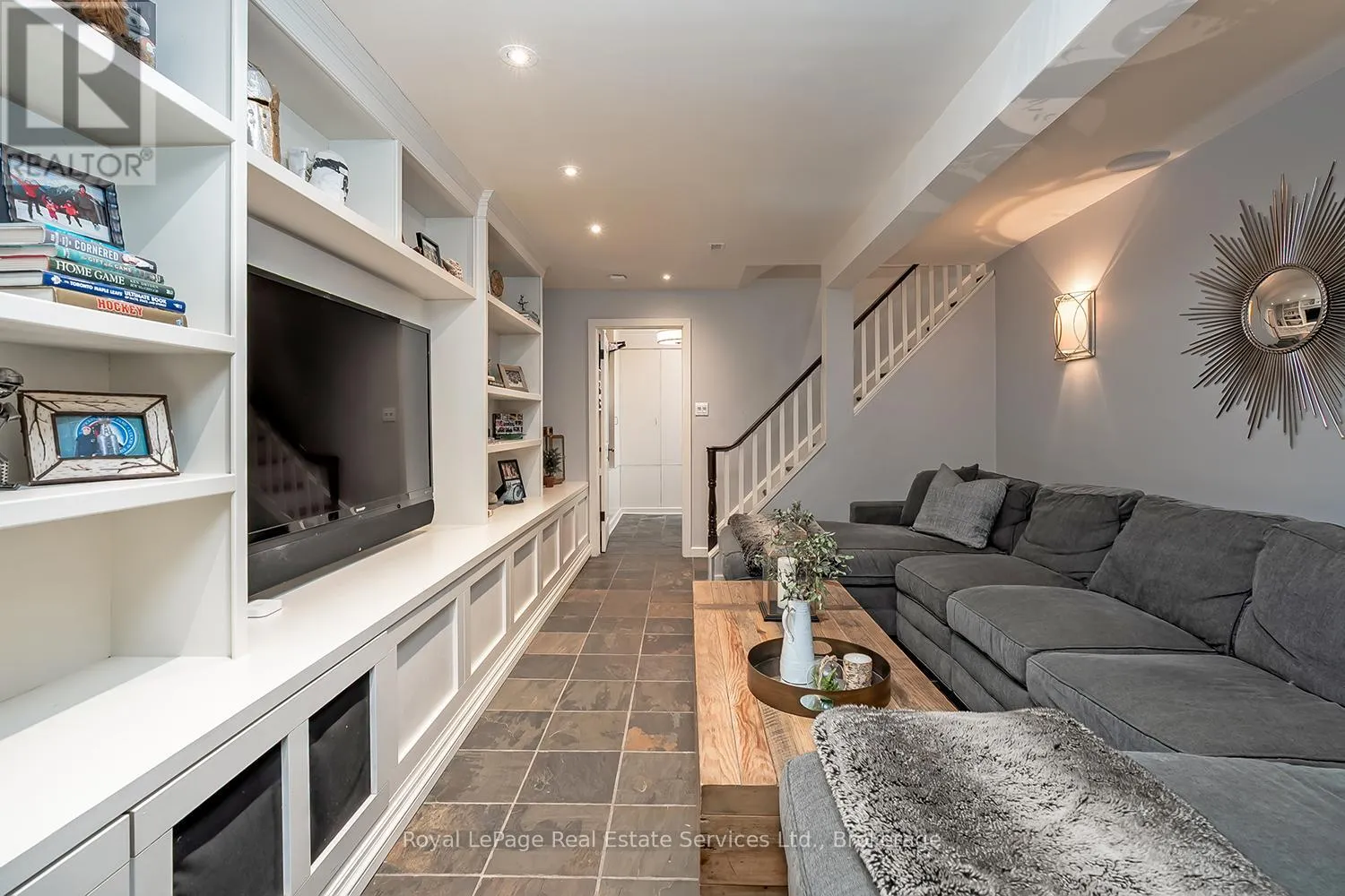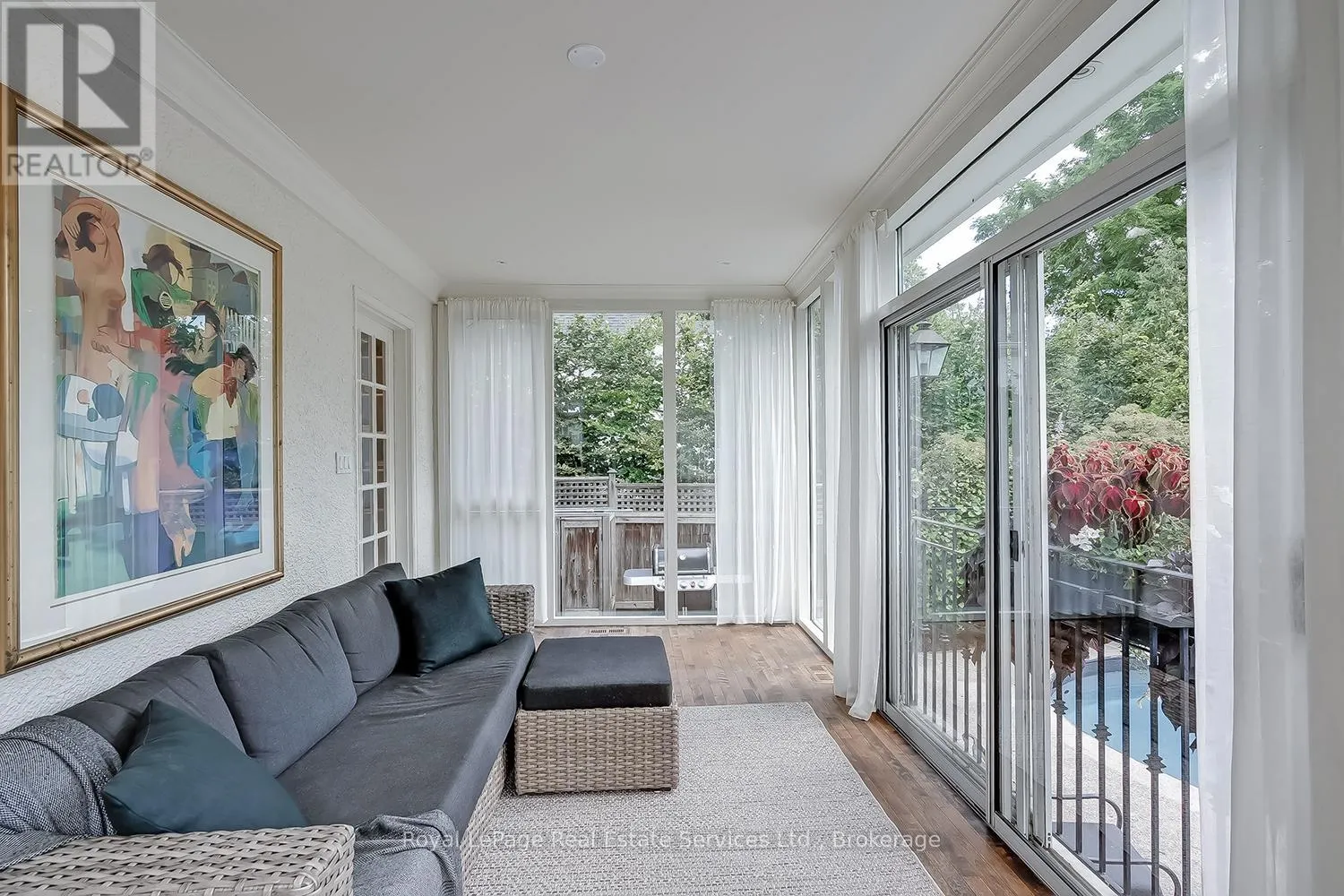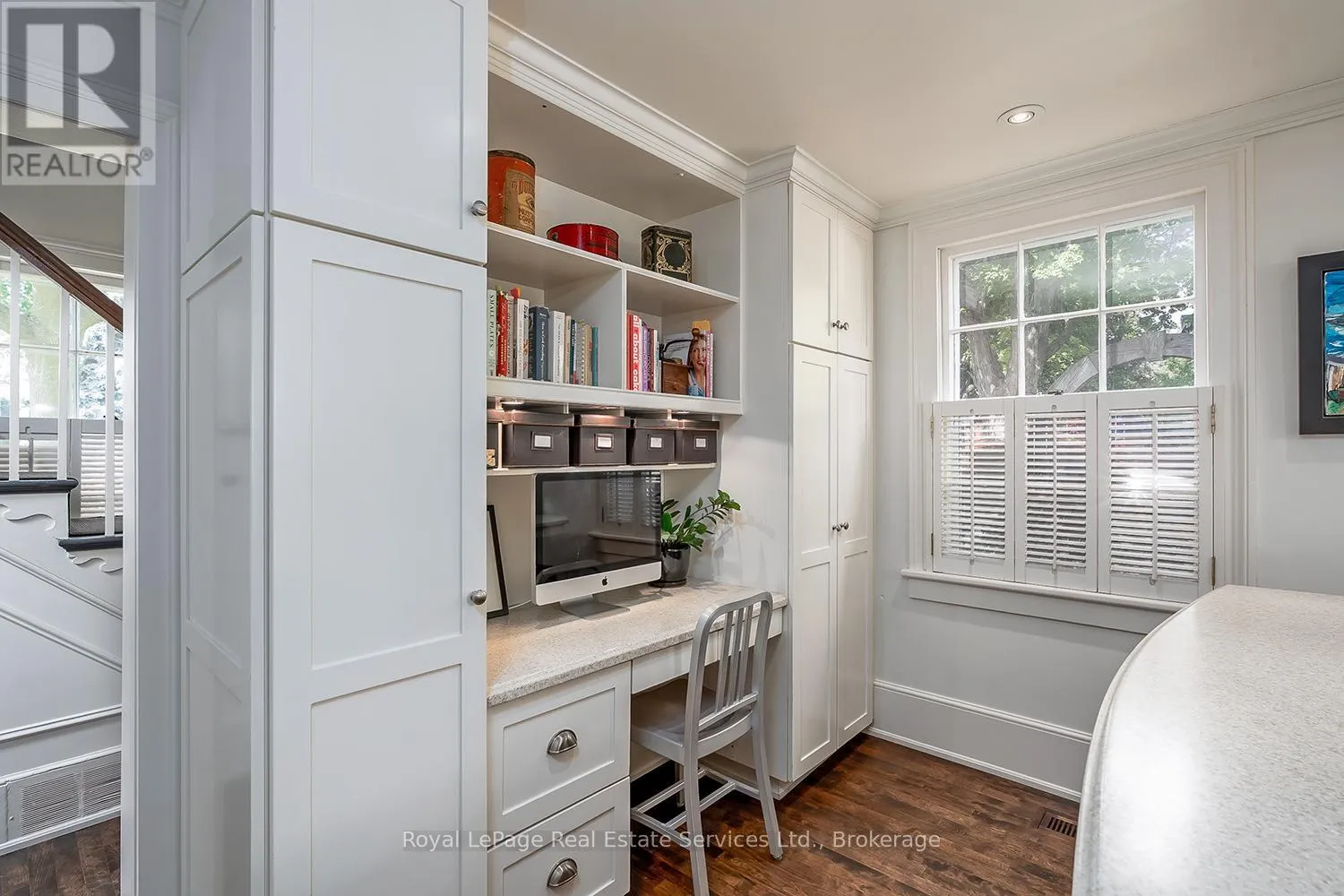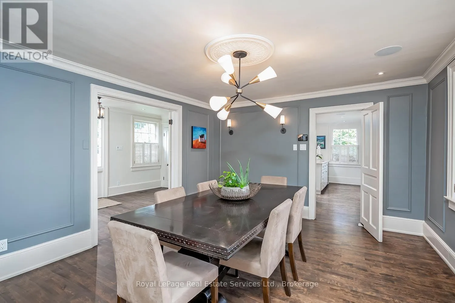 Thomas Street/William Street Nestled south of Lakeshore in the heart of Old Oakvilles historic district, this beautifully restored Georgian-style home, designed by Gren Weis, blends timeless character with modern updates. Steps from the lake, river, and vibrant Downtown, it offers an unmatched lifestyle location.The home boasts exceptional curb appeal with a flagstone path leading to a spacious foyer. Sun-filled interiors feature Farrow & Ball paint, new hardwood on the main level, preserved fir upstairs, smooth ceilings, and recessed LED lighting.The updated kitchen includes a large island, built-in appliances, and desk area. The dining room offers panelled walls, RH sconces, French doors to the garden, and plantation shutters. A charming living room features built-in bookcases, window seat, wood-burning fireplace, and walkouts to a sunroom overlooking the southwest garden and pool. A mudroom and stylish powder room complete the main floor.Upstairs are four bedrooms with ample closets and antique brass hardware. The primary suite offers custom built-ins and a renovated ensuite with heated Carrara marble floors and zero-threshold shower.The fully finished lower level (8 ceilings, slate flooring) adds living space with a media room, workout room, cedar closet, laundry, and storage. Updated mechanicals include a high-efficiency furnace, central AC, 100 AMP panel, irrigation. Cedar roof, new fencing, cobblestone driveway. Outside enjoy a private oasis with saltwater inground pool, brick patios, and landscaped gardens. Steps to the Lake, Oakville Club, Yacht Squadron, Library, Performing Arts Centre, Downtown, and top schools. (id:27476)