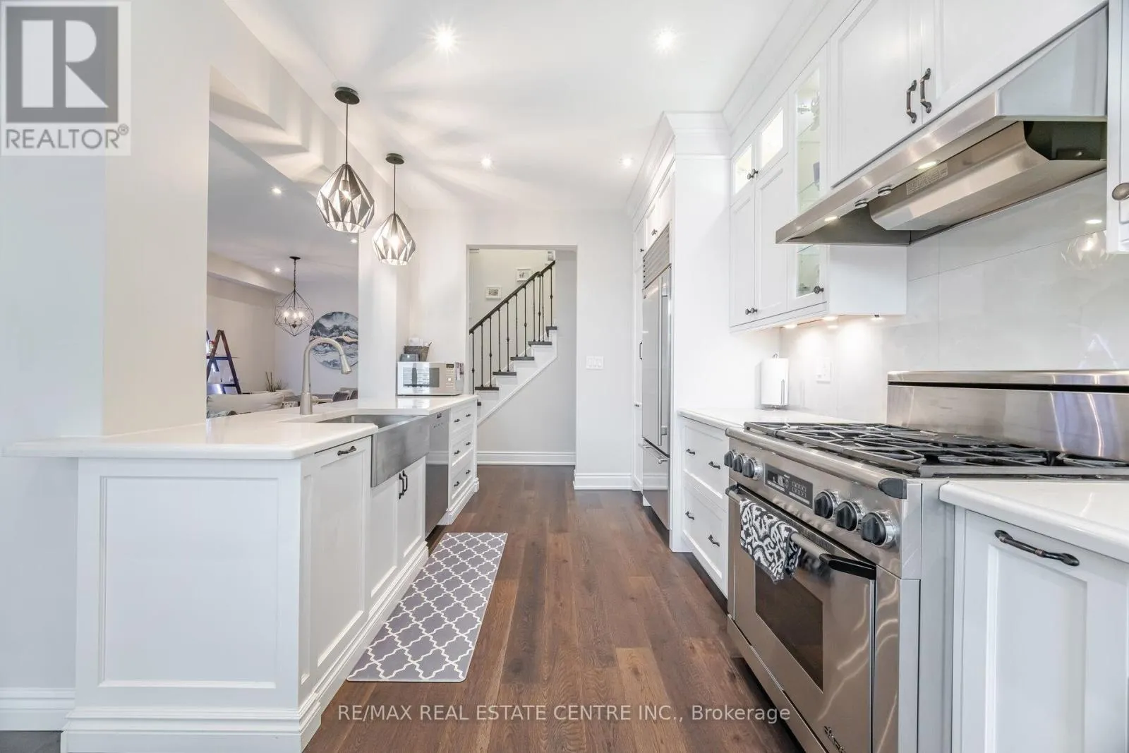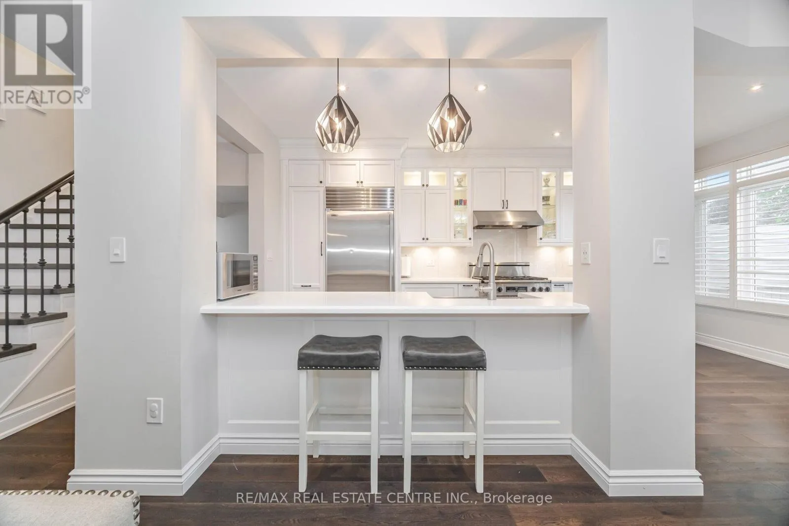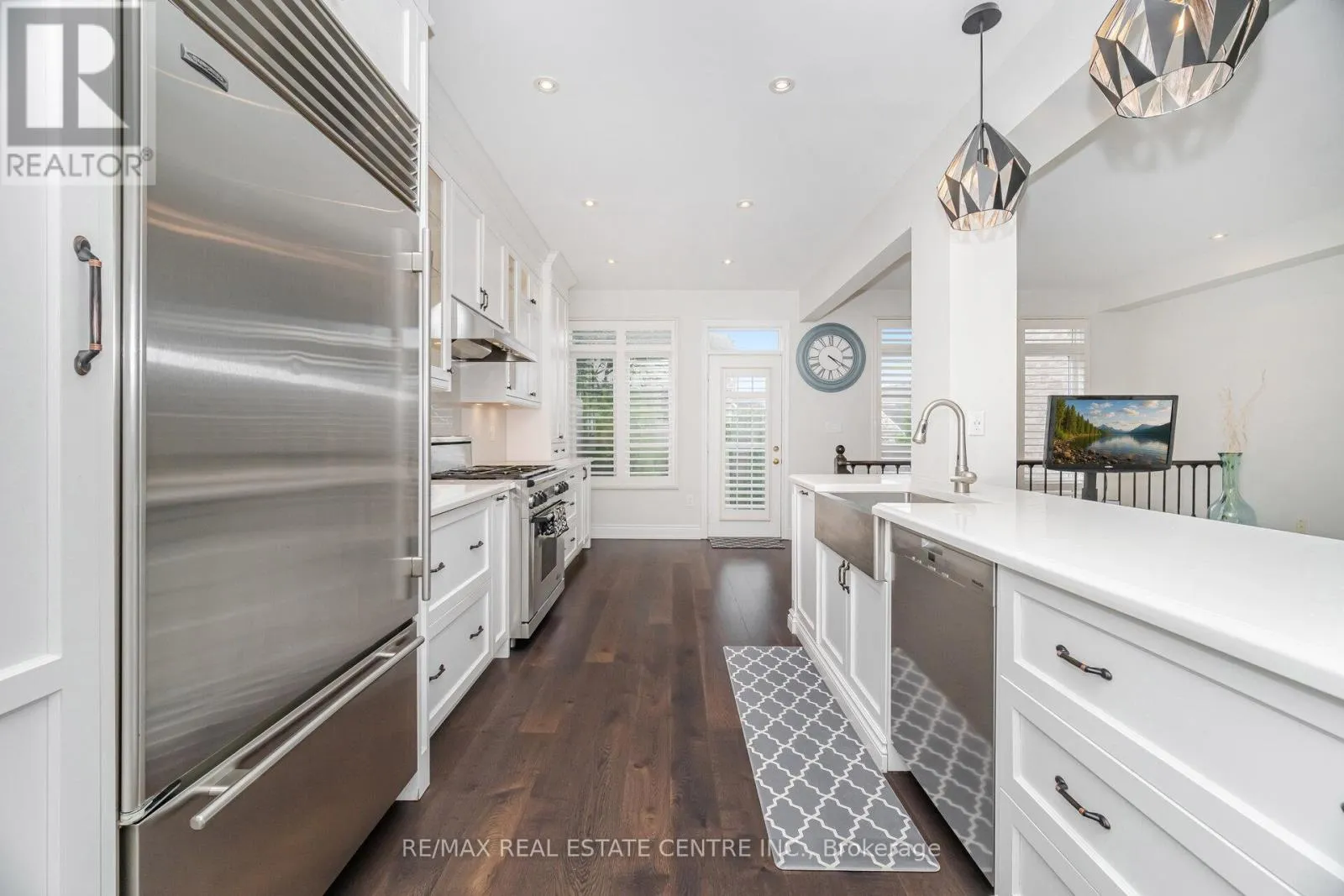 Dundas/ Bronte One-of-a-kind designer showpiece in prestigious Bronte Creek! This exceptional executive townhouse redefines luxury living, thoughtfully renovated from top to bottom with high-end, custom finishes that set it apart from the rest. A bright and welcoming foyer with direct garage access offers a stylish and functional entryway, setting the tone for the elegant interior. Enjoy carpet-free living with engineered hardwood flooring throughout the main and second floors as well as the 9ft high ceilings, paired with an open-concept layout that's perfect for both everyday living and entertaining. The chef-inspired kitchen features Caesarstone quartz countertops, solid wood cabinetry, and high-end stainless steel appliances all designed with a sharp eye for quality and style. Upstairs, the solid wood staircase leads to a serene primary suite complete with a walk-in closet and a spa-like ensuite boasting a standalone tub, frameless glass shower, Hansgrohe shower head, and Toto toilet. All bathrooms throughout the home have been tastefully updated to maintain a cohesive, upscale look. Two additional sun-filled spacious bedrooms offer comfort and versatility, convenient 2nd floor laundry room, while the fully finished basement expands your living space with a fourth bedroom, a modern full bathroom, a cozy rec room, plenty of storage space and a dedicated office nook ideal for working from home. Step outside to your own private, professionally landscaped backyard oasis perfect for entertaining or unwinding at the end of the day. Extended driveway fits 2 vehicles. Located in the highly sought-after Bronte Creek community, this rare gem is surrounded by nature, scenic trails, top-rated schools, and every amenity you need. (id:27476)