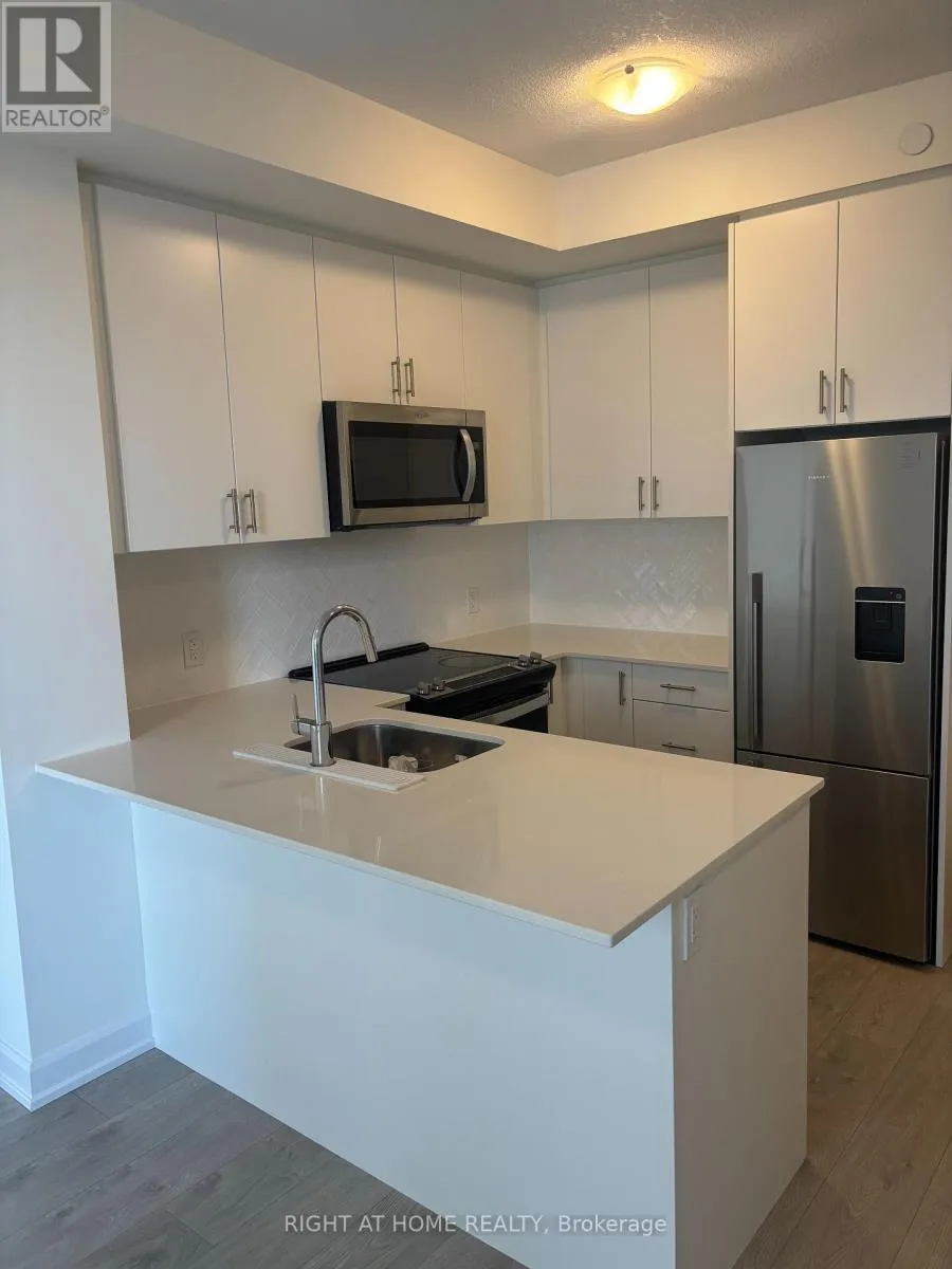 Cross Streets: Dundas/Trafalgar/Threshing Mil. ** Directions: HWY 401 EAST, NORTH ON TRAFALGAR ROAD, EAST ON THRESHING MILL BLVD, NORTH COLTSON AVE. Oak Village Condo, West Side Condo 2. Upgraded Suite, 1 Bedroom with 9ft Ceiling and Walkout to Large Balcony with West View. Kitchen with Breakfast Bar Island, Quartz Counters, Stainless Steel Appliances, Built-In Microwave, and Fridge. Convenient 13 Floor Amenities include Panoramic Views from Rooftop Terrace, Indoor Lounge, and Party Room Kitchen. Amenities include Gym, Yoga Studio, Party Room, Concierge, and Bicycle Storage. Long term lease preferred (12 months), able to negotiate short term lease (6 months). (id:27476)