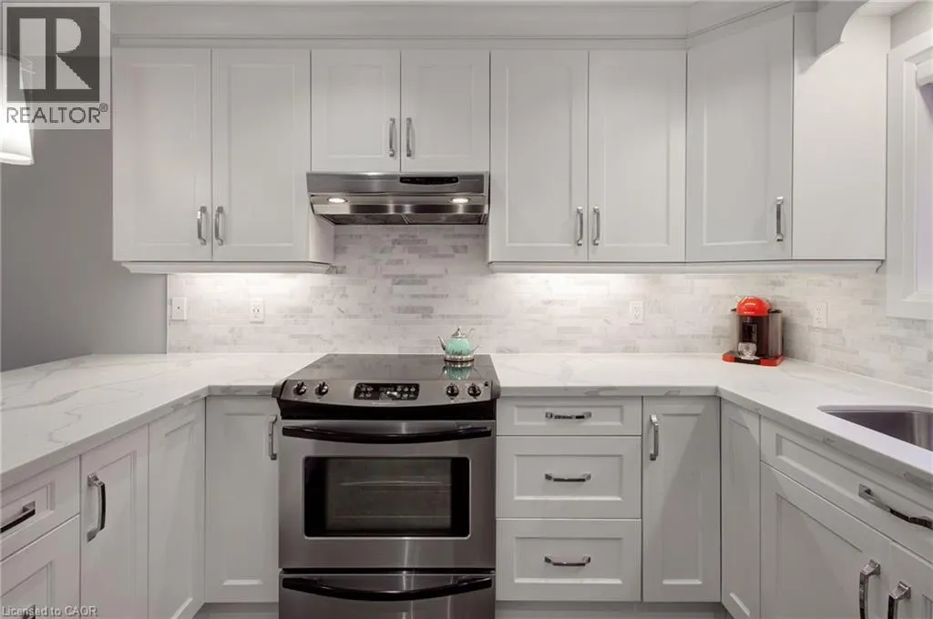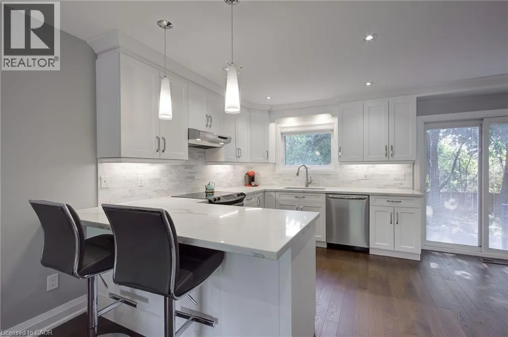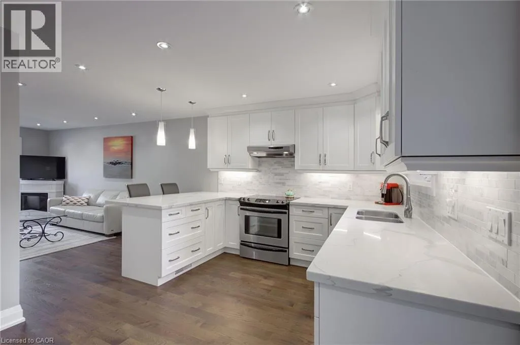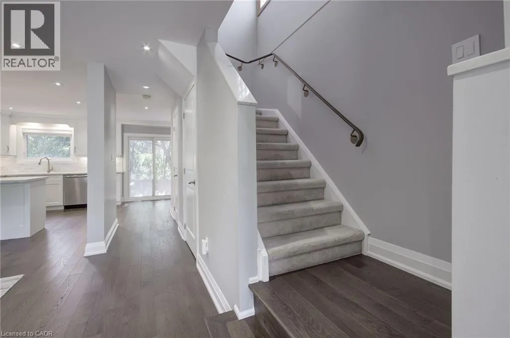 Towne Blvd./McDowell Ave./Ross Lane Private Pie Shaped Lot on a Quiet Cul-de-Sac in Sought after River Oaks- This Open Concept Semi Detached Home backs onto Crosstown Trail just steps to Munnâs Creek- Thoughtfully Updated Main Level features rich Oak Floors, pot lights, Neutral Designer Paint Colours, Upgraded European White Kitchen with Quartz Counters, Breakfast Bar, Pendant & Undermount Lighting, Stainless Steel Appliances, Backsplash & Sliders to the Fenced, Mature Backyard- Custom Patio, Stone Water Feature and gate to the Nature Trail- Convenient 2 Piece Powder Room- Spacious Bedrooms, Updated 4 piece Bathroom- Finished Rec Room, Workshop with a window & Potential to be a 4th Bedroom plus Storage Area/ Coldroom all complete the Lower Level- Oversized Driveway for 4 Cars- This in -demand North Oakville community features Top Rated Schools, the River Oaks Community Centre, Sixteen Mile Sports Complex, Nature Trails, shopping, restaurants, transit, plus easy access to all major highways (id:27476)