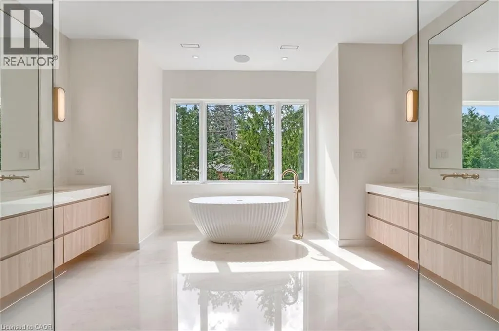 Third Line to Hixon to Tracina Drive This custom luxury residence is a masterclass in design, proportion, and craftsmanship. Every detail has been thoughtfully curated, creating a true statement of contemporary living. Offering over 6,000 sq ft of high-end living space, this home features 5 bedrooms, 6 bathrooms, a chef-inspired kitchen with bespoke cabinetry, an open-concept main floor designed for entertaining, and a fully finished lower level with theatre, gym, wine wall, and walk-up access to the outdoor living space. Perfectly designed for both family life and entertaining, the interiors combine functionality with elegance in every room. The home is set on a premium 90 x 128 lot in Oakville's coveted Coronation Park neighbourhood. Known for its estate properties, mature trees, and proximity to Lake Ontario, this community offers the best of Oakville living minutes to Bronte Village, Downtown Oakville, and top-rated private and public schools. The exterior is clad in timeless limestone with expansive windows, a wide private drive, and a 2-car garage. Professionally landscaped grounds include a covered outdoor living space with fireplace and grilling area, ideal for year-round entertaining. From the grand foyer to the backyard retreat, every element of this home has been designed to impress. (id:27476)