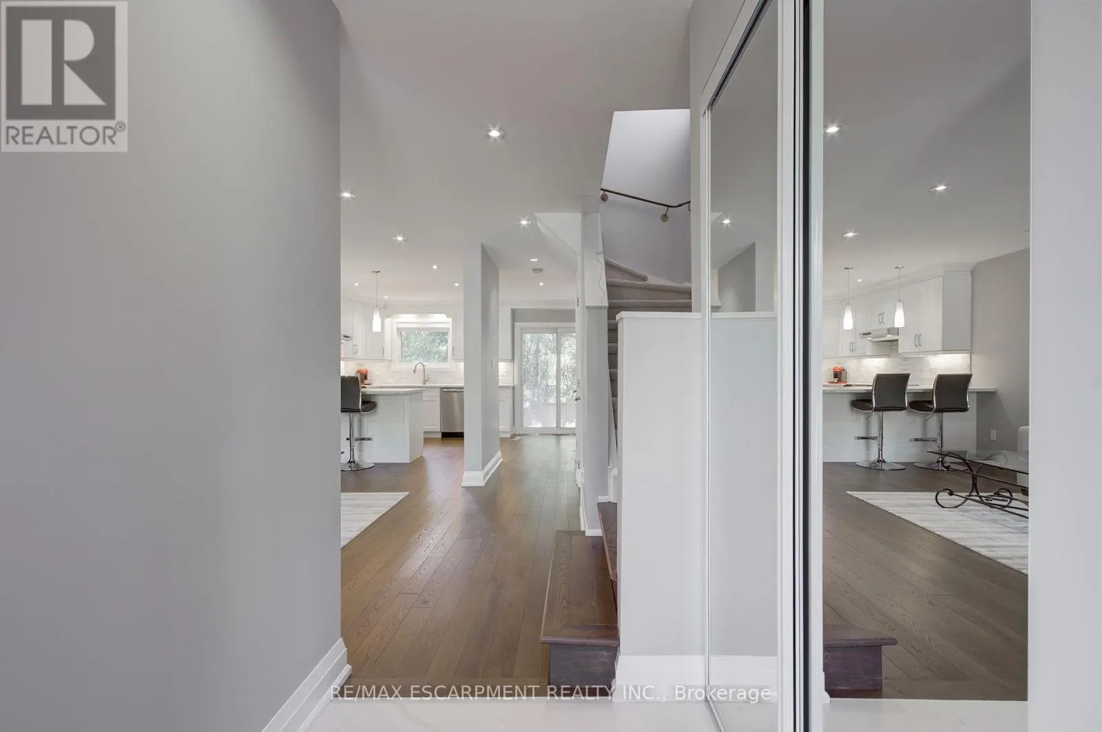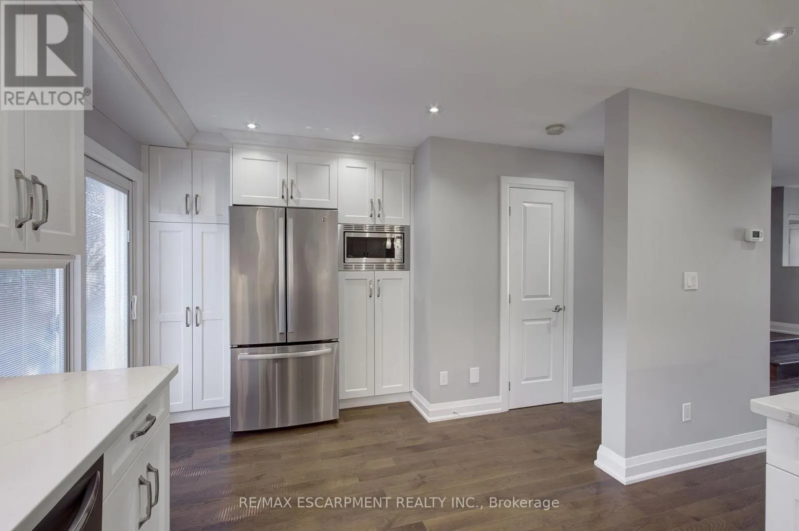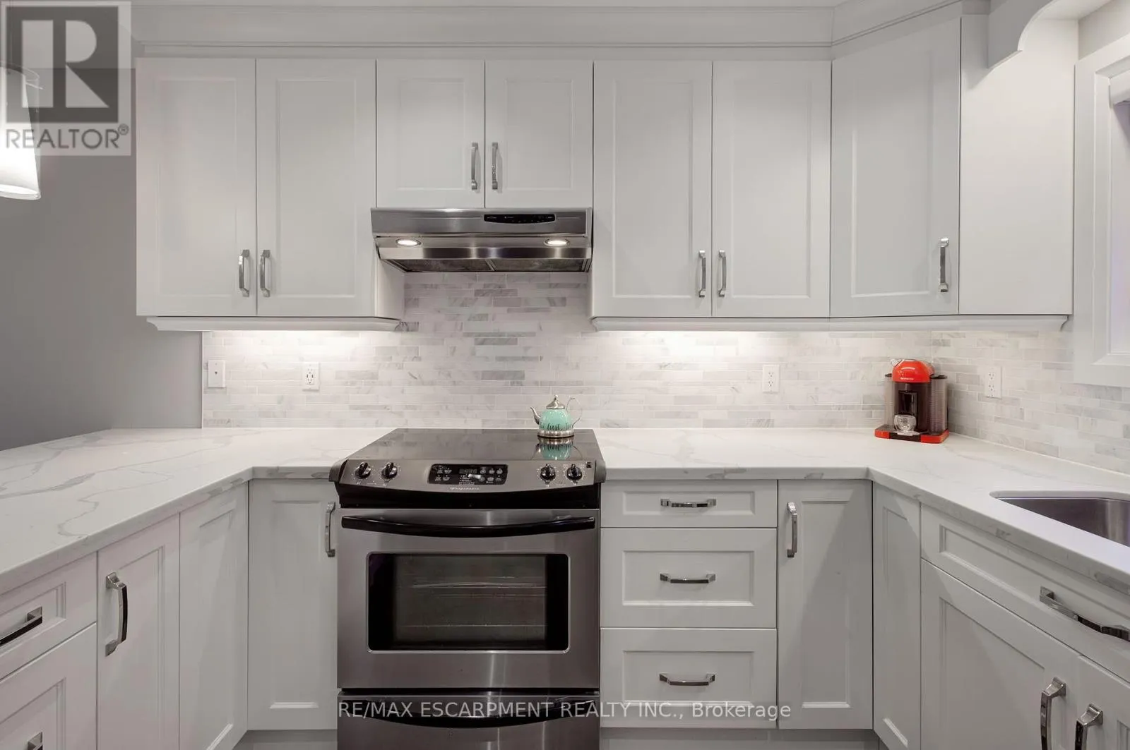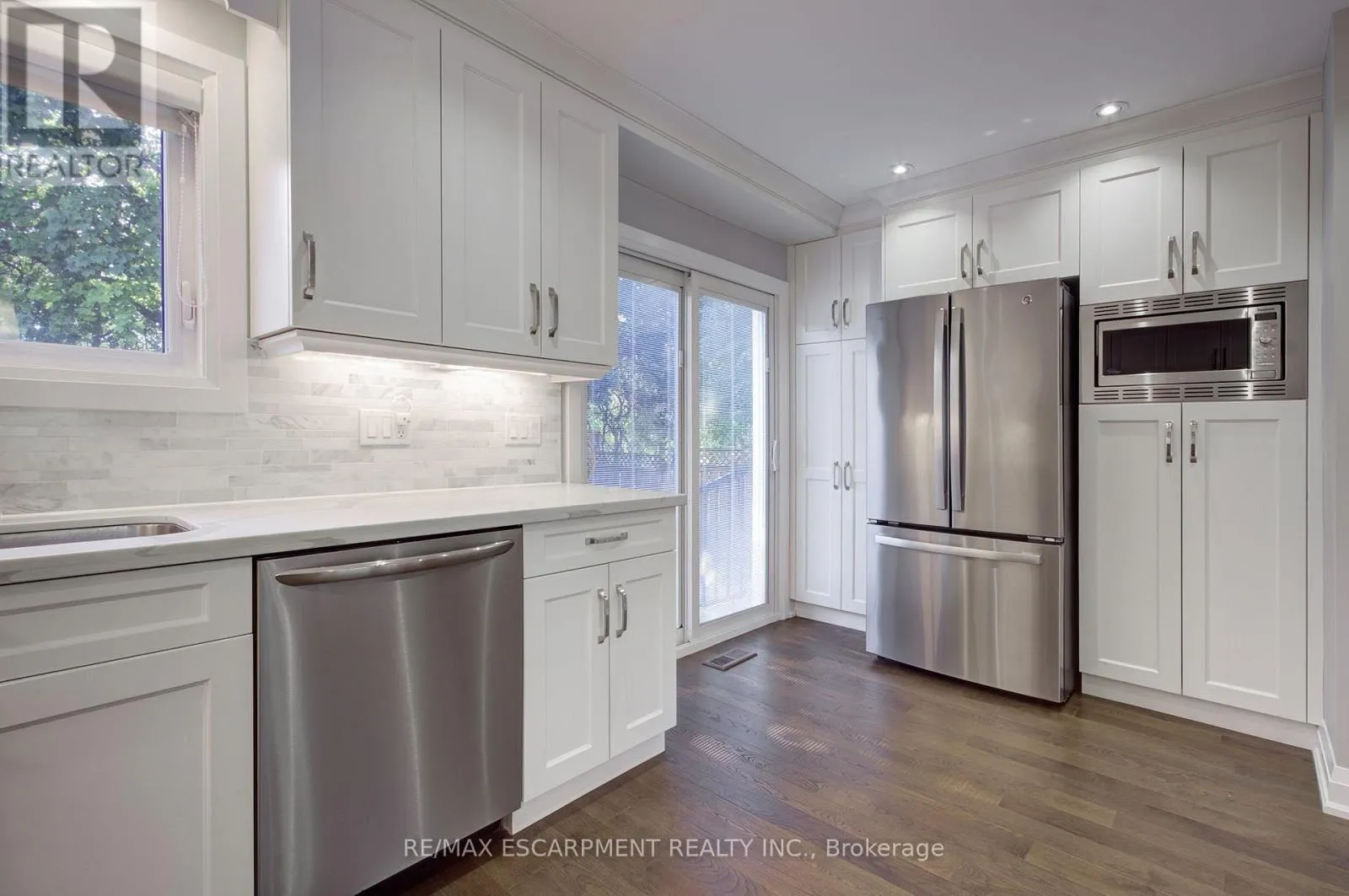 Cross Streets: Dundas/Towne. ** Directions: Towne/McDowell/Ross. Private Pie Shaped Lot on a Quiet Cul-de-Sac in Sought after River Oaks- This Open Concept Semi Detached Home backs onto Crosstown Trail just steps to Munns Creek- Thoughtfully Updated Main Level features rich Oak Floors, pot lights, Neutral Designer Paint Colours, Upgraded European White Kitchen with Quartz Counters, Breakfast Bar, Pendant & Undermount Lighting, Stainless Steel Appliances, Backsplash & Sliders to the Fenced, Mature Backyard- Custom Patio, Stone Water Feature and gate to the Nature Trail- Convenient 2 Piece Powder Room- Spacious Bedrooms, Updated 4 piece Bathroom- Finished Rec Room, Workshop with window & Potential to be a 4th Bedroom plus Coldroom/ Storage Area all complete the Lower Level- Oversized Driveway for 4 Cars- This in -demand North Oakville community features Top Rated Schools, the River Oaks Community Centre, Sixteen Mile Sports Complex, Nature Trails, shopping, restaurants, transit, plus easy access to all major highways (id:27476)