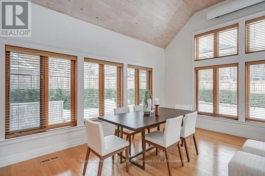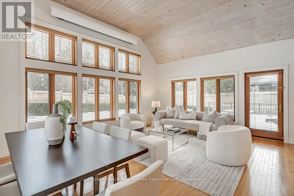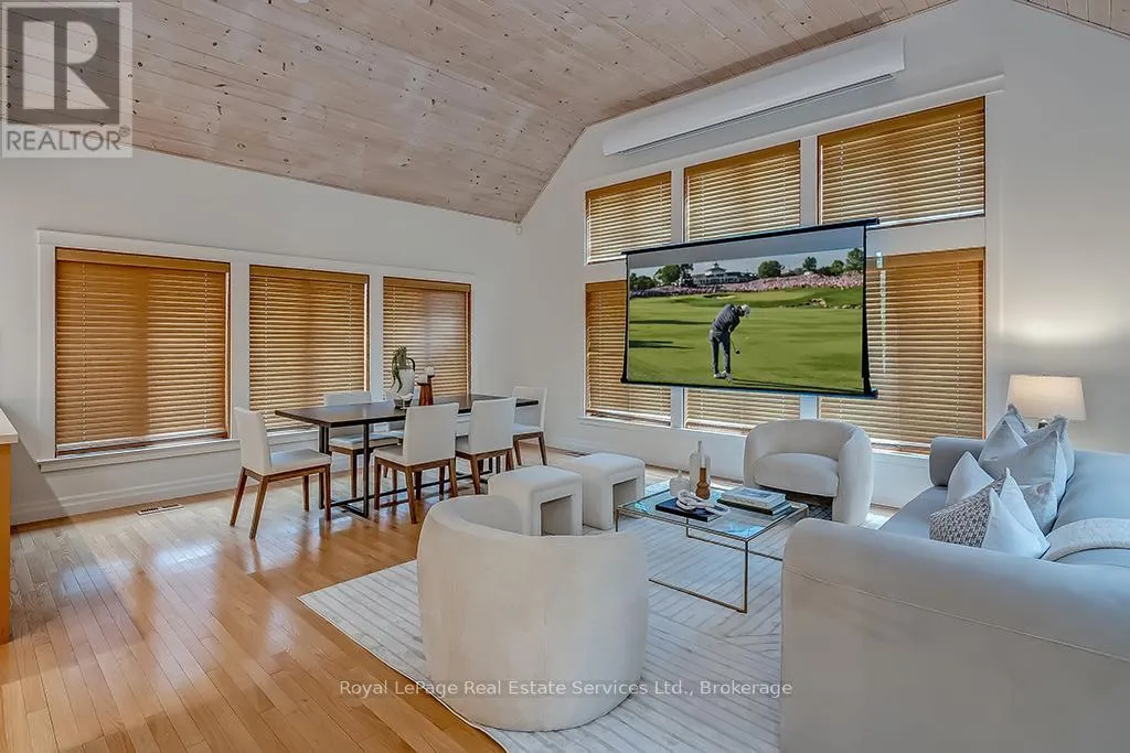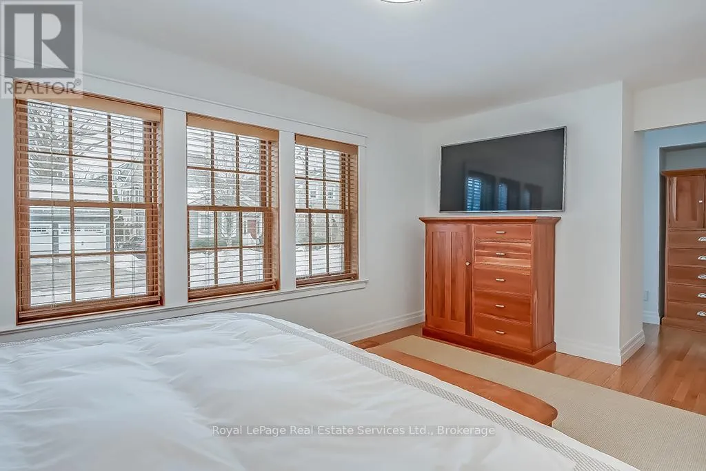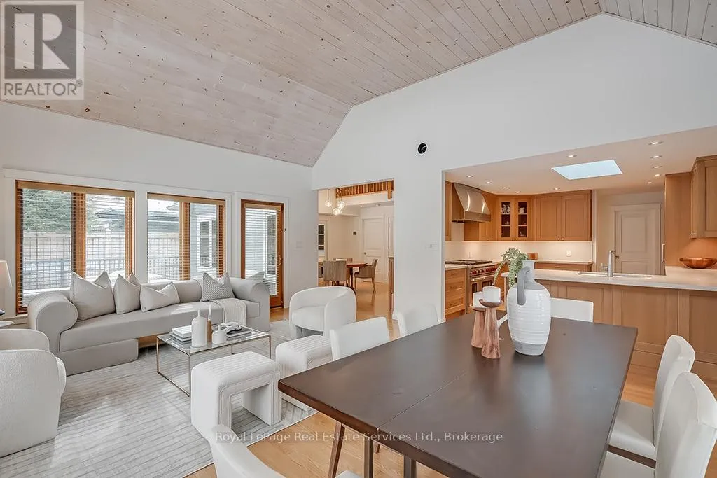 Allan St/Lakeshore Rd This beautiful turn-key residence offers the rare combination of contemporary finishes and conveniences all within steps of the Waterfront trail and Downtown Oakville. This beautifully maintained bungaloft-style residence with nearly 3000SF above-grade living space features a main floor Primary suite & main floor Laundry with the bonus of 2 additional bedrooms and bathrooms on the second floor. Gracious front entry hall with hardwood floors leads through to the Great Room and Kitchen. The top-of-the-line Downsview kitchen with quartz counters and slab backsplash,48" Wolf range, full height SubZero Fridge & separate set of Freezer Drawers, Miele Dishwasher. Breakfast bar overlooks the Great Room with massive vaulted ceiling encompassing an informal Family Room & Dining Area. The top-of-the-line windows and doors features electronic remote Hunter Douglas louvered blinds. This room can be transformed at night into at state-of-the-art movie room with retractable projection screen. Main floor Den/Office. Primary suite with walk-in closet and renovated ensuite Bathroom, dual sinks and large glass shower. Upstairs find a bright open concept reading nook, two large bedrooms and an additional 1 1/2 Bathrooms, offering excellent space for family and guests. The lower level is finished and is ideally suited for storage, recreation and/or hobby space. Attached garage with epoxy flooring and inside entry. Family Room walk-out to new composite deck overlooking the private, fully landscaped garden with in-ground pool. This impeccably designed and easy to maintain property is sure to impress. Don't Miss (id:27476)