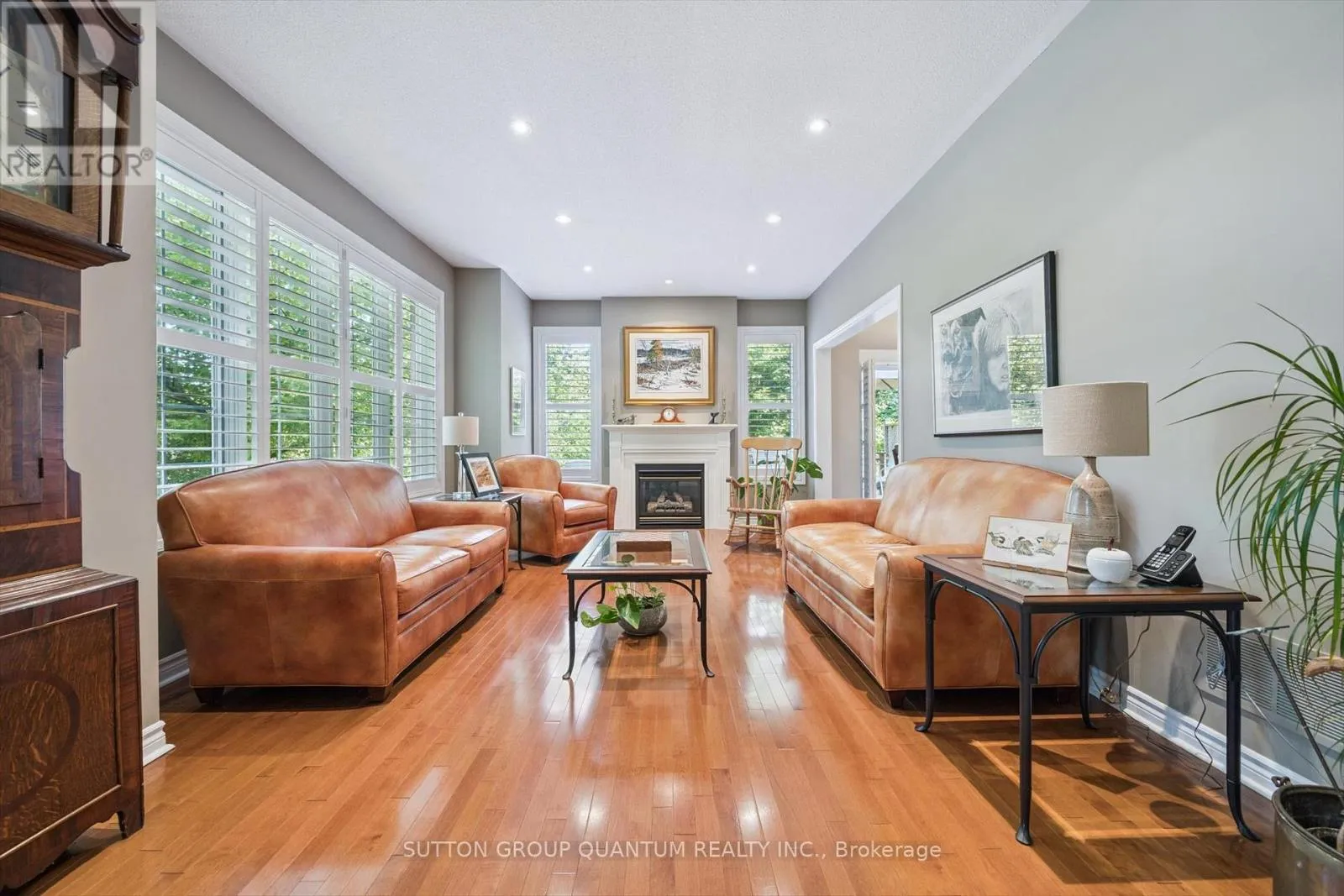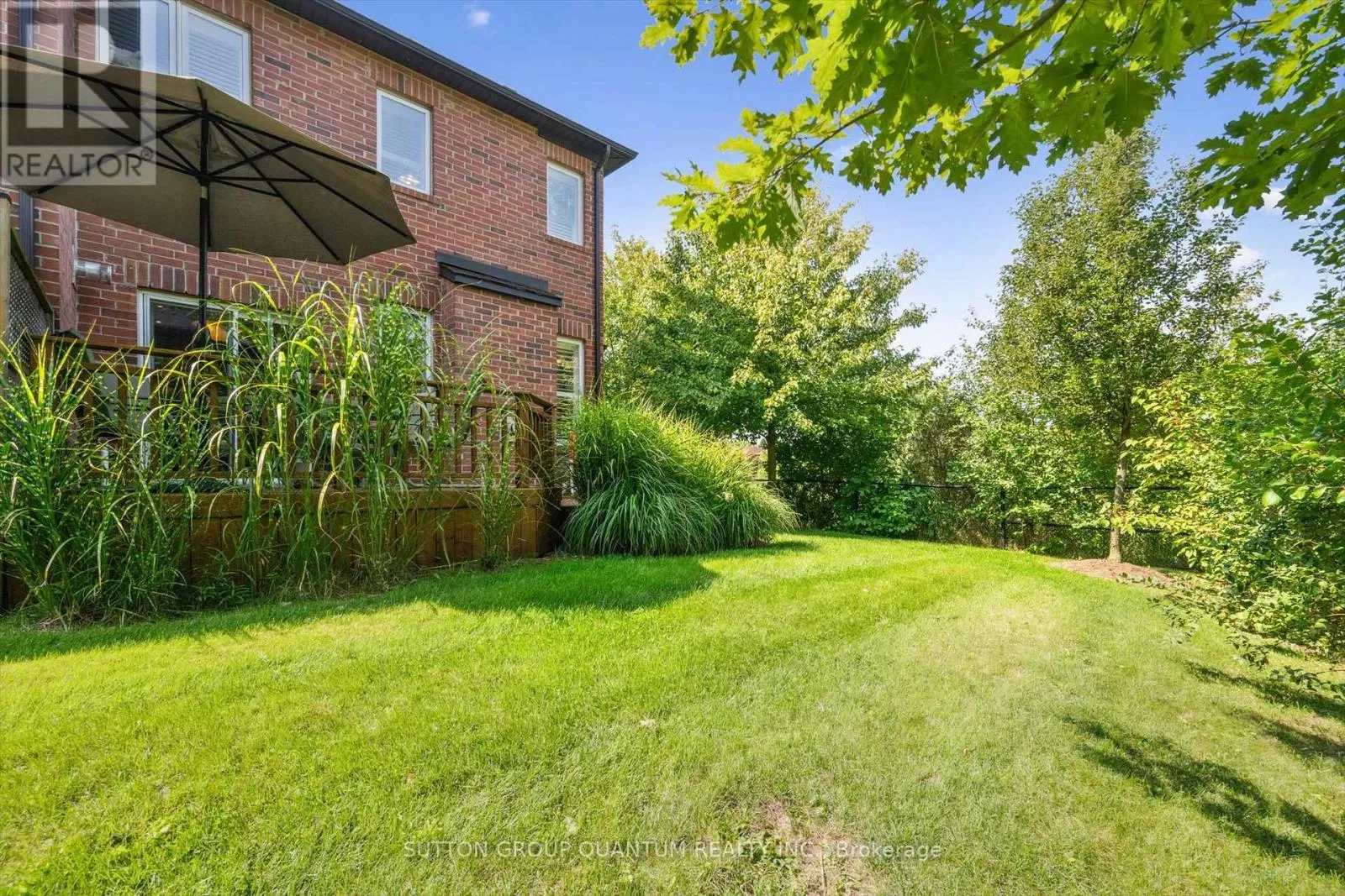 Cross Streets: Eigth Line and Woodridge Way. ** Directions: 8th Line to Woodridge Way, left on Pondview Place, left on Ravineview to end of The Brownstones Community. END UNIT LOCATION with a full 2 car garage in the Brownstones Luxury Townhome Community. With two large primary bedroooms, and an open concept office, this one of a kind condo townhome is a real gem, situated in this boutique complex built by Legendcreek homes. The Wedgewood Creek community features highly regarded schools, and this convenient Northeast Oakville location provides easy access to the QEW and 407 for commuting. This townhome is ideally situated fronting onto a tranquil pond and backing onto a lush ravine, and offers access to true natural beauty, ideal for walkers and dog walkers. A large living room filled extra-large picture windows gives view to lush greenery and seasonal views. Gleaming maple hardwood flooring, 9 ft. ceilings with potlights, California shutters, and a classic gas fireplace create warmth and coziness to this gathering space. The kitchen with upgraded maple cabinetry and breakfast room walks out to a new large private two-tier deck. The large 2 car garage with loads of storage shelving provides direct inside access to the main floor. There is a 2 piece powder room on the main floor. Upstairs are two spacious bedrooms, each with windows on all 3 sides of the room, walk in closets and ensuite bathrooms, creating two primary suites. The open concept office separates the bedrooms and the second floor laundry room with linen closet create added convenience. The basement is fully finished and includes a three piece washroom, making it suitable for an additional bedroom, media room, or multiuse space. Trails provide walkability to Iroquois Ridge HS and Community Centre with library and pool and shopping and highwway access a short drive away. Fantastic location! Dont miss your chance to live surrounded by nature in the highly sought after private complex, with all the modern conveniences offered with condominium living. The perfect choice for active downsizers. (id:27476)