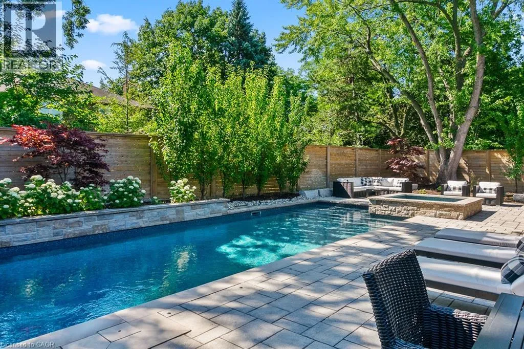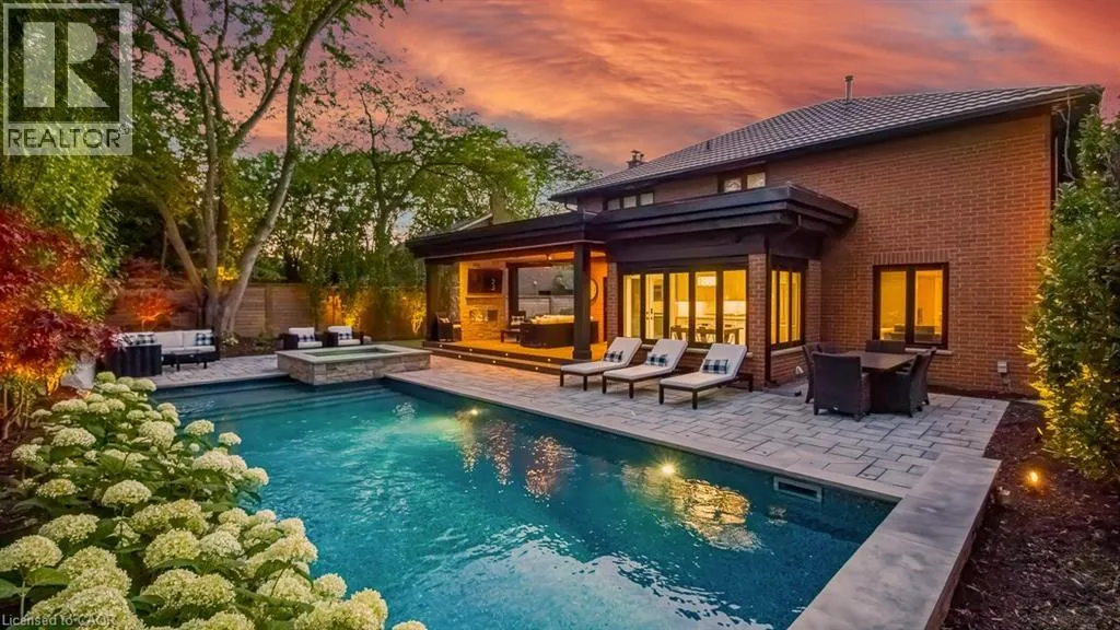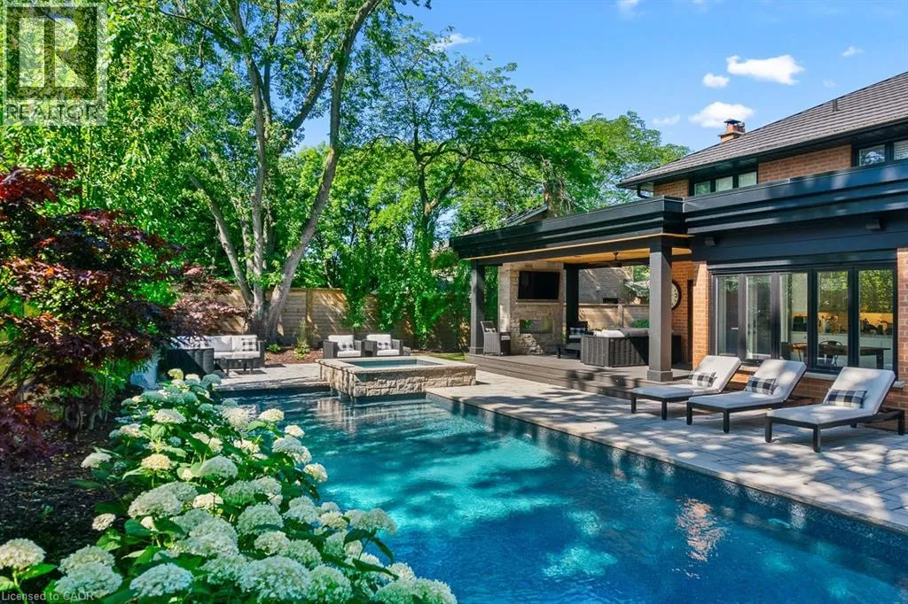 Ford Drive South of Cornwall to Aspen Forest. Welcome to beautiful 484 Aspen Forest Drive. This elegant 4+1 bedroom, 4 bathroom executive home has been meticulously updated top to bottom, and sits on a professionally landscaped lot in Oakville's prestigious Ford Eastlake neighborhood. The highlight of this home is the spectacular private backyard - your own slice of paradise featuring a saltwater pool alongside a covered lifetime deck with gas fireplace and outdoor TV, perfect for entertaining. The integrated hot tub, professional landscaping and inground irrigation, add the perfect finishing touch to this outdoor sanctuary. Step inside to discover a warm and inviting space, featuring an updated eat-in kitchen, that opens directly to your backyard paradise. Spacious dining and living areas, plus a main floor laundry room and walk-in access from the garage complete this level. Upstairs, the spacious primary bedroom suite includes a luxuriously renovated spa-like ensuite, three additional bedrooms and a beautifully updated main bathroom. The finished lower level adds incredible versatility with a sizable recreation room, 4 pc bath, and large bonus room - perfect as home office, fitness space, or fifth bedroom. Located in the coveted Ford Eastlake community, you'll enjoy proximity to top-ranked schools, beautiful parks and ravine trails, convenient transit connections, and access to Oakville's premium downtown shopping area. From the stunning backyard oasis to comprehensive interior updates on every level, this move-in ready gem delivers style, functionality, and prime location ready for you to make your own dreams come true and create lasting memories from day one. (id:27476)