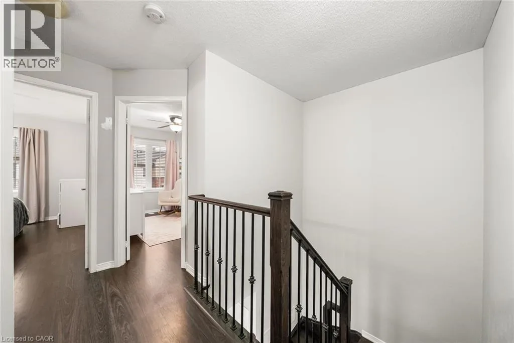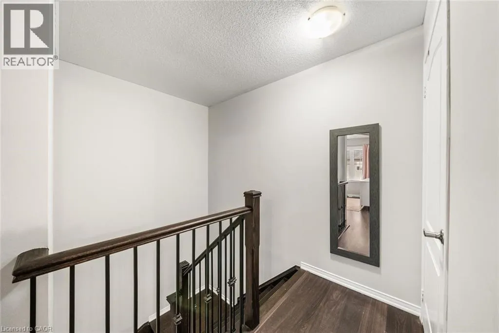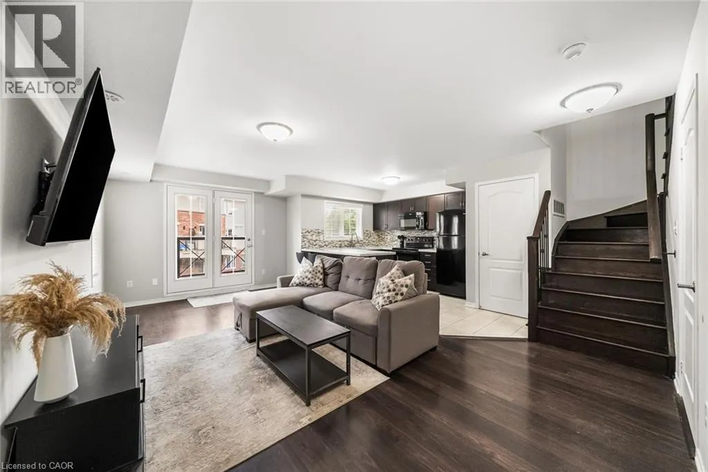 Dundas St E/Sixth Line Welcome to this bright and inviting corner-unit townhouse condominium in the highly sought-after River Oaks community. With the privilege of four extra windows, the home is filled with natural light and a warm, airy feel. Surrounded by parks, nature trails, and top-rated schools, it offers the perfect blend of comfort and convenience. Inside, youâll find a spacious family room open to the kitchen, creating a seamless flow for everyday living and casual entertaining. A walk-out leads to a generous terraceâperfect for enjoying morning coffee or relaxing outdoors. The main floor also features a convenient powder room. Upstairs, there is a laundry room and two well-sized bedrooms that share a full bath making the layout practical and cozy. This beautifully appointed home also includes one owned parking spot and an owned locker unit, adding ease and value. A thoughtfully designed retreat in one of Oakvilleâs most desirable neighbourhoods, this corner townhouse is a truly special find. (id:27476)