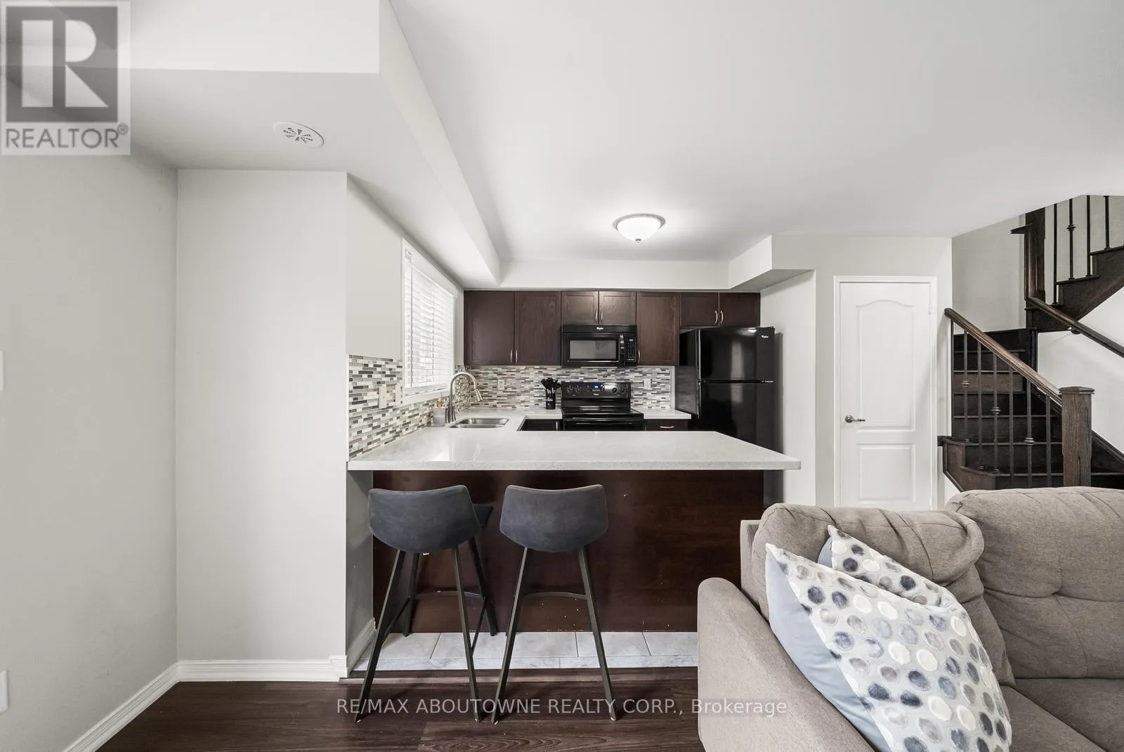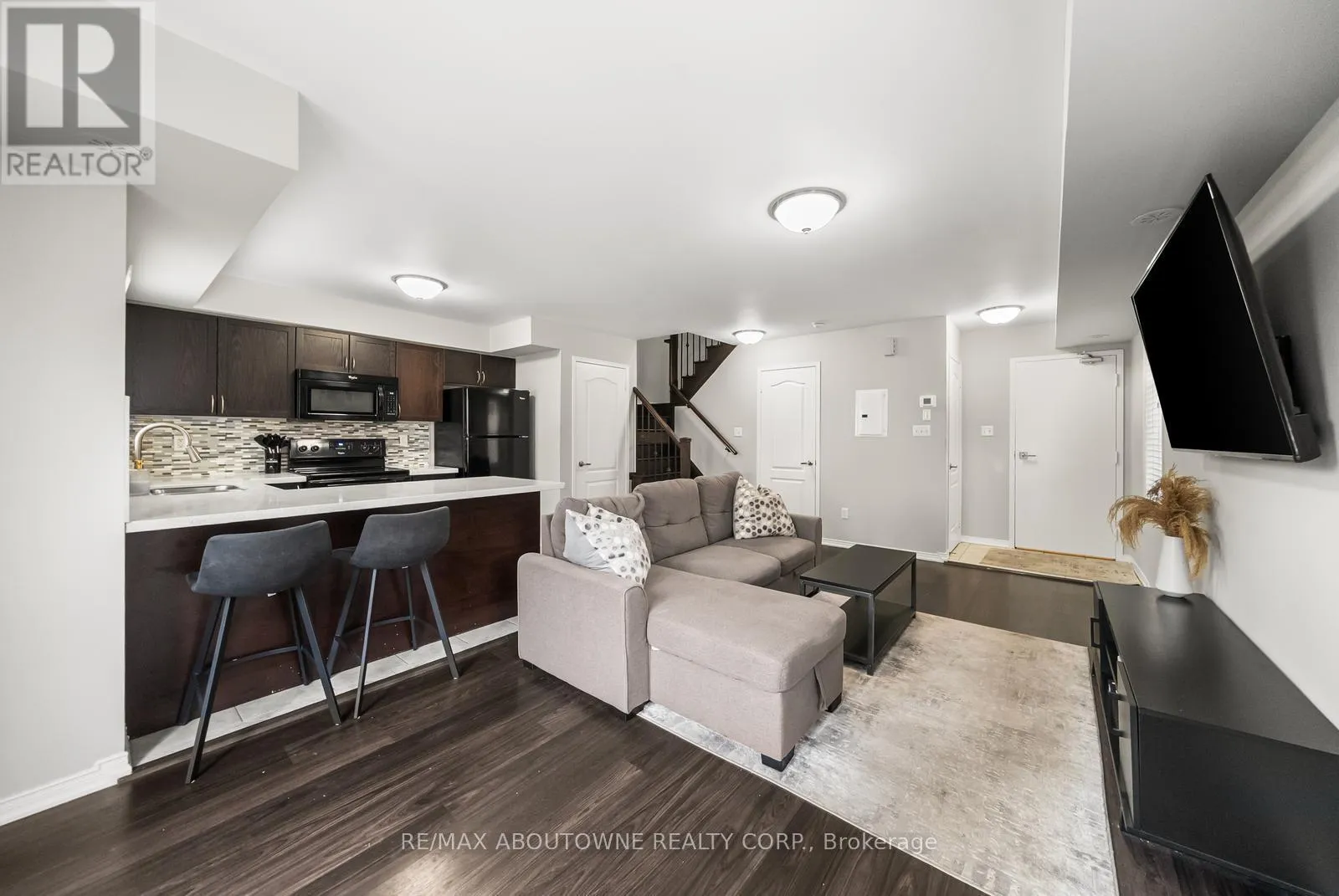 Sixth Line/Dundas Welcome to this bright and inviting corner-unit townhouse condominium in the highly sought-after River Oaks community. With the privilege of four extra windows, the home is filled with natural light and a warm, airy feel. Surrounded by parks, nature trails, and top-rated schools, it offers the perfect blend of comfort and convenience. Inside, you'll find a spacious family room open to the kitchen, creating a seamless flow for everyday living and casual entertaining. A walk-out leads to a generous terrace perfect for enjoying morning coffee or relaxing outdoors. The main floor also features a convenient powder room. Upstairs, there is a laundry room and two well-sized bedrooms that share a full bath making the layout practical and cozy. This beautifully appointed home also includes one owned parking spot and an owned locker unit, adding ease and value. A thoughtfully designed retreat in one of Oakville's most desirable neighbourhoods, this corner townhouse is a truly specialfind. (id:27476)