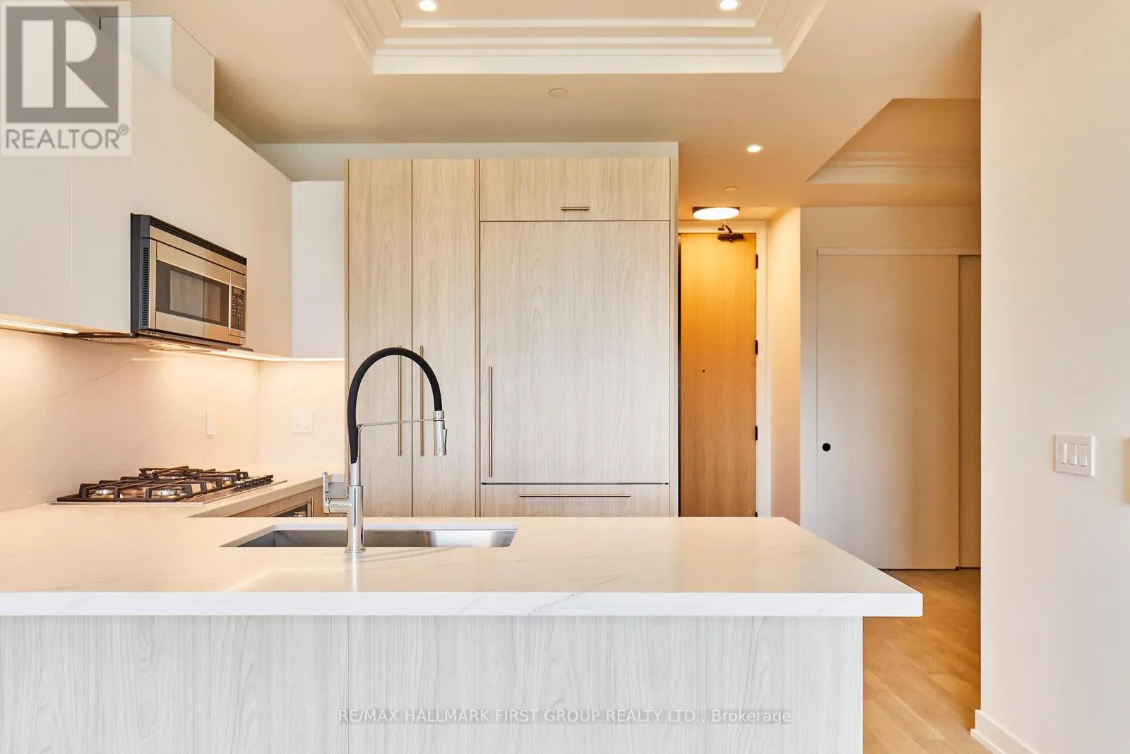 Cross Streets: Dorval Dr./Lakeshore Rd. W. ** Directions: right onto Maurice dr when heading west on lakeshore rd W. Welcome to 123 Maurice Drive, a brand-new, never-lived-in penthouse nestled in the heart of Downtown Oakville in the exclusive boutique residence, The Berkshire. This thoughtfully designed suite offers 1 spacious bedroom plus a formal dining room that easily converts to a second bedroom or home office, making it as versatile as it is elegant. With soaring 10-foot ceilings, pot lights throughout, and a sleek open-concept layout, the space feels bright, modern, and airy. The designer kitchen is a chefs dream, featuring quartz countertops, a gas countertop range, integrated appliances, and ample storage - all perfect for both everyday living and entertaining. The primary suite includes a luxurious 4-piece ensuite bathroom, complemented by an additional 2-piece powder room for guests. Every detail has been curated for comfort and convenience, and the unit comes fully turnkey furnished, with the option to purchase unfurnished if preferred. Enjoy the added convenience of underground parking, a storage locker, and premium building amenities including a party room, fitness centre, and concierge service. Located just a 7-minute walk to the vibrant shops, cafés, and waterfront of Downtown Oakville, and mere steps from Fantinos Supermarket, everything you need is right at your doorstep. Commuters will appreciate the quick access to the QEW, 403, and GO Transit, making travel throughout the GTA seamless. This is a rare opportunity to own a penthouse in one of Oakville's most desirable and walkable neighbourhoods. Perfect for professionals, downsizers, or those looking for an upscale pied-à -terre. Don't miss your chance to experience boutique luxury living in Oakvilles coveted core. (id:27476)