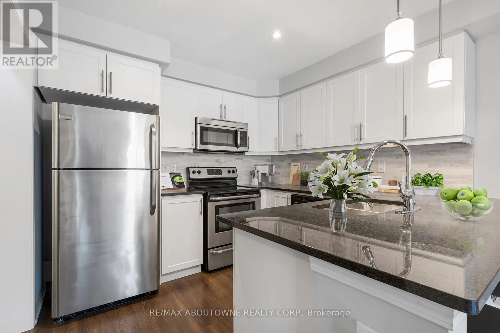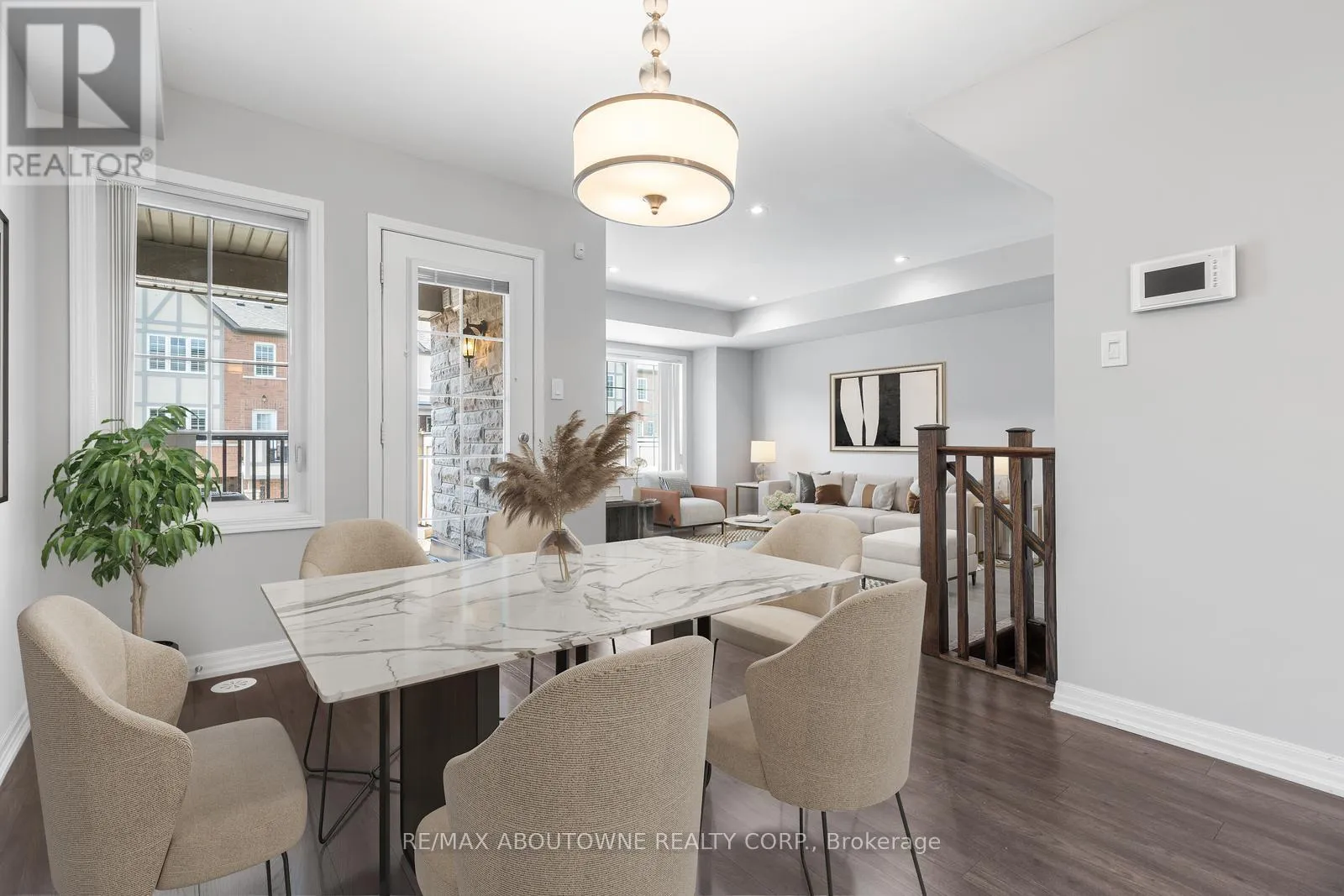 Dundas and the Preserve Welcome to this exceptional three-storey freehold townhouse in Oakville's prestigious Preserve neighbourhood, where elegance meets everyday functionality. This meticulously maintained townhouse offers three spacious bedrooms, 2.5 bathrooms, and a versatile main-floor office ideal for remote work, a study space, or a cozy reading retreat. The second level boasts a sun-filled, thoughtfully designed layout featuring distinct living and dining areas, along with a chef-inspired kitchen appointed with granite countertops, a stylish backsplash, and premium stainless steel appliances. Step out onto the open balcony, perfect for barbecues or simply enjoying the fresh air. On the upper level, the generous primary bedroom impresses with a walk-in closet, full bathroom and abundant natural light. Two additional bedrooms and a full bathroom provide comfort and privacy for family or guests. A single-car garage with inside entry ensures convenience year-round. Perfectly tailored for modern living, this home is steps from parks, Oodenawi Public School, and top-rated schools, as well as the scenic trails of Glenorchy Conservation Area. Enjoy close proximity to the Sixteen Mile Sports Complex, library, community centre, and a variety of shopping and dining destinations, including Fortinos, Superstore, and more.**Some photos have been virtually staged** (id:27476)