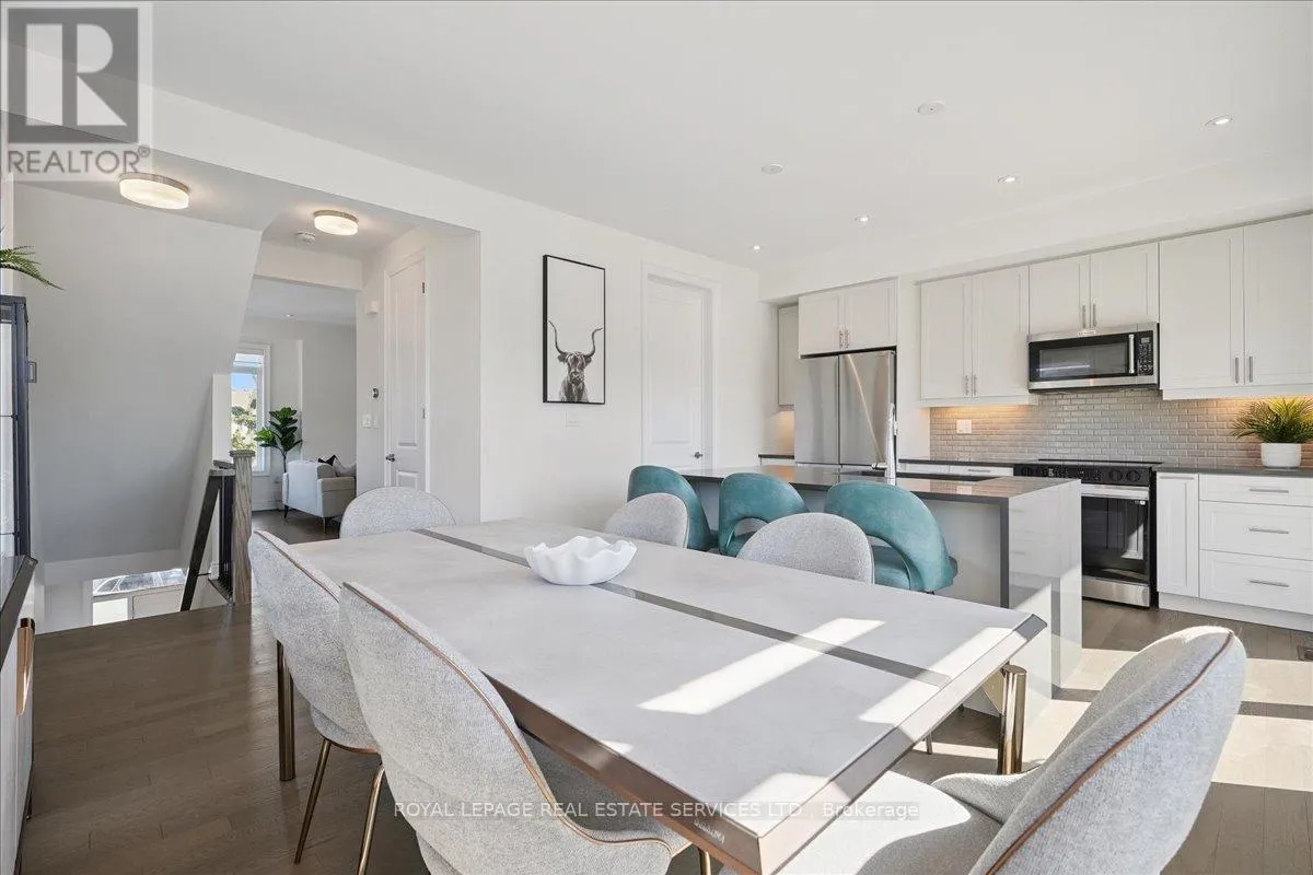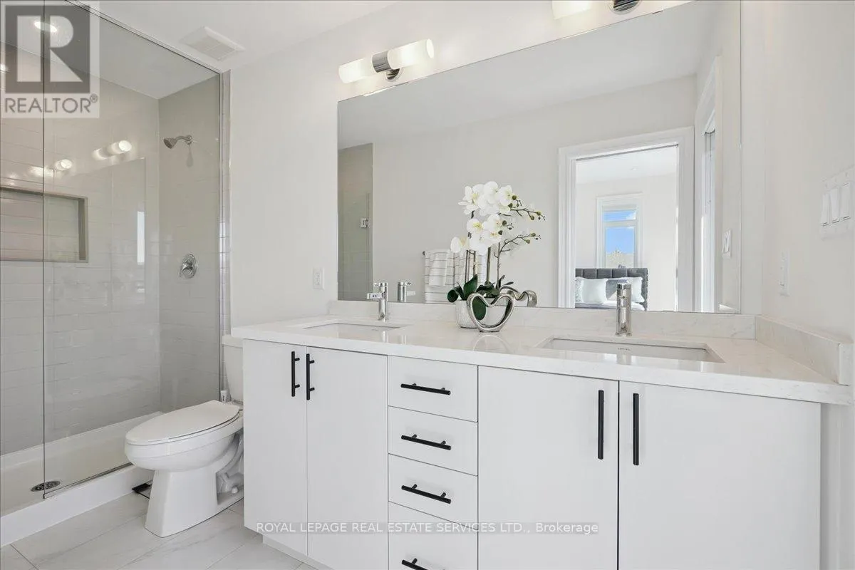 Cross Streets: Westoak Trails/Third Line. ** Directions: Third Line/Westoak Trails/ Postmaster. Executive end-unit townhome with double car garage, offering 1,885 sq. ft. of beautifully finished living space plus finished basement! This rare under 1 year NEW West Oak Trails features 4+1 bedrooms and 4.5 bathrooms, designed for both comfort and style. Superior upgrades include decadent oak hardwood floors, LED pot lights, 9 smooth ceilings & 8 ft doorways. The ground level offers a spacious bedroom with private 4-piece ensuite, plus plenty of storage and direct access to the garage. Access second level via hardwood stairs with iron pickets. This level features stunning modern kitchen with extended white cabinetry, 4 stainless steel appliances, pots and pans drawers, spice rack, under valence lighting, quartz counters, and a massive island & breakfast bar with a waterfall quartz countertop. Sliding doors open to a large balcony perfect for lounging, dining, and BBQs. Spacious dining area, living room with custom shelving and sleek electric fireplace, a 2-piece powder room, and a convenient laundry room/ pantry. Upstairs, the primary suite showcases a generous walk-in closet and spa-inspired 4-piece bathroom with double sinks, quartz counters, and a glass-enclosed shower. Two additional bedrooms share a 4pc main bath with a soaker tub. The finished basement extends the living space with a 3-piece bath featuring quartz counters, tile flooring, and a glass-enclosed shower. This home delivers the perfect balance for both family function and luxury, set in an unbeatable Westoak Trails location surrounded by top-rated schools, scenic parks, trails, and just minutes from Oakville Trafalgar Hospital. This is a MUST SEE! (id:27476)