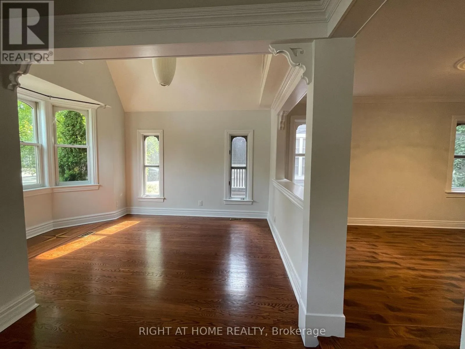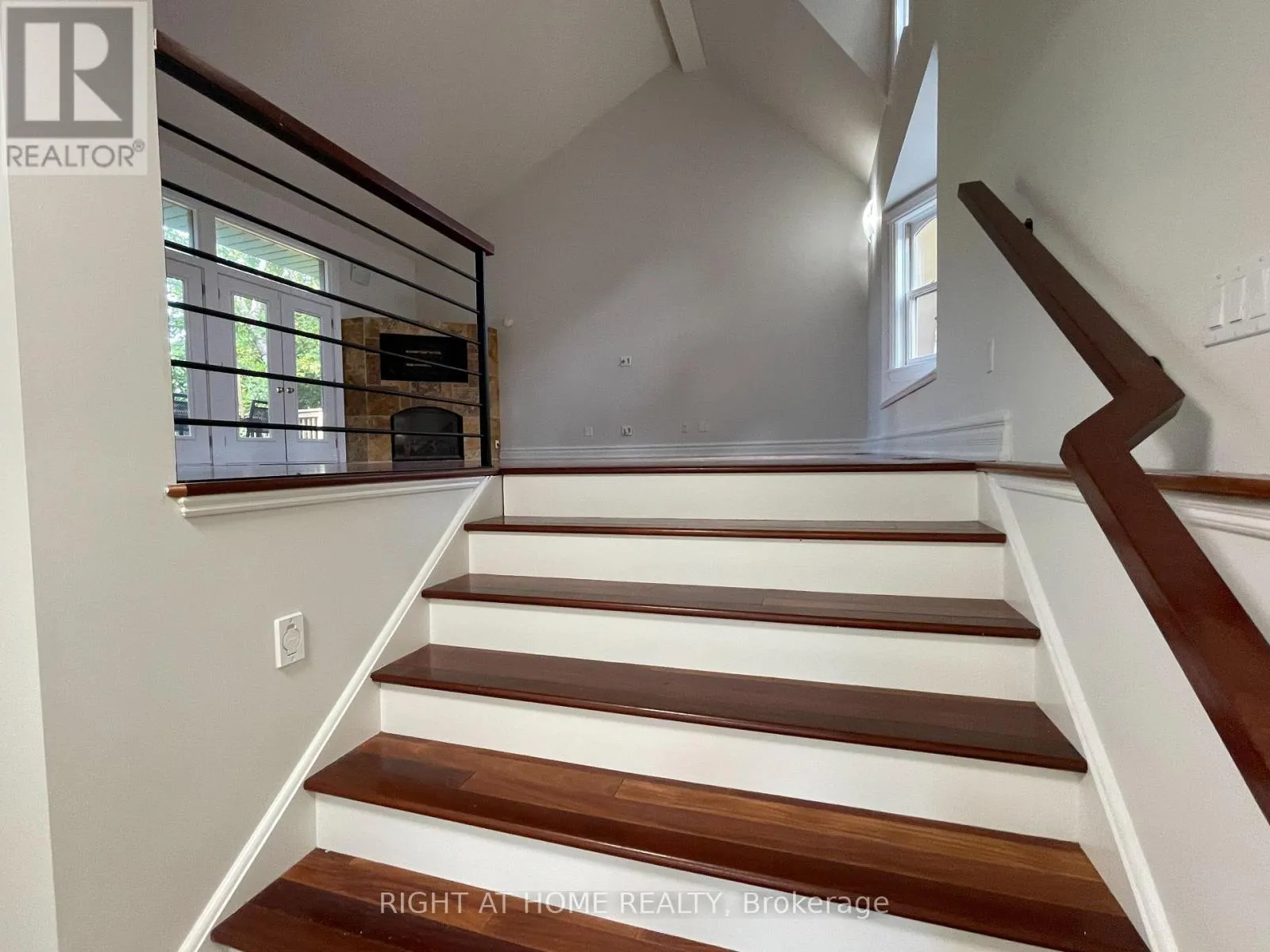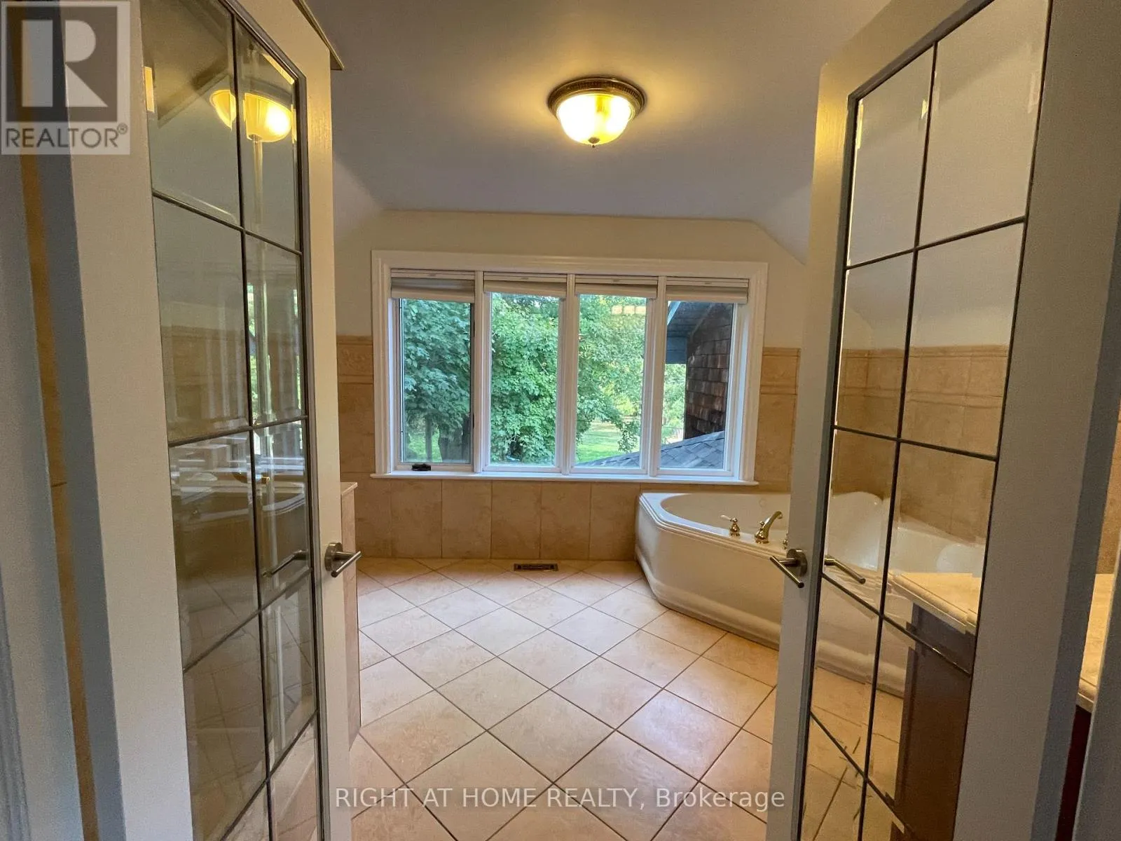 Cornwall/ Watson Stunning 4,000+ sq. ft. home is nestled on a picturesque tree-lined street in the heart of charming Old Oakville, just a short walk to the vibrant town centre and GO Transit, with easy access to highways, top schools, and the hospital. Set on an extraordinary 350-ft deep ravine lot, it features 5 bedrooms and 4 bathrooms, including a spacious main floor guest or in-law suite with a luxurious ensuite and private living area. The home boasts a massive great room addition with soaring 18-ft vaulted ceilings and French doors leading to a large second-story deck, a walk-out basement with two separate entrances, and a bright, oversized kitchen open to the family room. Recently updated with new LED lighting and fresh paint throughout, this property offers both elegance and comfort. Great place to call home. (id:27476)