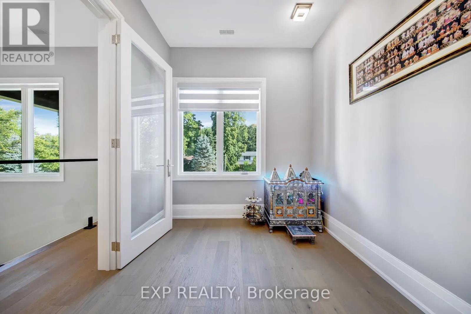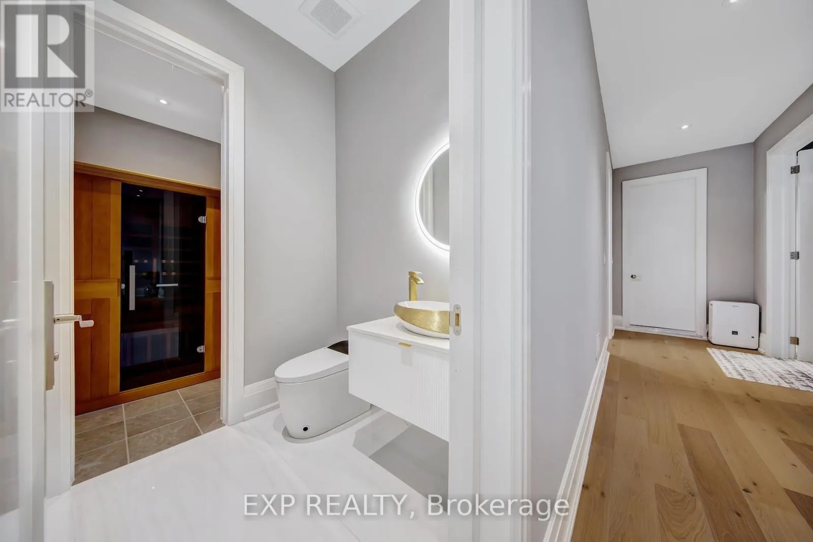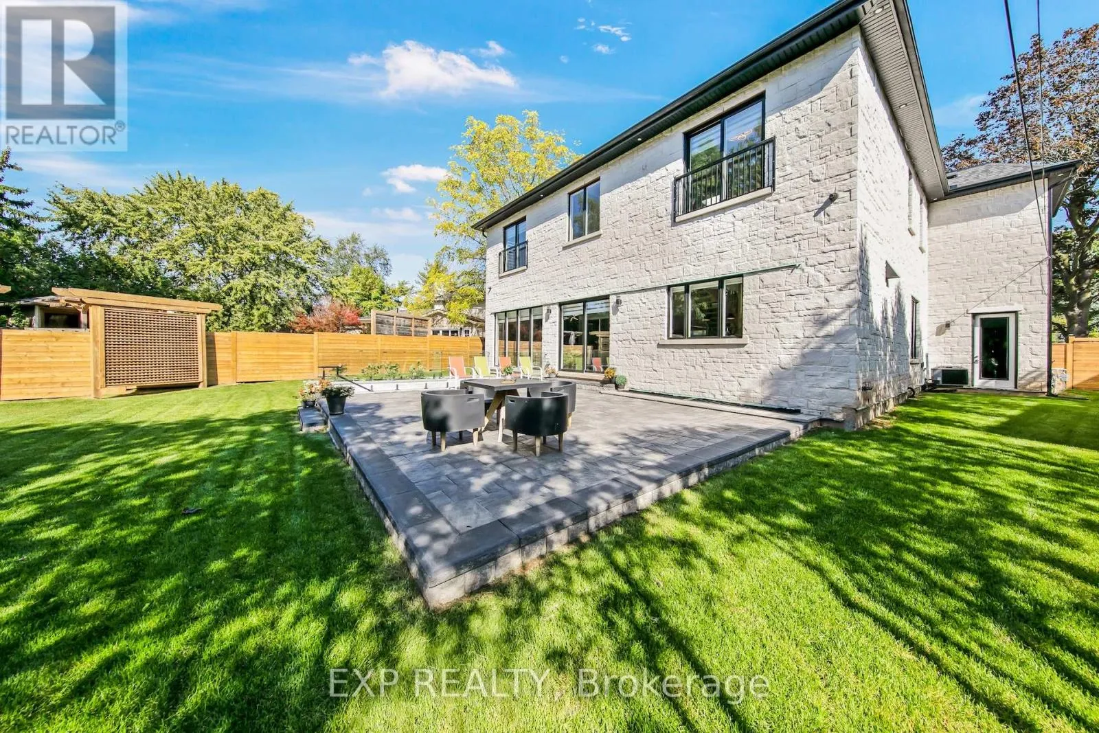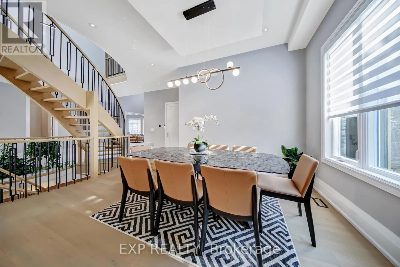 Cross Streets: LAKESHORE RD WEST TO WOLFDALE AVE. ** Directions: LAKESHORE RD WEST /WOLFDALE AVE. Welcome to 150 Wolfdale Avenue. Entertainers dream home, built by Ambassador Fine Custom Homes in 2023 fall, on a 0.36 acres in Southwest Oakville, south of Lakeshore Road. With 7276 square feet of living space on all three levels, this home perfectly combines sophisticated luxurious design with quality construction to create the ultimate package. The main floor is beautifully designed with exquisite detail radiant heated large porcelain tiles. The near 11-foot ceilings provide an open-airy feeling throughout. No estate home would be complete without a grand foyer and and this home has just that with 22 -foot ceilings, center of the house with 24-foot ceilings with large skylight allowing the entire house to be flooded with natural light while also highlighting the stunning hanging circular staircase beneath. Built-in wine cellar storage for over 180 bottles. The kitchen is a show piece with stunning 10-foot waterfall island, quartz slab backsplash and two-toned cabinetry and top-of-the-line Wolf ,Sub-Zero & Miele appliances. The kitchen/great room combination is designed for large scale entertaining with it being open concept to the dining room. A tucked away mud room, walk in closet with custom shelving & an elegant custom powder room are the perfect spaces to keep your family organized while providing inside access to both the garage and rear yard. Main floor you find your primary home office with front yard views. Elevator besides mud area travels all 3 floors for convenience of movement. The upper hallway stops you with a beautifully vaulted ceiling, skylights. Primary bedroom is located across the rear of the home taking in the best views of the backyard with ample natural light. The open concept walk-in closet with a skylight complements the primary ensuite, is a beautiful combination of rich tones to create the ultimate spa oasis. 3 additional bedrooms, Laundry & Library are found upstairs, each one uniquely decorated & appointed with closets and ensuites. (id:27476)