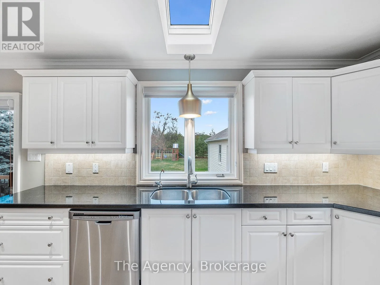 Dorval Drive / Margaret Drive Welcome to 253 Margaret Drive. An exceptional bungalow for sale in desirable Central Oakville on a premium 180' deep lot. This wonderful single level home features an impressive 3,588 sq ft of finished living space, 3 bedrooms, 3 bathrooms, an open concept kitchen/family room addition, gourmet kitchen with granite countertops, stainless steel appliances, center island, skylight, natural gas fireplace, crown moldings, smooth ceilings, an abundance of pot lights, and oak hardwood flooring. The master bedroom features a private ensuite bath with marble countertop and heated floors. The main floor also offers 2 additional bedrooms, a 4pc main bath with marble countertop, heated floors and a skylight allowing great natural light, a separate living room and dining room. The lower level offers a generous sized space with large rec room, separate kitchen, 3 piece bath, separate laundry and a separate entrance. A perfect in-law suite or income generator! The exterior of the home features a beautiful front covered porch, large driveway and a detached heated and finished garage that is perfect for a workshop, gym, office or storage space. Walk to downtown! (id:27476)