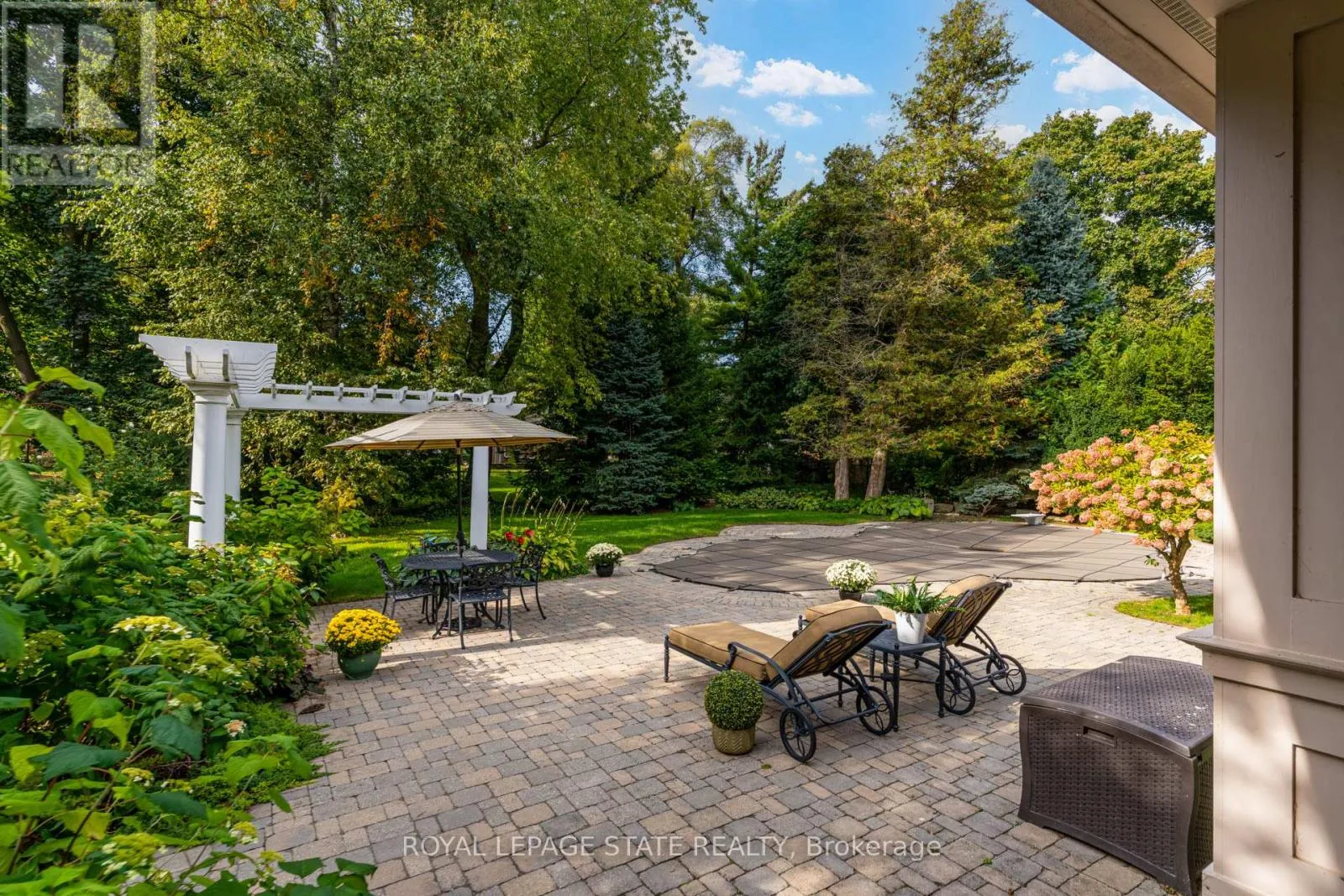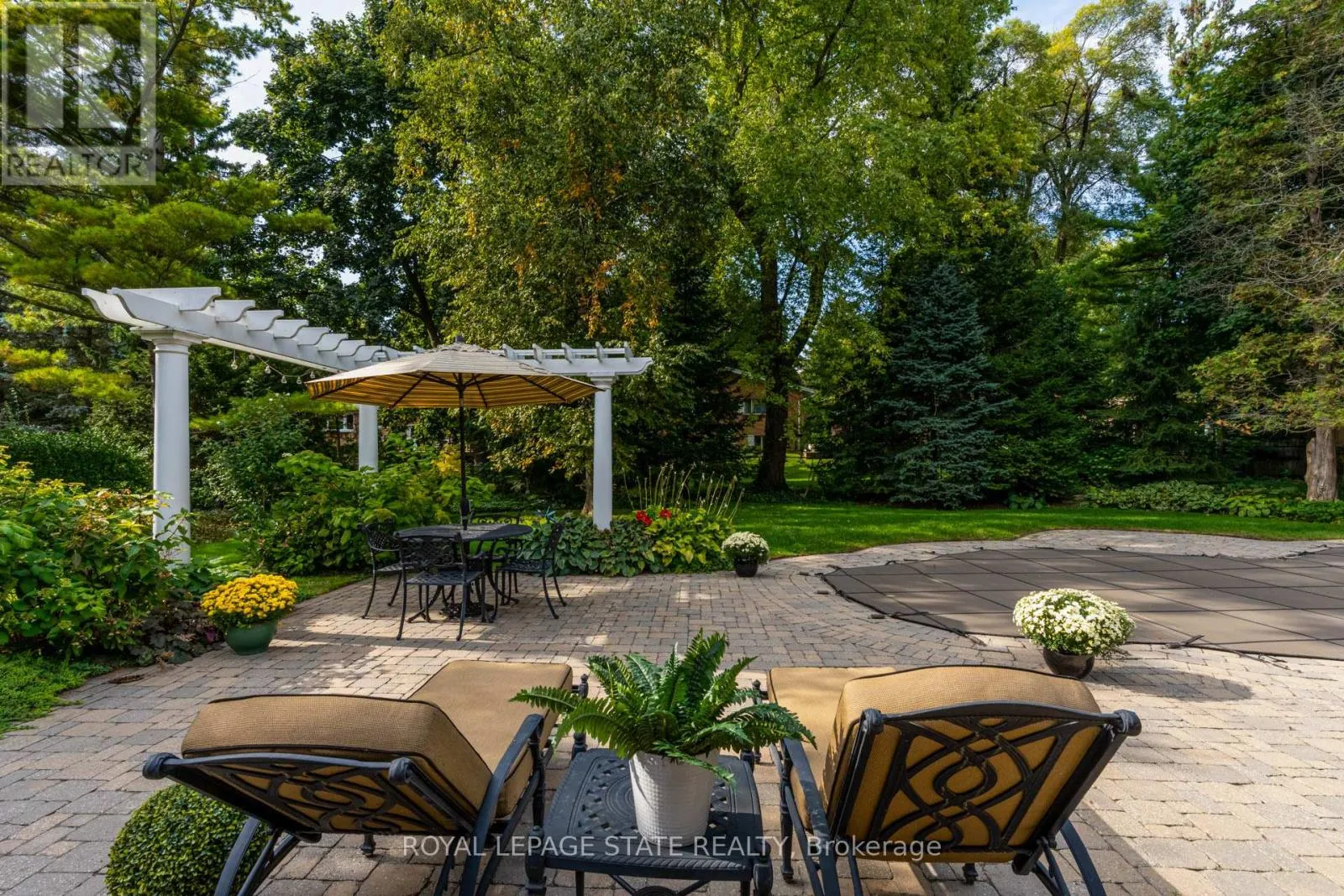 East on Ardleigh Rd from Maple Grove Dr Residing on a mature, landscaped lot in Oakville with tree-lined streets creates a gorgeous setting for this lovely 3+1 bedroom bungalow where there are green views from every window. This home provides both a private, tranquil setting and great entertaining spaces. There is a covered porch off the back of the house where views of trees and greenery can be enjoyed. A large, stone patio area hosts an L-shaped pergola framing a sitting or dining area and surrounds the in-ground pool. Centrally located within highly desirable, prestigious Eastlake community of southeast Oakville, this location makes it ideal for accessing both the lake and the area's top amenities and schools. The large, gourmet kitchen has an island breakfast bar and a large window with a view of a Japanese Maple tree. Three bay windows offer a warm, inviting ambience; two in bedrooms and one in the dining room. The basement has in-law suite potential as there is a storage area under the kitchen that sides onto the bathroom, and there is separate entrance potential. Situated close to the town's most valuable amenities, there is top-tier education, lakeside leisure with green spaces and close proximity to the waterfront including Gairloch Gardens and scenic Lake Ontario trails. For convenience and community, enjoy a short drive to vibrant shops, gourmet restaurants, and cultural attractions of historic downtown Oakville. Maple Grove Village offers excellent shopping and services. Come and see all that this area and home have to offer! (id:27476)