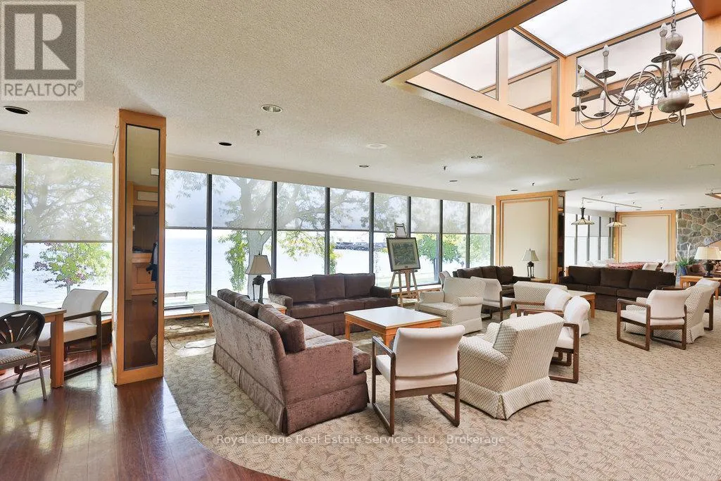 East St / Marine Dr Welcome to luxury lakeside living in the heart of Bronte Village. This stunning 1830 sq ft condo offers a rare opportunity to enjoy breathtaking, unobstructed views of Lake Ontario and the Toronto skyline through floor-to-ceiling windows that fill the space with natural light. The spacious open-concept layout features a large eat-in kitchen, formal dining area, separate office/den, and a bright solarium - perfect for relaxing. The primary suite includes two double closets and a full 4-piece ensuite bath. The Ennisclare community enjoys access to exceptional resort-style amenities including an indoor pool and hot tub, sauna, fitness centre with organized activities, tennis and squash courts, games room, golf practice area, billiards, library, media room, woodworking and art studios, a party room with kitchen, a lakefront clubhouse, car wash, and 24-hour security. Set amid beautifully landscaped grounds with scenic walking trails along the lake, this exceptional condo is just steps from Bronte Harbour, the marina, waterfront parks, boutique shops and fine dining. (id:27476)