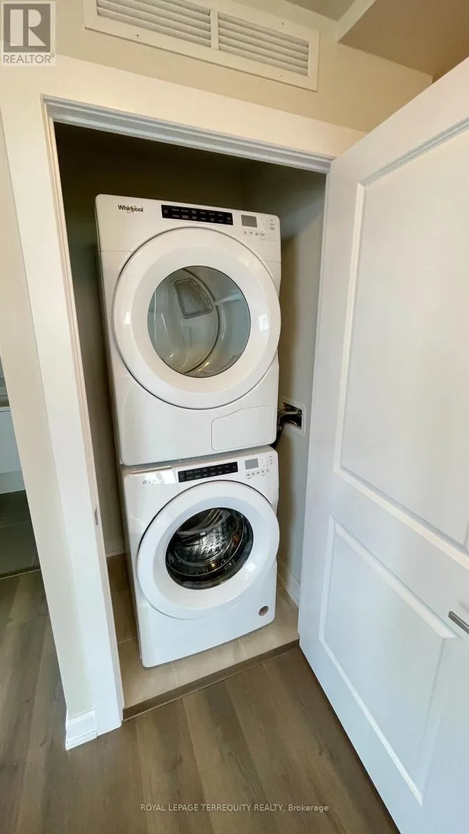 Cross Streets: Trafalgar & Dundas. ** Directions: Head North on Dundas & East On Threshing Mills Blvd. Exceptional Corner Suite at Upper West Side Condos by Branthaven Joshua Meadows. Step into contemporary elegance with this bright and spacious 960 sq. ft. corner unit, thoughtfully designed for modern living. Located in the highly sought-after Upper West Side Condos, this 2-bedroom, 2-bathroom residence offers a rare combination of functionality, style, and comfort. This open-concept suite features 9-foot ceilings, large South East facing windows that flood the space with natural light, and a private balcony, perfect for relaxing or entertaining. The timeless white kitchen boasts generous cabinetry, stainless steel appliances, and a sleek, modern aesthetic that complements any décor. Full-sized in-suite laundry adds everyday convenience. Equipped with SmartONE home technology, enjoy features such as keyless digital entry, integrated smart locks, and a geothermal heating and cooling system offering energy efficiency and year-round climate control for peace of mind. Included with the unit: TWO (2) side by side underground parking spaces. One secure storage locker. Residents have access to resort-style amenities, including: Stylish social lounge with an entertainment kitchen, Yoga studio and a fully equipped fitness center, Impressive 11th-floor chefs kitchen and rooftop terrace with panoramic views. Perfectly situated in the heart of North Oakville, this condo is just steps away from shopping centers, restaurants, grocery stores, parks, and public transit offering a truly walkable, connected lifestyle in a serene and upscale community. This is an ideal opportunity for discerning buyers seeking a turn-key home that blends convenience, smart design, and elevated urban living. High speed internet is included in the condo fees. (id:27476)