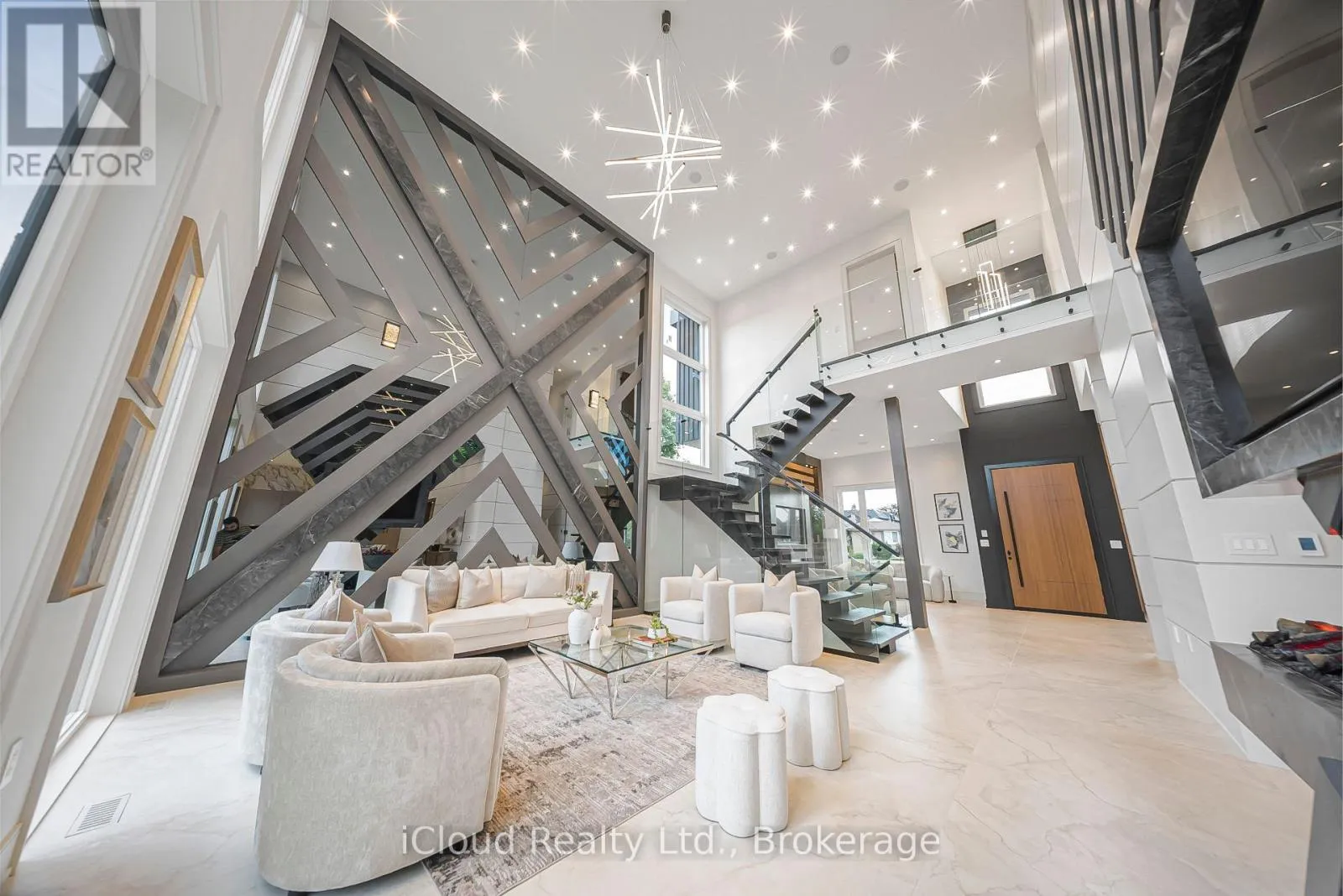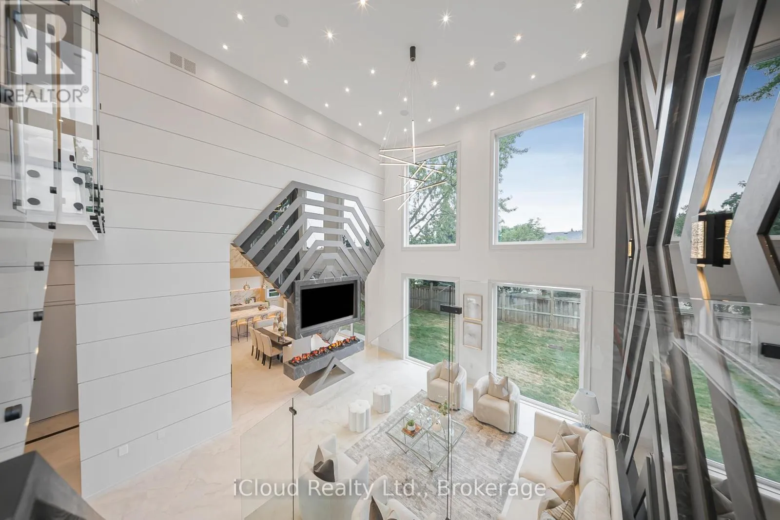Rebecca And Sherin This newly built modern custom home offers over 5000 sqft. of lavish living space. Whether you're commuting, enjoying the outdoors, or raising a family, this location on a quiet street of Oakville offers the perfect balance of convenience and lifestyle. This elite modern home is design and built by Zarina Construction. As you step through the oversized front door, you're welcomed by a dramatic 23-ft foyer with heated Italian tile flooring that flows through the main level. The main level features a private home office, an elegant living room with a stunning marble, wood, and mirror accent wall, and a breathtaking open-to-above family room. Anchored by a custom diamond-pattern feature wall and a double-sided Dimplex fireplace, large windows, this space is the heart of the home -open, bright, and welcoming.The gourmet kitchen is a chefs dream, offering a spacious island, custom cabinetry, and built-in Miele appliances. A separate spice kitchen keeps bold flavors contained and the main kitchen spotless. The layout flows seamlessly into a formal dining area with a walkout to the fully fenced backyard.Upstairs, you will find four generous bedrooms, each with its own ensuite bathroom featuring custom floating vanities, integrated sinks, heated tile flooring, and calming finishes. The primary suite is a luxurious retreat with a custom walk-in closet and a spa-like 5-piece ensuite with a freestanding tub, curbless shower, and dual vanities. A laundry room on this floor adds convenience.The finished basement offers 11.5-ft ceilings, a bright open rec area, a second kitchen, two bedrooms with a shared bath, and for the ultimate movie night experience, there's a dedicated theatre room fully equipped with 4 dedicated speakers for a true cinematic experience. This home also includes 16 built-in speakers throughout. With a basement walkout and large windows bringing in natural light. This home is a reflection of modern luxury tailored to your lifestyle. (id:27476)