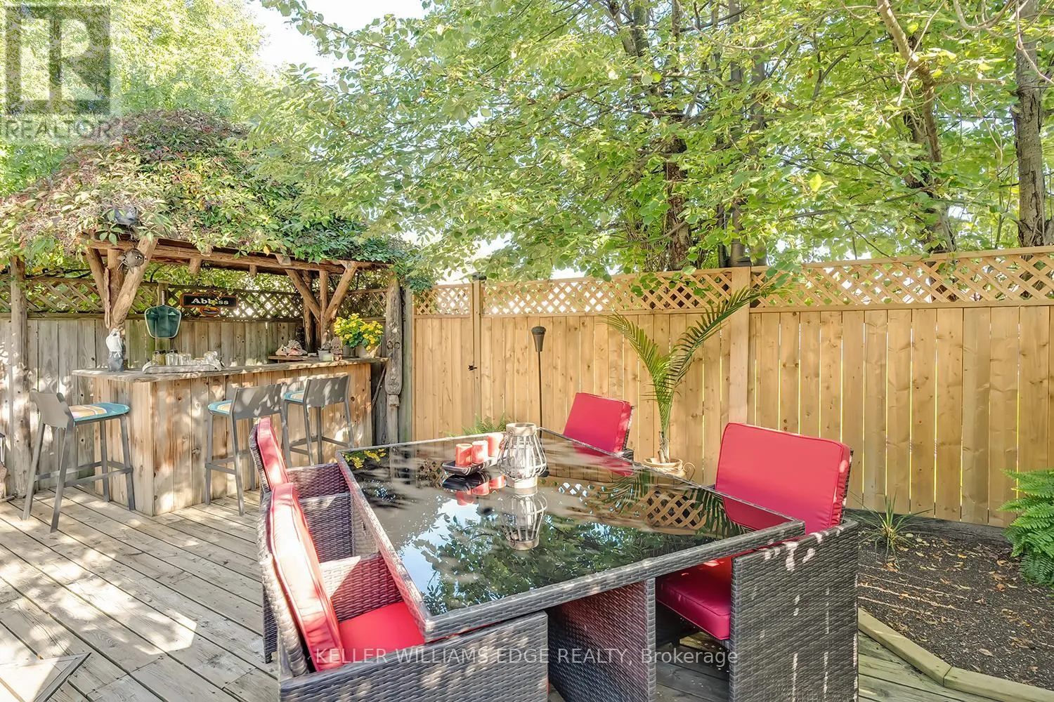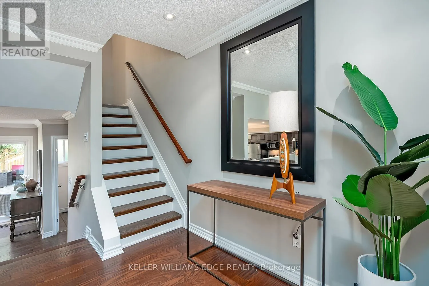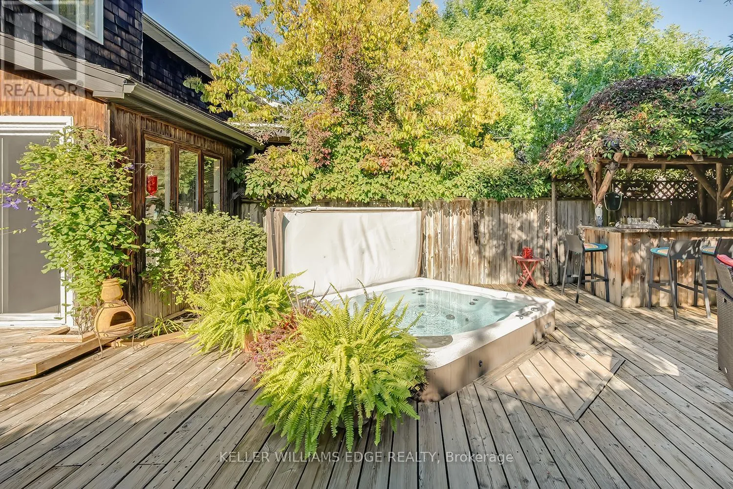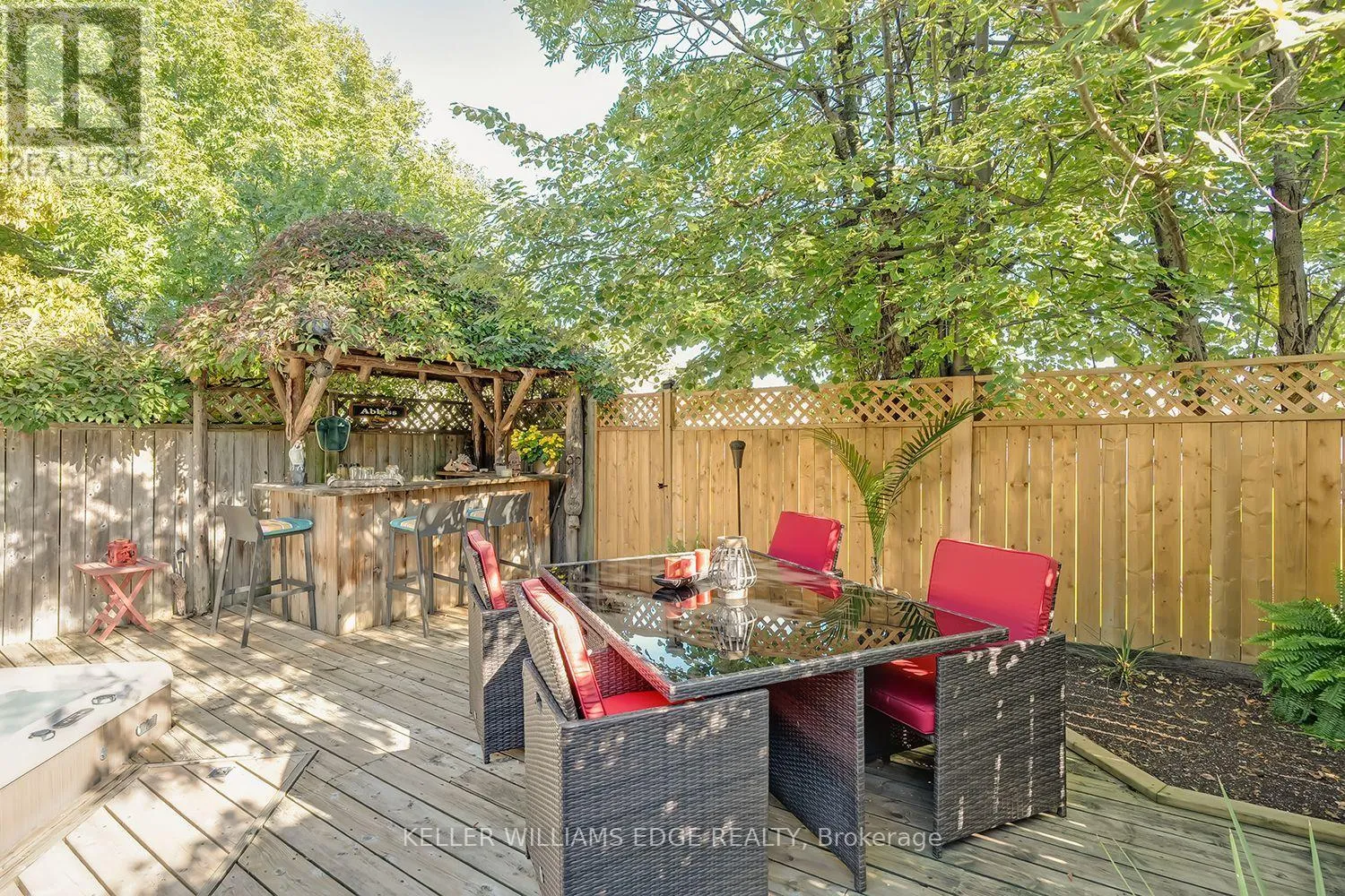 Cross Streets: Windsor Gate. ** Directions: Lakeshore Road West to Windsor Road to Windsor Gate. Welcome to this beautifully maintained 3-bedroom, 1.5-bath freehold townhome, perfectly situated within walking distance to Bronte Village and the Lake. Offering approximately 1,900 sq. ft. of above-grade living space, this home showcases pride of ownership throughout.The main level features elegant hardwood flooring, while the layout flows seamlessly into a bright and inviting living area. Enjoy a soundproof theatre room perfect for movie nights, and step outside to your private retreat featuring a hot tub and outdoor bar area ideal for entertaining or relaxing in style.Additional highlights include a beautifully updated kitchen and bathroom, 200 amp electrical service, forced air gas heating, and a low-maintenance exterior. This is your chance to experience turnkey living in one of Oakvilles most desirable lakeside communities, just steps from shops, restaurants, and the waterfront. (id:27476)
