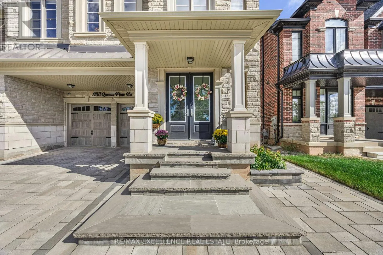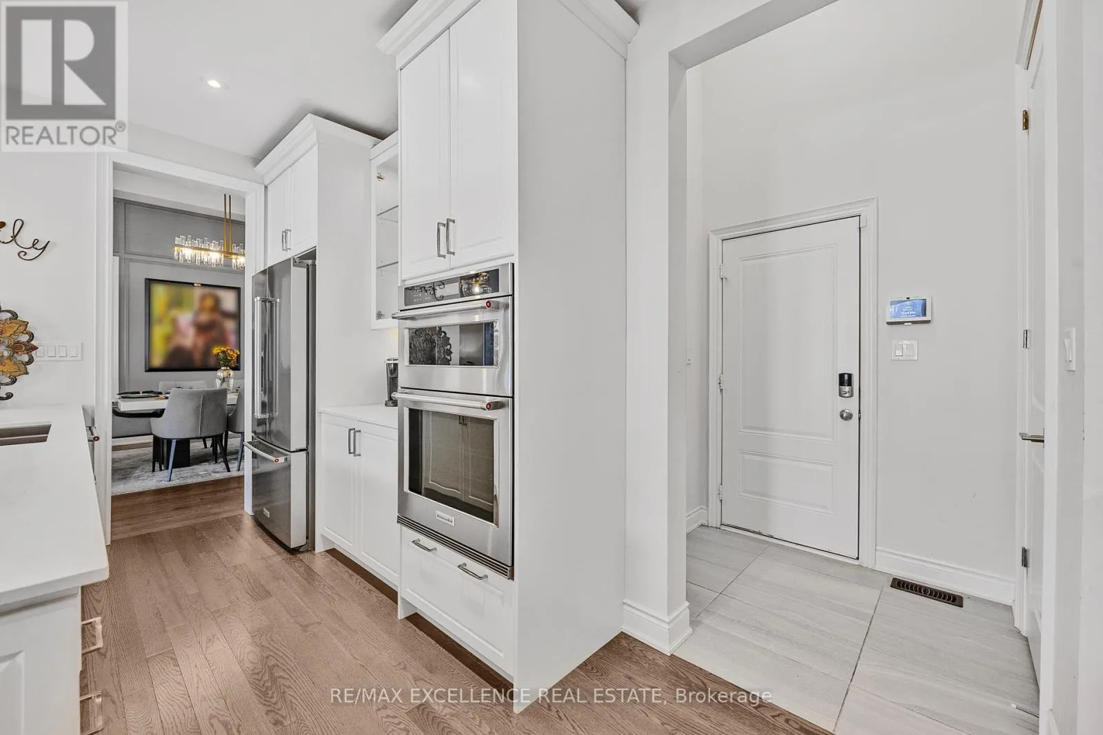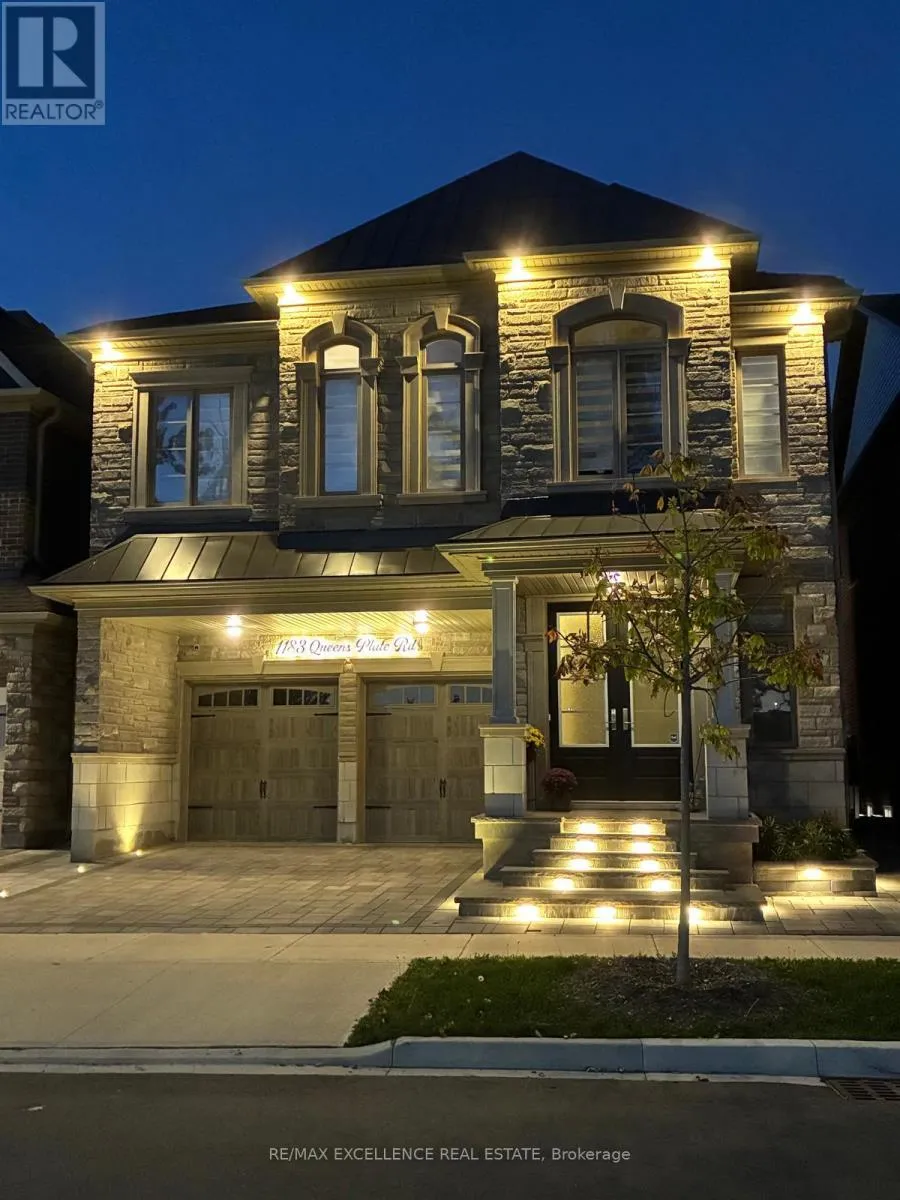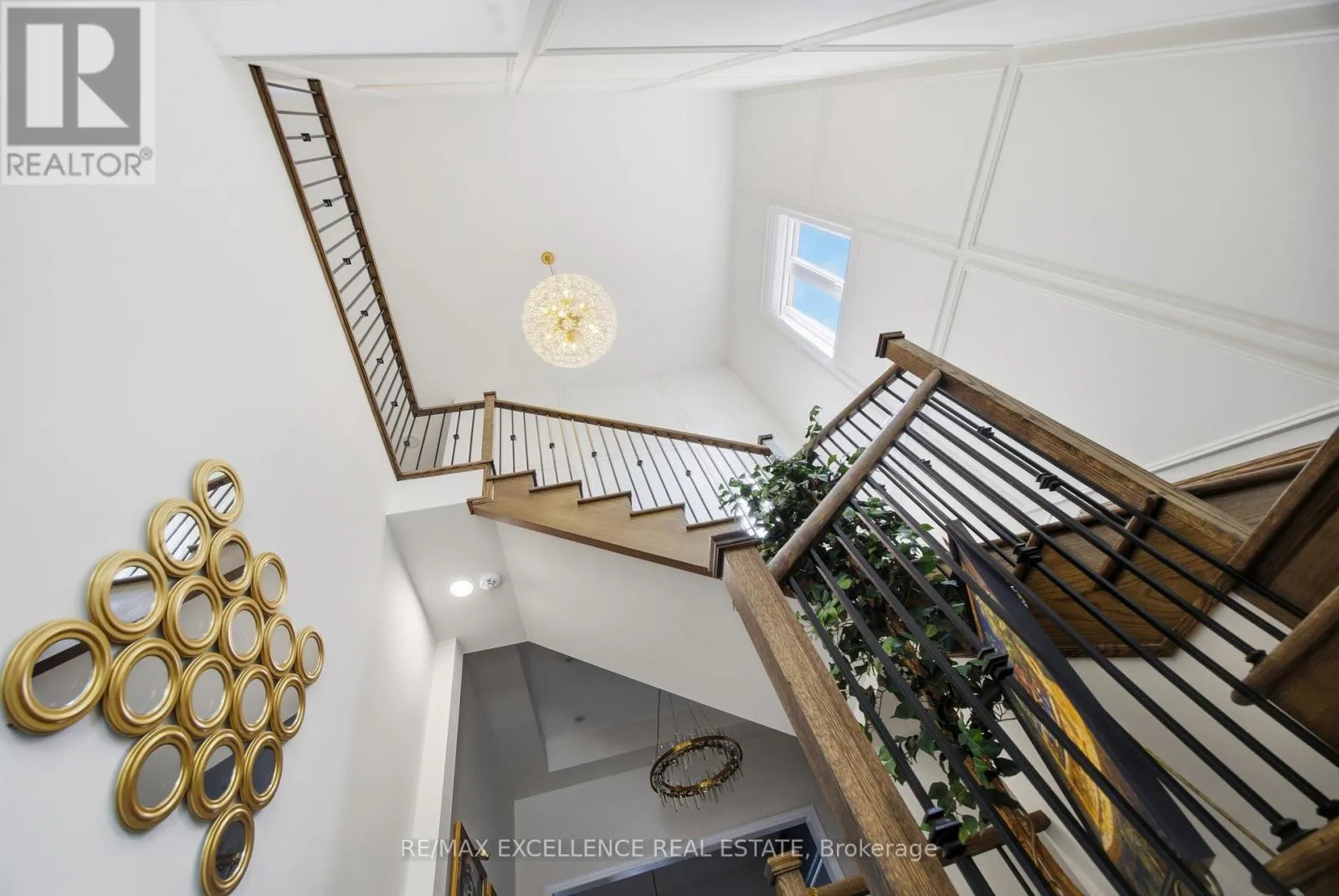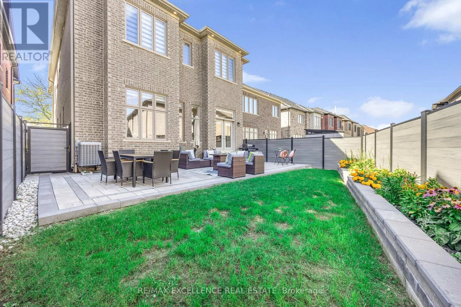 Bronte Rd & QEW This modern, light-filled home in Glen Abbey Encore sits on a quiet cul-de-sac on a 39 by 101-foot lot and welcomes you through double doors and natural stone entrance into a stunning carpet-free open layout. Soaring 12-foot ceilings on the main floor, 9-to-11-foot ceilings on the upper floor and 9-foot ceilings in the unfinished basement are complemented by elegant tray ceilings, accent walls, a centralized humidifier and over $100K in premium upgrades. The main floor features formal living and dining rooms perfect for entertaining. At the heart of the home is spacious family room with a modern fireplace overlooking beautifully landscaped backyard. The open-concept kitchen features built-in garbage bins, S/S appliances and custom full-height glass cabinets. Pot lights throughout the main floor add a warm, inviting ambiance. The mudroom, complete with a side entrance from garage and built-in closet adds everyday convenience. The garage features high ceilings, durable epoxy flooring and is equipped with EV charger. Upstairs, you'll find four generously sized bedrooms each thoughtfully designed to offer comfort and privacy. The primary suite, accessed through elegant double doors, serves as a luxurious retreat featuring a 5-piece ensuite, a separate marble-topped makeup counter and his-and-hers walk-in closets. Bedrooms 2 and 3 each include their own 4-piece ensuites and walk-in closets, Bedroom 4 offers a private 4-piece ensuite with a double closet. A bright private office bathed in natural light provides ideal environment for focus, work, or study. Completing the upper level is a conveniently located laundry area adding everyday ease to family living. The backyard is private oasis featuring a gas hookup for an outdoor kitchen - perfect for gatherings. A modern composite fence ensures privacy while both front and back yards are beautifully landscaped and enhanced with accent lighting and exterior pot lights creating a warm, inviting ambiance for evening relaxation. (id:27476)
