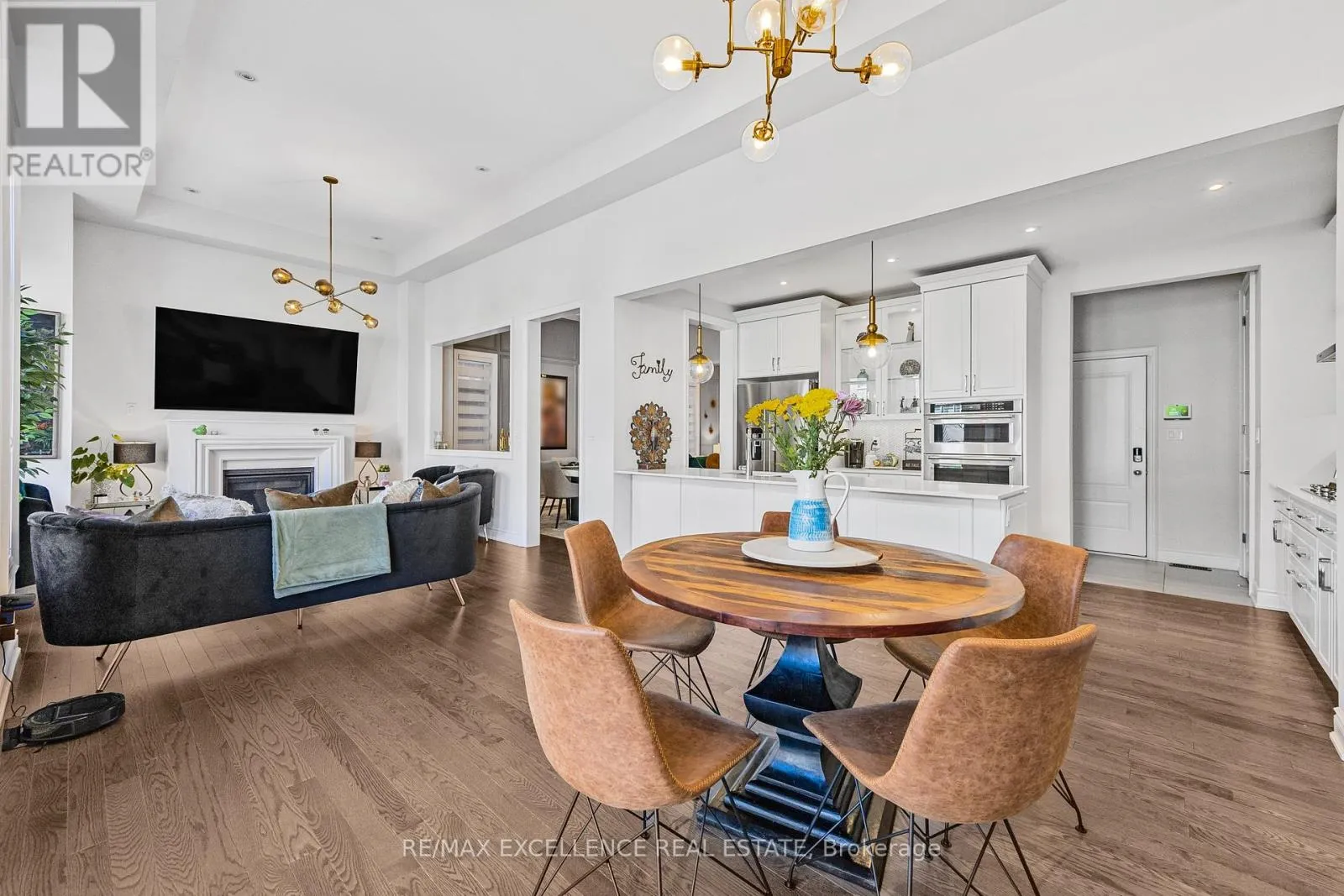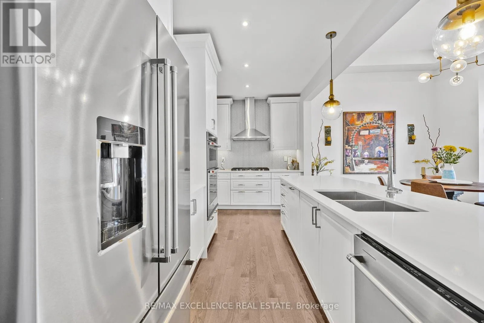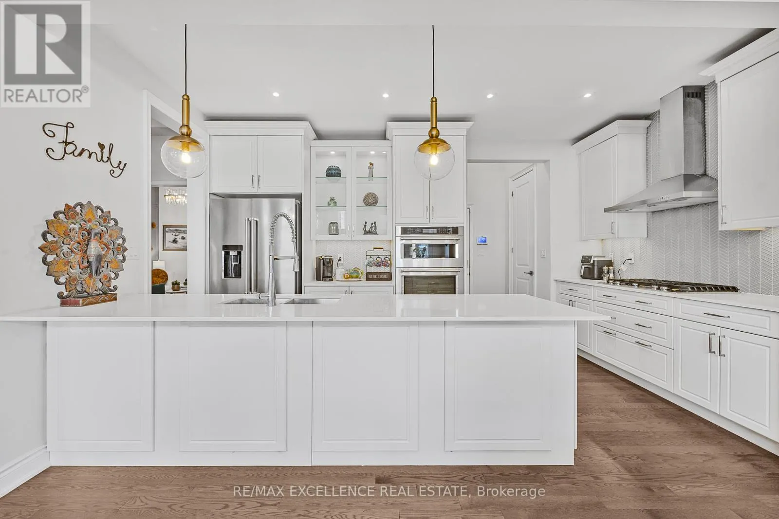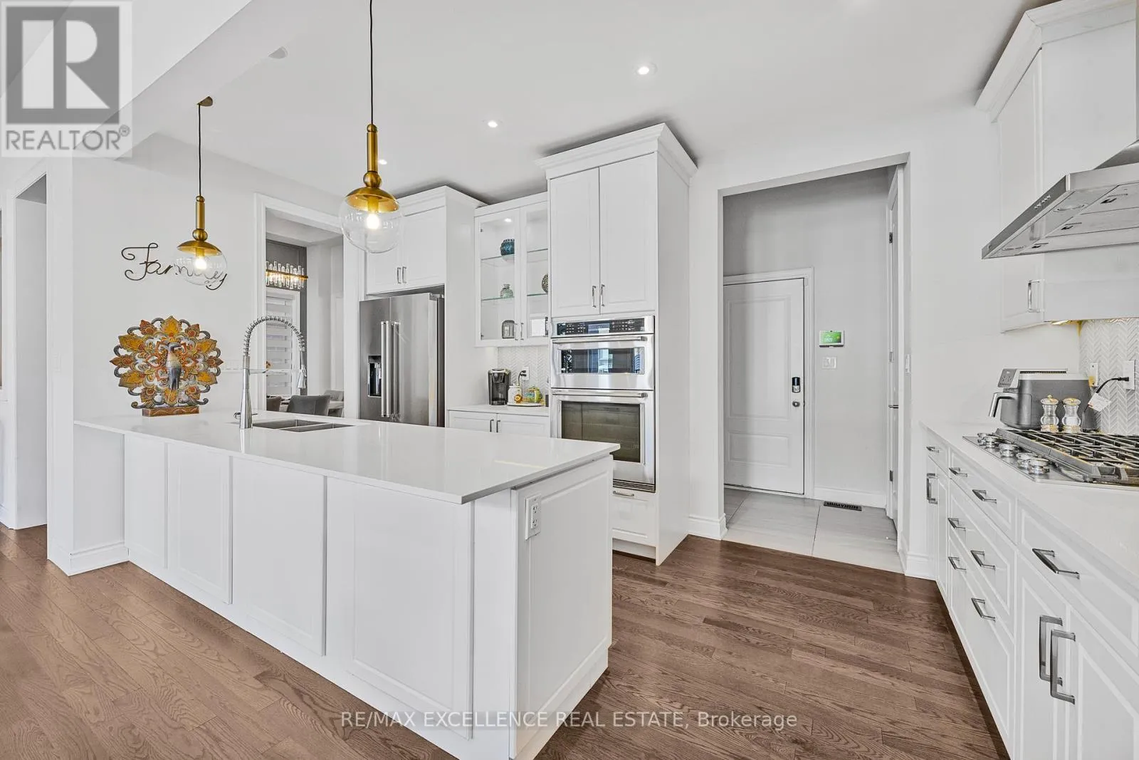 Bronte Rd & QEW This modern, light-filled home in Glen Abbey Encore sits on a quiet cul-de-sac on a 39 by 101-foot lot and welcomes you through double doors and natural stone entrance into a stunning carpet-free open layout. Soaring 12-foot ceilings on the main floor, 9-to-11-foot ceilings on the upper floor and 9-foot ceilings in the unfinished basement are complemented by elegant tray ceilings, accent walls, a centralized humidifier and over $100K in premium upgrades. The main floor features formal living and dining rooms perfect for entertaining. At the heart of the home is spacious family room with a modern fireplace overlooking beautifully landscaped backyard. The open-concept kitchen features built-in garbage bins, S/S appliances and custom full-height glass cabinets. Pot lights throughout the main floor add a warm, inviting ambiance. The mudroom, complete with a side entrance from garage and built-in closet adds everyday convenience. The garage features high ceilings, durable epoxy flooring and is equipped with EV charger. Upstairs, you'll find four generously sized bedrooms each thoughtfully designed to offer comfort and privacy. The primary suite, accessed through elegant double doors, serves as a luxurious retreat featuring a 5-piece ensuite, a separate marble-topped makeup counter and his-and-hers walk-in closets. Bedrooms 2 and 3 each include their own 4-piece ensuites and walk-in closets, Bedroom 4 offers a private 4-piece ensuite with a double closet. A bright private office bathed in natural light provides ideal environment for focus, work, or study. Completing the upper level is a conveniently located laundry area adding everyday ease to family living. The backyard is private oasis featuring a gas hookup for an outdoor kitchen - perfect for gatherings. A modern composite fence ensures privacy while both front and back yards are beautifully landscaped and enhanced with accent lighting and exterior pot lights creating a warm, inviting ambiance for evening relaxation. (id:27476)