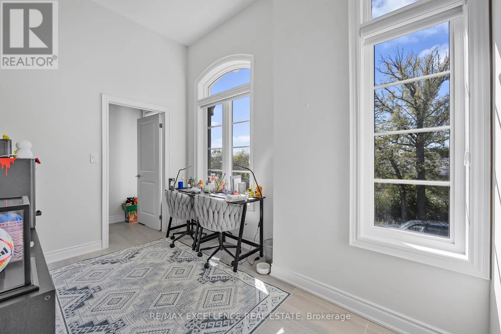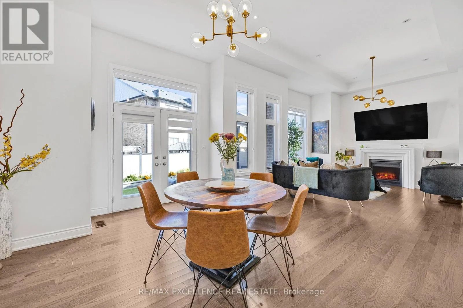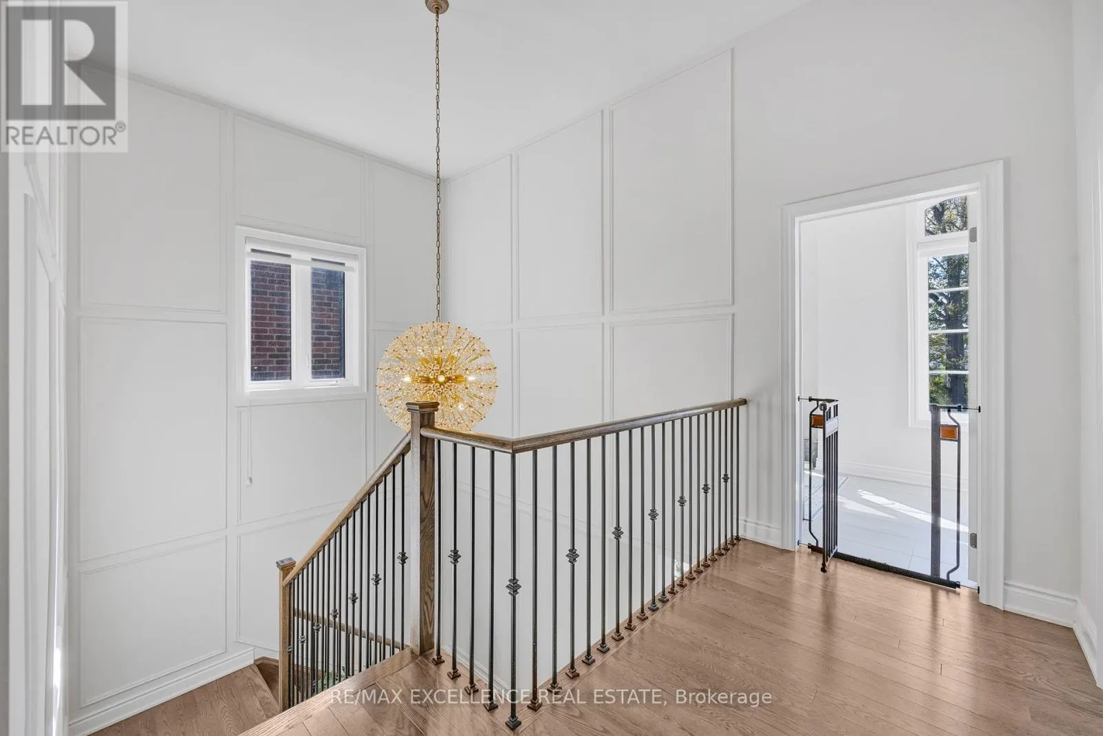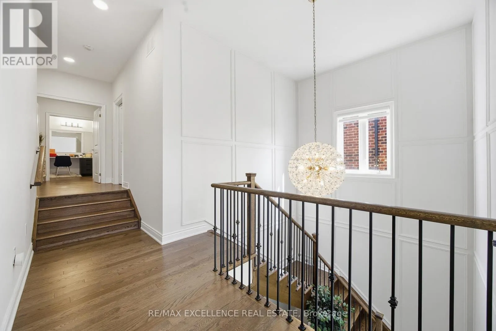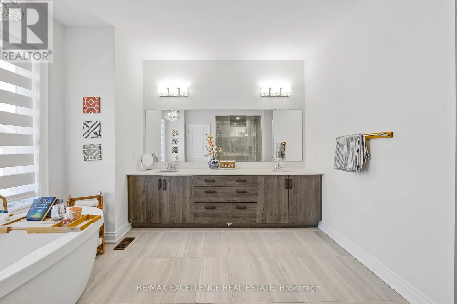 Bronte Rd & QEW This modern, light-filled home in Glen Abbey Encore sits on a quiet cul-de-sac on a 39 by 101-foot lot and welcomes you through double doors and natural stone entrance into a stunning carpet-free open layout. Soaring 12-foot ceilings on the main floor, 9-to-11-foot ceilings on the upper floor and 9-foot ceilings in the unfinished basement are complemented by elegant tray ceilings, accent walls, a centralized humidifier and over $100K in premium upgrades. The main floor features formal living and dining rooms perfect for entertaining. At the heart of the home is spacious family room with a modern fireplace overlooking beautifully landscaped backyard. The open-concept kitchen features built-in garbage bins, S/S appliances and custom full-height glass cabinets. Pot lights throughout the main floor add a warm, inviting ambiance. The mudroom, complete with a side entrance from garage and built-in closet adds everyday convenience. The garage features high ceilings, durable epoxy flooring and is equipped with EV charger. Upstairs, you'll find four generously sized bedrooms each thoughtfully designed to offer comfort and privacy. The primary suite, accessed through elegant double doors, serves as a luxurious retreat featuring a 5-piece ensuite, a separate marble-topped makeup counter and his-and-hers walk-in closets. Bedrooms 2 and 3 each include their own 4-piece ensuites and walk-in closets, Bedroom 4 offers a private 4-piece ensuite with a double closet. A bright private office bathed in natural light provides ideal environment for focus, work, or study. Completing the upper level is a conveniently located laundry area adding everyday ease to family living. The backyard is private oasis featuring a gas hookup for an outdoor kitchen - perfect for gatherings. A modern composite fence ensures privacy while both front and back yards are beautifully landscaped and enhanced with accent lighting and exterior pot lights creating a warm, inviting ambiance for evening relaxation. (id:27476)