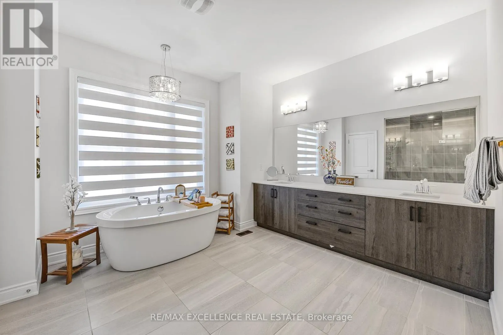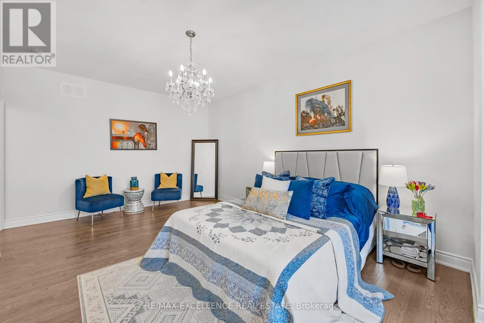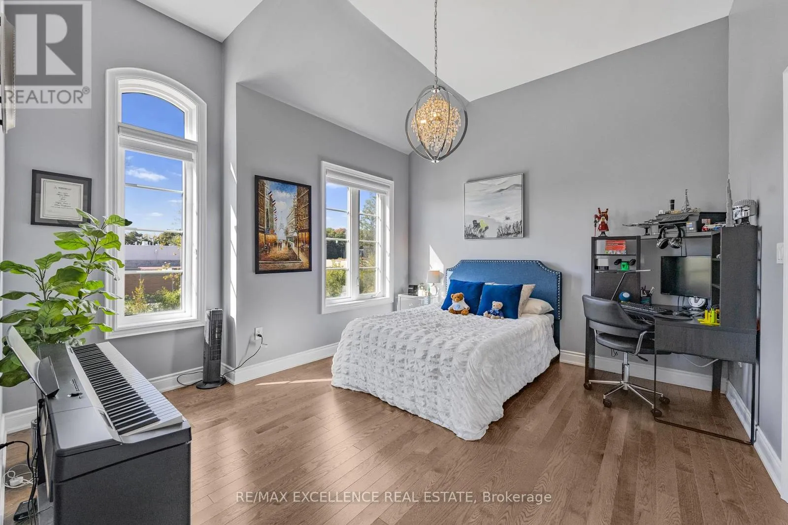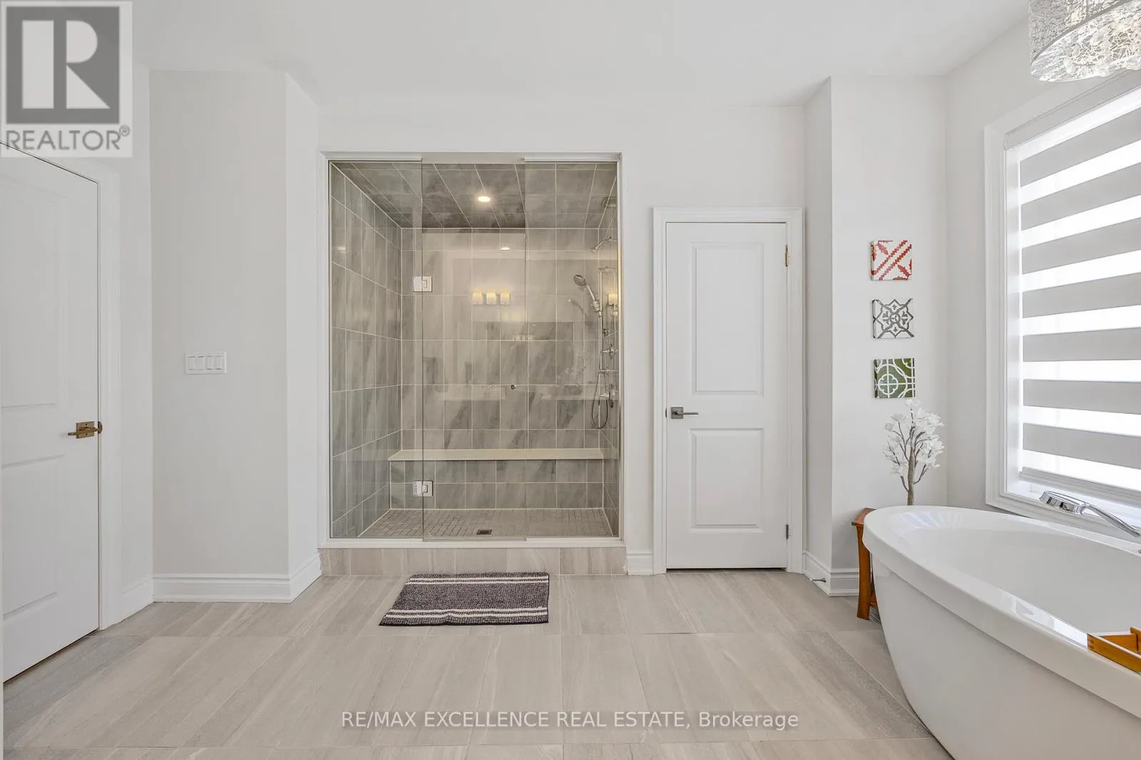Bronte Rd & QEW This modern, light-filled home in Glen Abbey Encore sits on a quiet cul-de-sac on a 39 by 101-foot lot and welcomes you through double doors and natural stone entrance into a stunning carpet-free open layout. Soaring 12-foot ceilings on the main floor, 9-to-11-foot ceilings on the upper floor and 9-foot ceilings in the unfinished basement are complemented by elegant tray ceilings, accent walls, a centralized humidifier and over $100K in premium upgrades. The main floor features formal living and dining rooms perfect for entertaining. At the heart of the home is spacious family room with a modern fireplace overlooking beautifully landscaped backyard. The open-concept kitchen features built-in garbage bins, S/S appliances and custom full-height glass cabinets. Pot lights throughout the main floor add a warm, inviting ambiance. The mudroom, complete with a side entrance from garage and built-in closet adds everyday convenience. The garage features high ceilings, durable epoxy flooring and is equipped with EV charger. Upstairs, you'll find four generously sized bedrooms each thoughtfully designed to offer comfort and privacy. The primary suite, accessed through elegant double doors, serves as a luxurious retreat featuring a 5-piece ensuite, a separate marble-topped makeup counter and his-and-hers walk-in closets. Bedrooms 2 and 3 each include their own 4-piece ensuites and walk-in closets, Bedroom 4 offers a private 4-piece ensuite with a double closet. A bright private office bathed in natural light provides ideal environment for focus, work, or study. Completing the upper level is a conveniently located laundry area adding everyday ease to family living. The backyard is private oasis featuring a gas hookup for an outdoor kitchen - perfect for gatherings. A modern composite fence ensures privacy while both front and back yards are beautifully landscaped and enhanced with accent lighting and exterior pot lights creating a warm, inviting ambiance for evening relaxation. (id:27476)